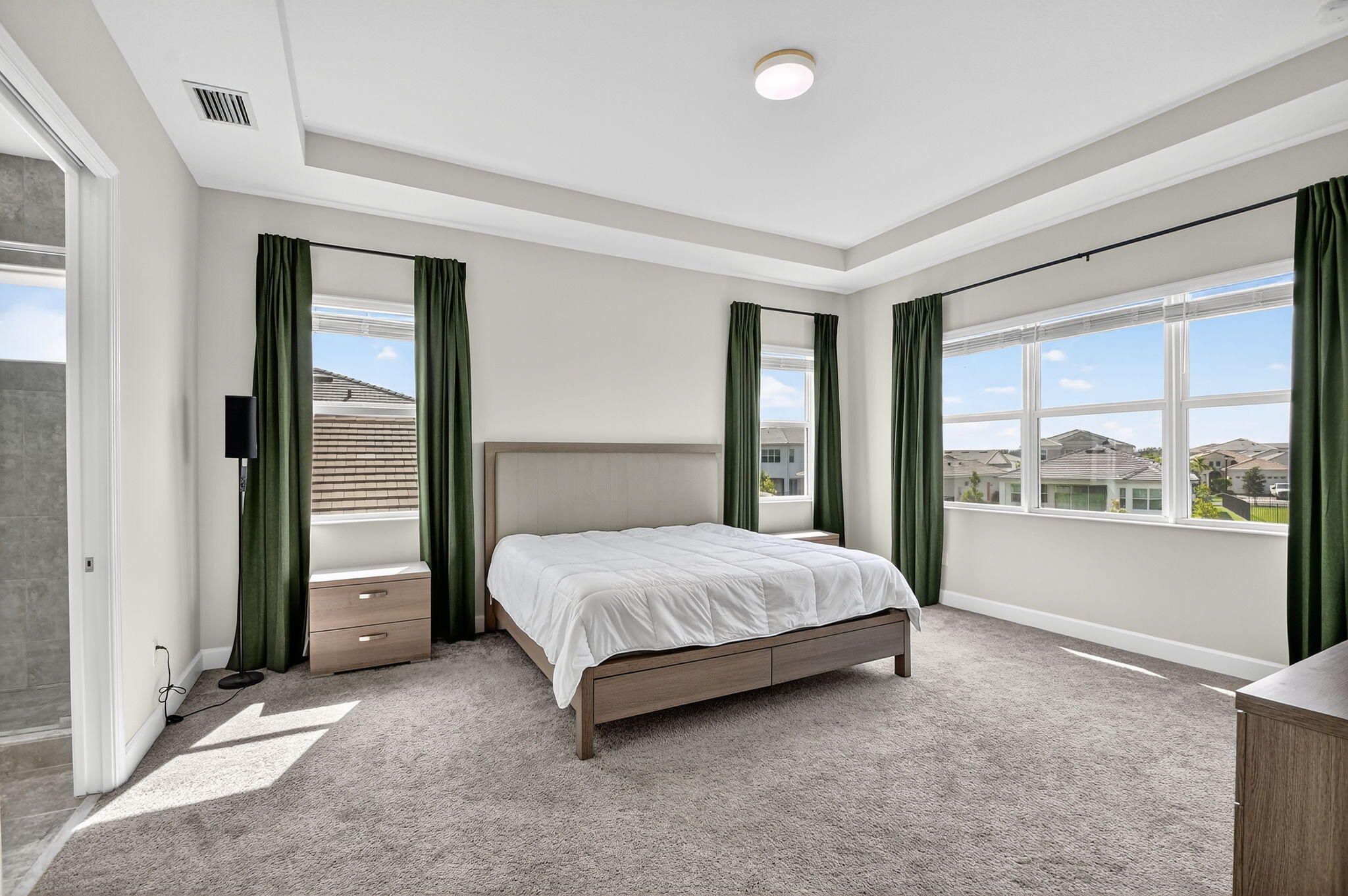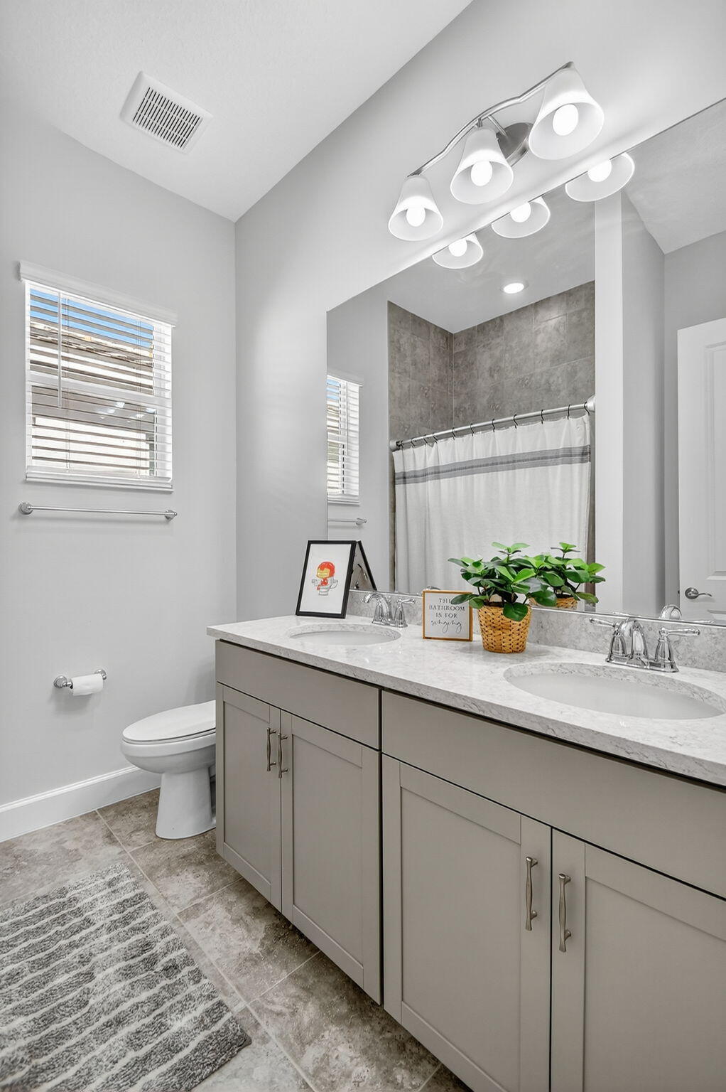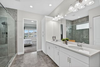 Welcome to the highly sought-after Poinciana Model in the desirable Orchards community of Westlake! This beautifully maintained home offers 2,982 sq. ft. living space, featuring 4 bedrooms, including 2 master suites, 3.5 bathrooms, a very convenient 3 car garage. With over $50,000 in upgrades, this home is sure to impress!Step through elegant double doors into a modern interior with upgraded tile flooring throughout the first floor. The spacious main living area includes a formal dining room, breakfast nook, family room and a formal living/flex room with sliding glass doors that lead seamlessly to the covered lanai, perfect for indoor-outdoor living.The gourmet kitchen boasts upgraded stainless steel appliances, quartz countertops a buffet area and an extended island with striking 3" quartz edge, ideal for cooking and entertaining. Upstairs, a laminate stairwell leads to spacious loft, perfect for a home office or game room, plus 4 generously sized bedrooms. The impressive owner's suite features dual sinks, a luxury shower, and his-and-hers walk-in closets. The second master suite is ideal for guests or multi-generational living. . You'll also find a convenient upstairs laundry room with ample cabinetry. Additional highlights include fully impact-resistant windows throughout, electric blinds on the main floor, full masonry foam insulation and energy-efficient gas water heater. Enjoy resort-style amenities offered by Westlake, including Adventure Park, a BMX pump track, picnic areas, playground, dog park, food truck court, and more! Don't miss your chance to own this meticulously cared-for home!