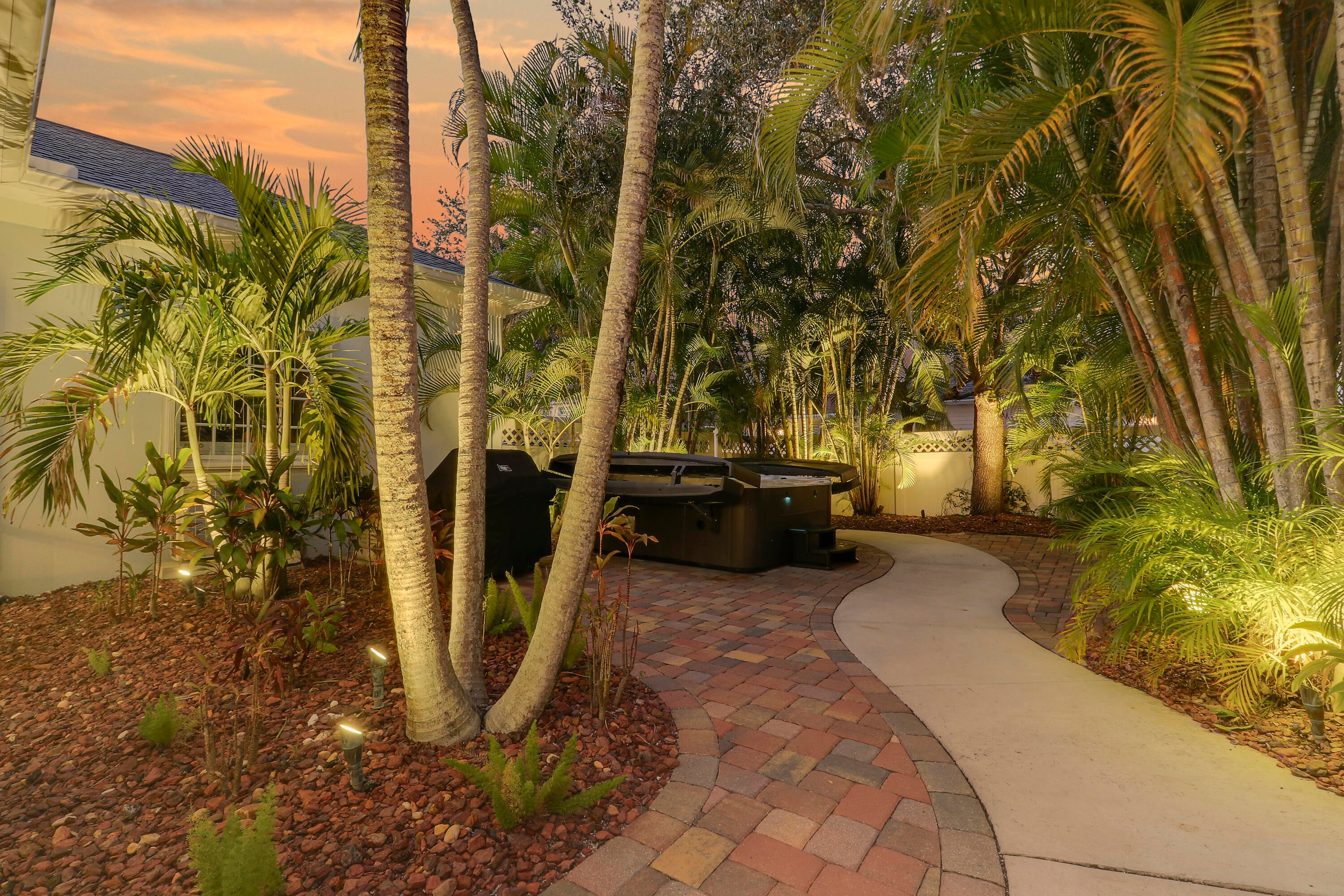 Come live the coastal lifestyle in charming NewHaven-one of Jupiter's most desirable communities. This meticulously maintained 3 bedroom, 2 bath home is beautifully updated, offering an inviting and stylish living space designed for comfort, functionality, and peace of mind. From the moment you arrive, you'll be welcomed by a beautifully manicured front yard, newly painted exterior, and newer roof and gutters --all enhancing the home's impressive curb appeal.Inside, elegance meets everyday convenience. The home features new interior paint and flooring throughout, plus all new lighting fixtures and fans.The renovated kitchen boasts sleek cabinetry, modern appliances, and a premium induction cooktop with a double oven (combined unit) perfect for cooking enthusiasts and entertainers alike. The new custom primary closet offers organization and style, while a custom entertainment center in the family room includes a high-end electric fireplace that works with or without heat, creating a cozy ambiance year-round. Step outside to your private screened porch or enjoy the new hot tub in your completely secluded, tropical backyard oasis. The included BBQ grill is plumbed directly to propane for easy outdoor cooking. The air-conditioned garage is finished and included in the square footage and features built-in storage closets, a full size refrigerator, and a custom workstation, making it ideal for a play room, home gym, or entertainment zone. This home is built for resilience with hurricane shutters throughout, including the patio, all with new locking mechanisms. A full-house generator, powered by a recently filled 500-gallon propane tank, can run the entire home for up to two weeks during power outages. HOA dues include the landscaping, parks, two community pools, heated and chilled, basic cable, high-speed internet, community reserves, and on-site management. Less than 10 minutes to beaches, I-95, shopping, dining, top-rated schools, and Jupiter Medical Center. This isn't just a move-in-ready home- it's a fully upgraded, thoughtfully designed lifestyle in one of Jupiter's finest communities.