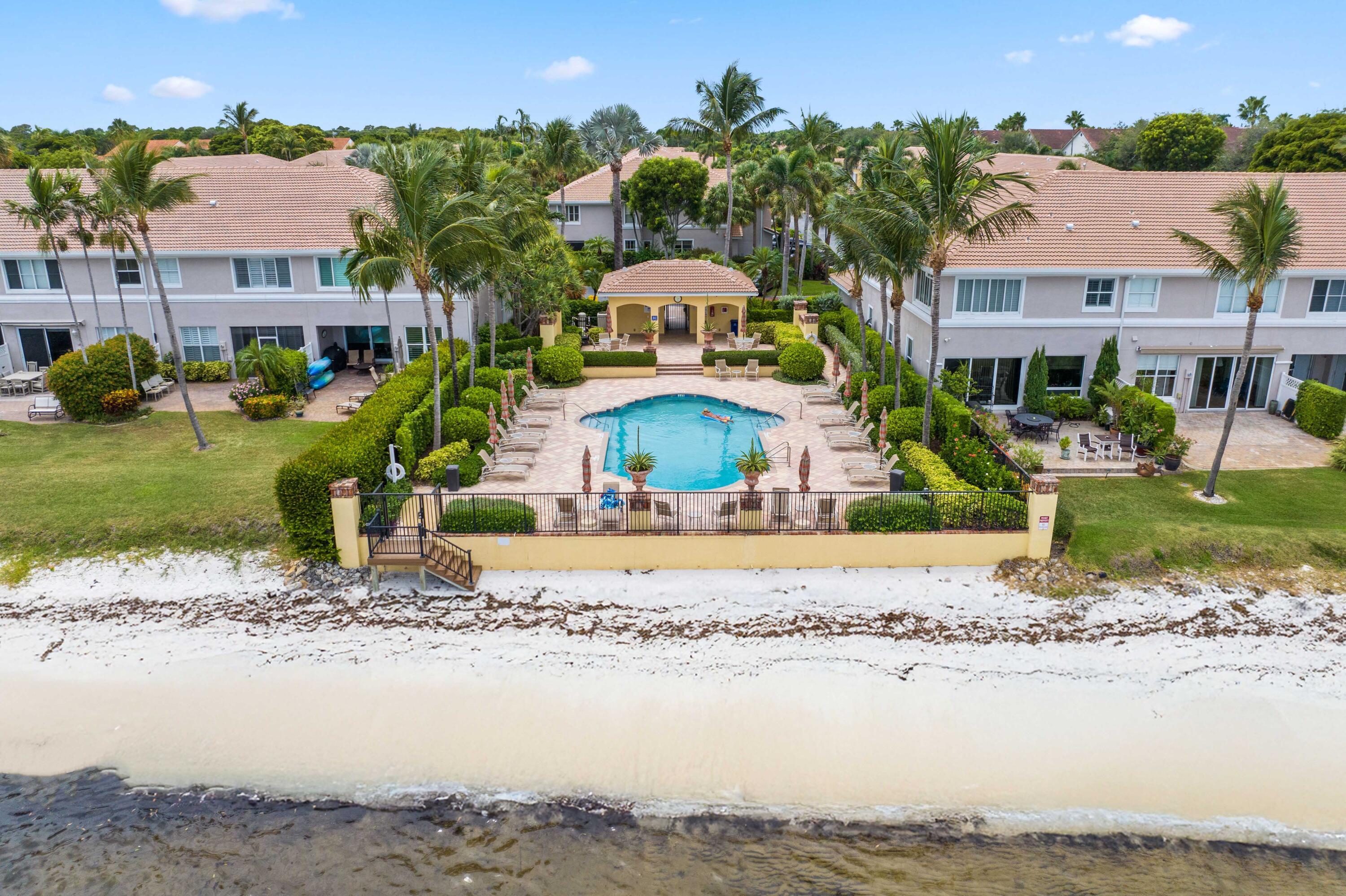 Welcome home to this RARELY AVAILABLE private beachfront townhome perched directly on the sandy shores of the Intracoastal--perfect for enjoying South Florida's indoor/outdoor lifestyle. This beautifully remodeled two story townhouse boasts three bedrooms plus large den, two and one half baths, and an oversized two car garage. As soon as you walk in the light-filled home, you are struck by the stunning Intracoastal views. The first floor's open layout includes high ceilings, a large den, powder room, dining room, open eat-in kitchen, and spacious living room. The living room and kitchen sliders open onto your backyard oasis including a covered patio with a hurricane proof, electronically retracting screen, a spacious open terrace, ample green space, and your own private Intracoastalbeach. Enjoy your coffee while watching the sunrise over the water or wind down with a cocktail at the end of the day while taking in the spectacular wide water views. The gorgeous, open, eat-in kitchen boasts granite countertops, custom wood cabinetry and pantry, and stainless steel appliances including newer refrigerator and dishwasher. Whole house upgrades include a NEW ROOF, impact glass throughout, a new AC, and wood flooring on the stairs. The expansive primary suite boasts Intracoastal views, vaulted ceilings, a large sitting area, and massive walk-in closet. The primary bath has been beautifully remodeled and includes dual vanities and glass shower with chic tiling. The oversized secondary bedrooms are located away from the master to provide more privacy and boast high ceilings and large closets. The laundry room is conveniently located upstairs and includes a sink. Las Brisas is a highly-coveted, pet friendly, gated Intracoastal community just minutes to Palm Beach, Downtown Delray, Boca, and the beach. Enjoy the waterfront lifestyle from the heated saltwater pool or private beach just feet from your home. Watch the boats go by or join the action with your kayak or SUP--this is Florida living at its best! Make sure to check out the video tour of the home in the listing!