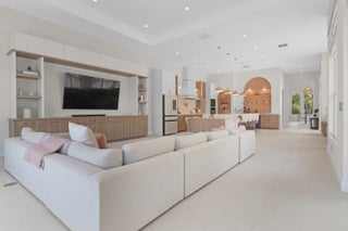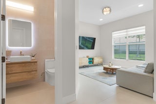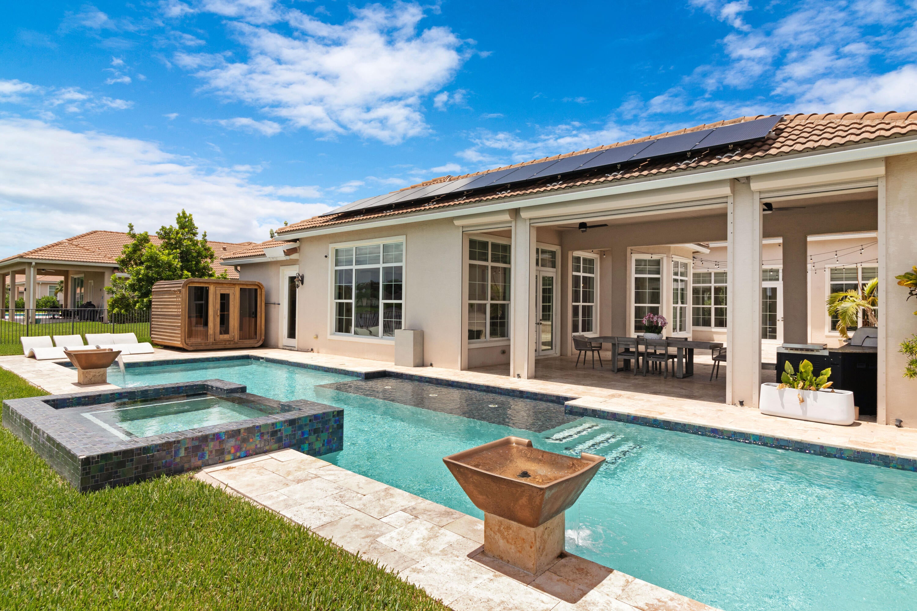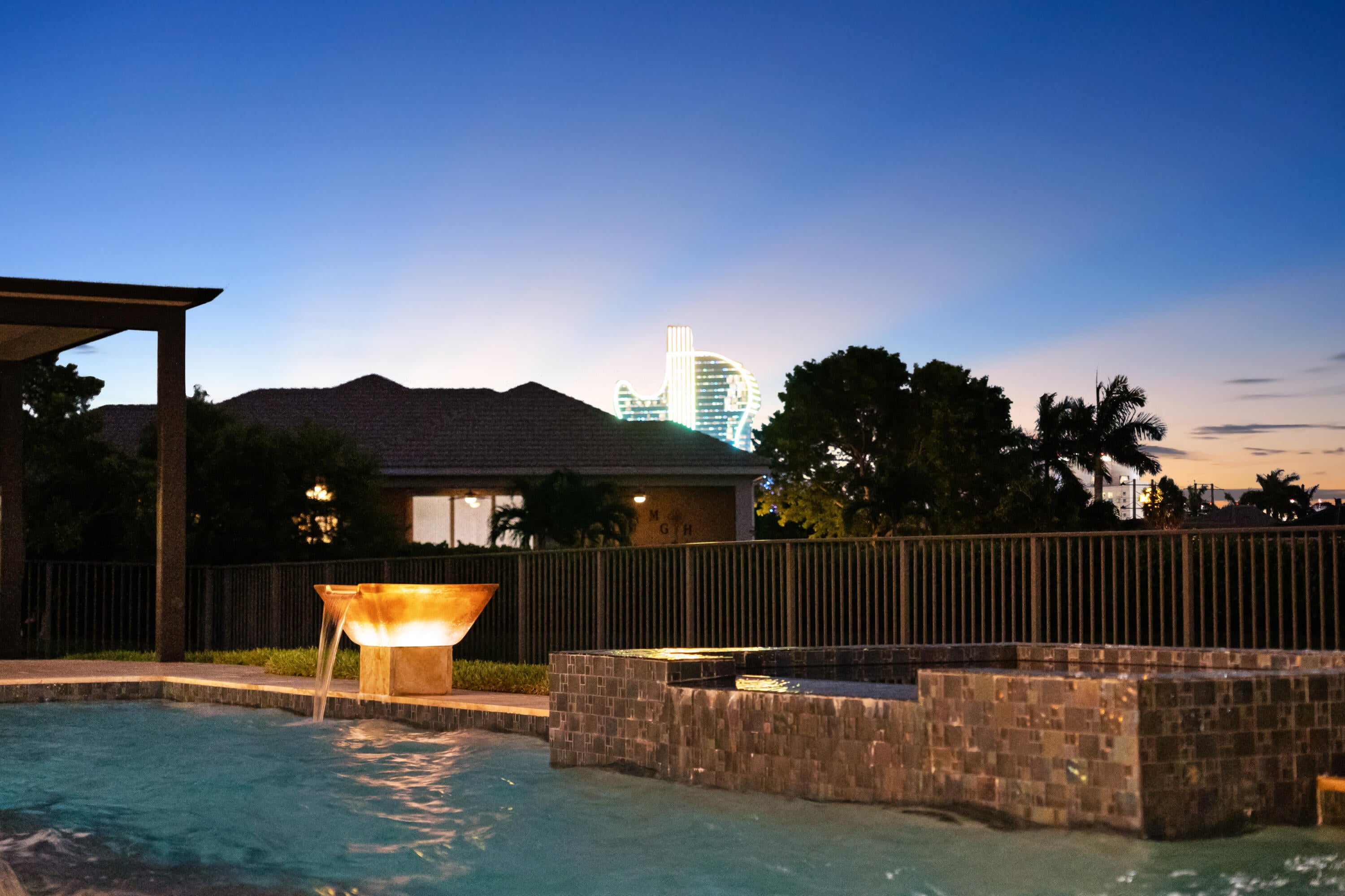 Discover an extraordinary residence in the highly sought-after Sterling Ranch community, offering effortless access to the Florida Turnpike. Spanning just under 5,000 sq. ft. of exquisitely remodeled living space, this 4-bedroom, 4.5-bathroom masterpiece blends timeless elegance with modern sophistication.The home boasts an expansive primary bedroom wing, soaring volume ceilings that flood the interiors with natural light, a formal dining and sitting room, dedicated office space, and a large laundry room, all enhanced by grand proportions and refined finishes. The open-concept living area is anchored by a gourmet chef's kitchen featuring a waterfall-edge porcelain island with generous seating, custom two-toned cabinetry, pot filler, induction stove, Cafe brand oven/microwave...wine fridge, and a custom arched walk-in pantry. A built-in breakfast nook creates a warm and inviting space for everyday living. The main living spaces feature stunning porcelain tile, while the bedrooms are finished in luxury vinyl." Outdoors, a lushly landscaped circular driveway leads to the three-car garage, while the private backyard offers the ultimate in relaxation and entertainment. An open courtyard and covered summer kitchen with automatic hurricane shutters flow seamlessly into the pergola lounge. Enjoy the heated, salt-chlorinated pool powered by a Pentair Smart System, unwind in the steam sauna, and take in sweeping views of the iconic Hard Rock Guitar Hotel. The home's flooring and countertops are finished in premium porcelain, creating a sleek, contemporary feel throughout. Additional highlights include owned Enphase solar panels, keeping the average electricity bill under $100 per month, and a comprehensive smart home system controlling appliances, the pool, security cameras, and main door locks. High-end, negotiable furnishings from Arhaus, Crate & Barrel, Williams Sonoma, and Restoration Hardware complement the home's sophisticated style. Enjoy the convenience of charging your electric vehicle at home with the Tesla-compatible electric hookup. This is more than a homeit's a luxury lifestyle destination, offering resort-inspired amenities, forward-thinking technology, and exceptional craftsmanship in one of the most desirable locations in South Florida.