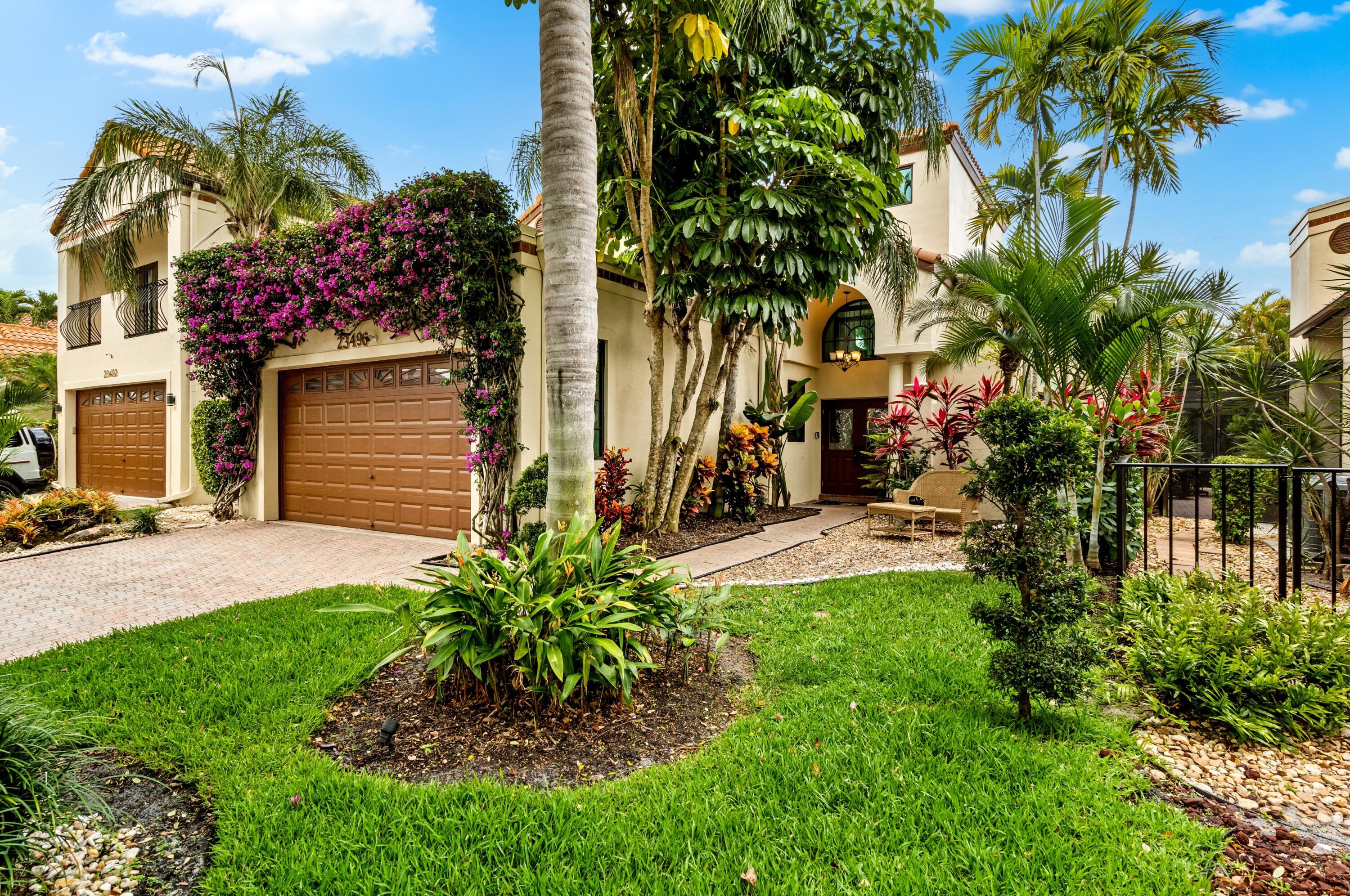 Beautifully landscaped with mature palms and tropical plants, this recently updated residence, in prestigious Boca Pointe's Valencia enclave, is elegantly appointed with high-volume ceilings, Venetian plaster finishes, unique windows, whole-house impact-glass, oversized porcelain tile, and a stunning spiral staircase. The enclosed loggia overlooks the large pool in the walled back yard.LOCATION:An established master-planned gated community near Boca Raton with 4,000 residences, Boca Pointe is situated on 1,000 lushly landscaped, manicured acres centered on a private 18-hole championship golf course and numerous lakes. Valencia, one of Boca Pointe's 29 enclaves, is nestled on the shores of Tamarind Lake. While club membership is not mandatory for the community's residents,members of the 'Club at Boca Pointe' enjoy social and fitness clubhouses, restaurants, a heated pool, and tennis and pickleball courts. PROPERTY: Beautifully landscaped with mature palms and tropical plants, a lovely garden introduces this chic residence, while in the walled back yard, the enclosed loggia opens to the heated pool set within an expansive patio. RESIDENCE: A magazine-worthy showplace, this lavish three-bedroom residence, with 2,750 +/- total square feet in prestigious Valencia, Boca Pointe, is move-in ready and sure to please the most astute buyer. Stunningly renovated, details include volume ceilings, premier oversized slate tile flooring, fine Venetian-plaster finishes, and impact-glass throughout. With soft sunlight filtering in through abundant windows shaded by electric blinds, the living and dining areas invite elegant entertaining and easy family living. The adjacent gourmet kitchen is fitted with high-end Subzero appliances and glossy contemporary cabinetry. With a split-bedroom plan, the first-floor primary bedroom suite, a private retreat, includes a large, updated bathroom overlooking a private garden, finished with double vanities, a soaking tub and a Toto toilet. A spiral staircase ascends to two guest-bedrooms and a spacious Jack and Jill spa-like bathroom. Upstairs could also serve as a private retreat. Completing the layout are a two-car garage, powder room, solarium. An added plus, Valencia's low HOA covers, 24-hour guard gated security, landscaping, cable, exterior painting clubhouse and trash collection. DISCLAIMER: Information published or otherwise provided by the listing company and its representatives including but not limited to prices, measurements, square footages, lot sizes, calculations, statistics, and videos are deemed reliable but are not guaranteed and are subject to errors, omissions or changes without notice. All such information should be independently verified by any prospective purchaser or seller. Parties should perform their own due diligence to verify such information prior to a sale or listing. Listing company expressly disclaims any warranty or representation regarding such information. Prices published are either list price, sold price, and/or last asking price. The listing company participates in the Multiple Listing Service and IDX. The properties published as listed and sold are not necessarily exclusive to listing company and may be listed or have sold with other members of the Multiple Listing Service. Transactions where listing company represented both buyers and sellers are calculated as two sales. "No payments made until title passes" Some affiliations may not be applicable to certain geographic areas. If your property is currently listed with another broker, please disregard any solicitation for services. Information published or otherwise provided by seller, listing company or its representatives is deemed reliable but are not guaranteed and subject to errors, omissions, or changes without notice. Copyright 2025 by the listing company. All Rights Reserved.