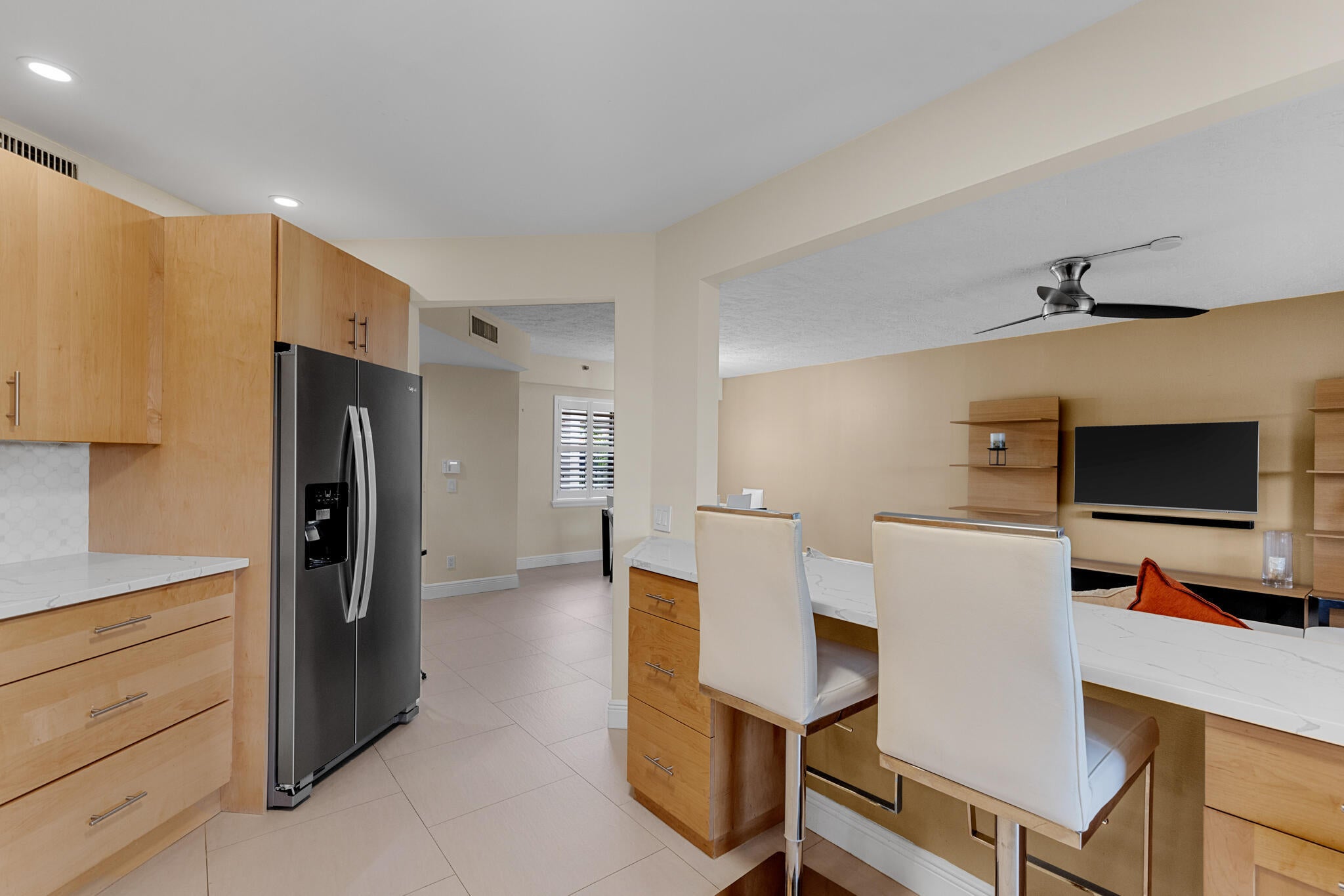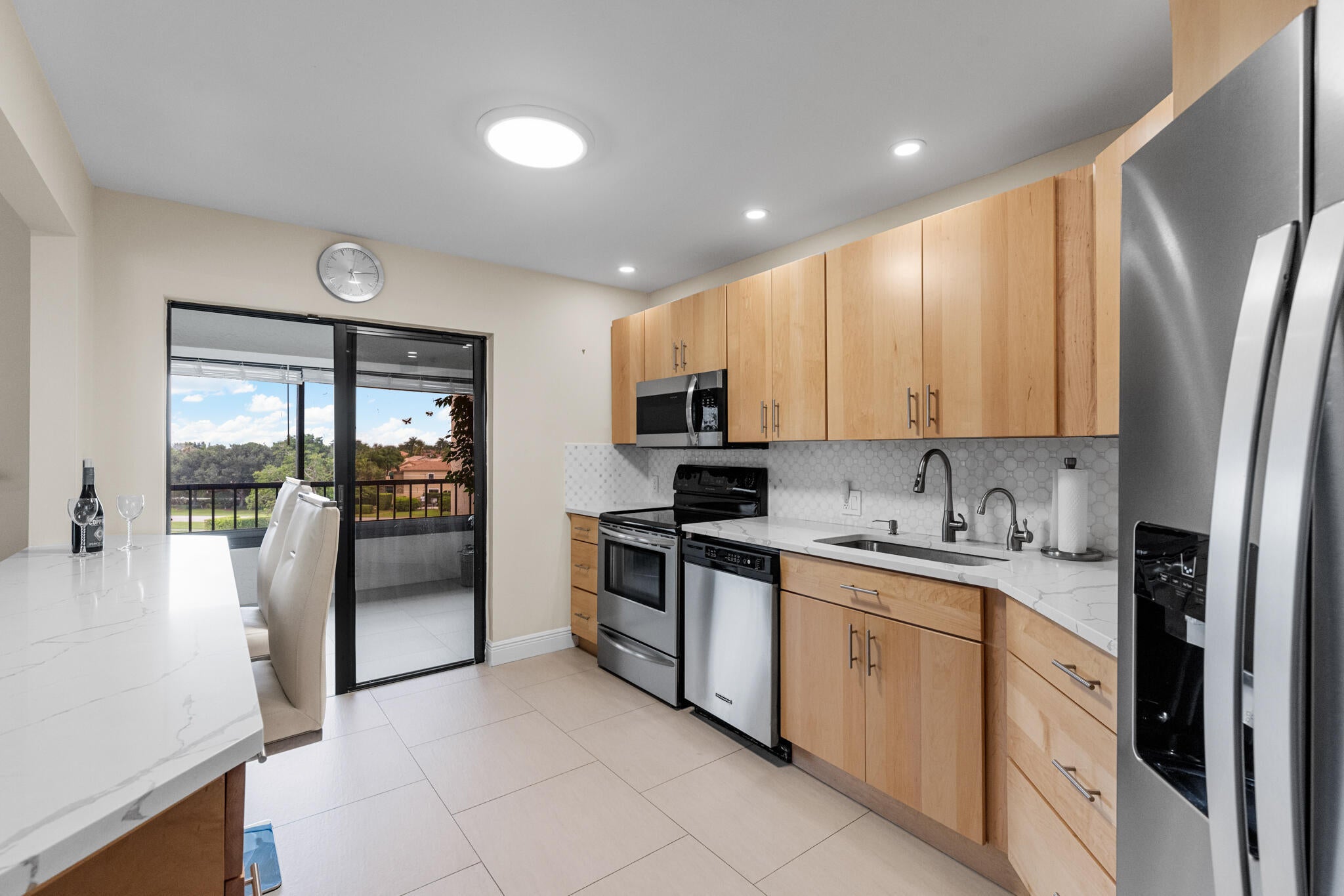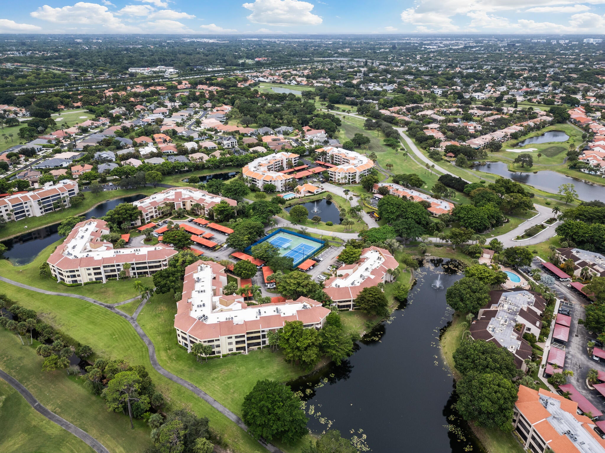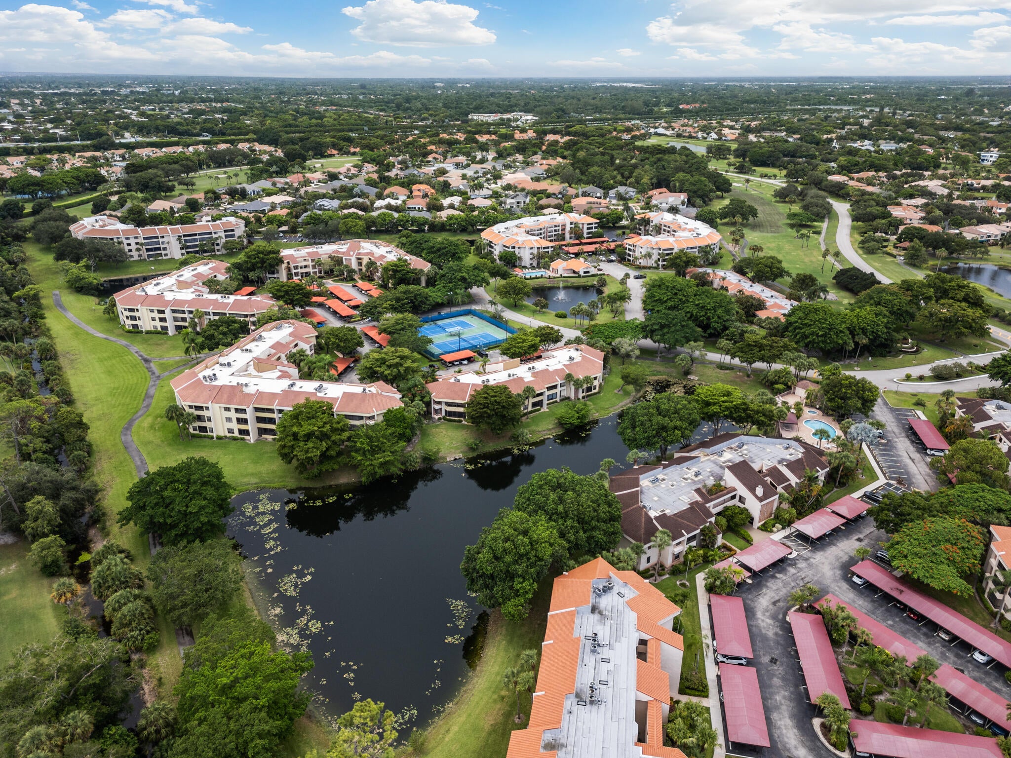 Beautifully updated and impeccably maintained, this clean and modern 2 bedroom 2 bath condo with large enclosed patio has breathtaking golf course views. The stunning kitchen features maple cabinetry, quartz countertops, a pearl-tiled backsplash and stainless steel appliances. Enjoy dining at the breakfast bar with seating for two. The spacious master suite boasts two fully outfitted walk-in closets and a luxurious bath with a jacuzzi tub and separate shower. Every closet in the home has been customized for maximum storage, and a washer/dryer is included for your convenience.Located in the prestigious, gated Boca Pointe community--within an excellent school district and just minutes from shopping, dining, and major highways--this home perfectly combines style, comfort,and convenience. Membership at The Club at Boca Pointe is optional and there are many membership options available.