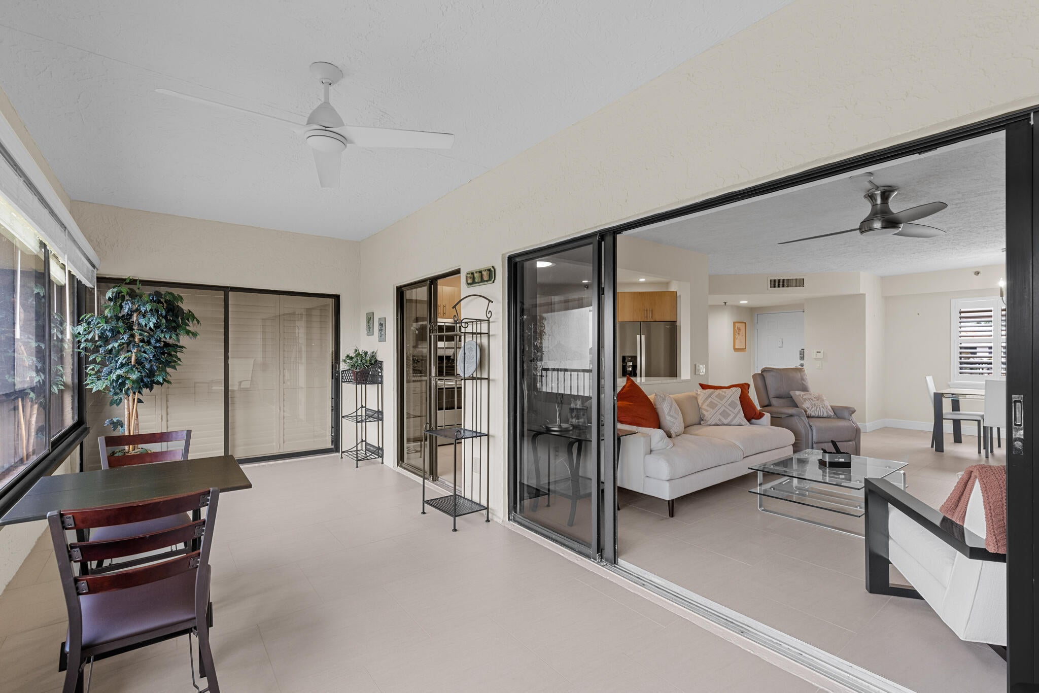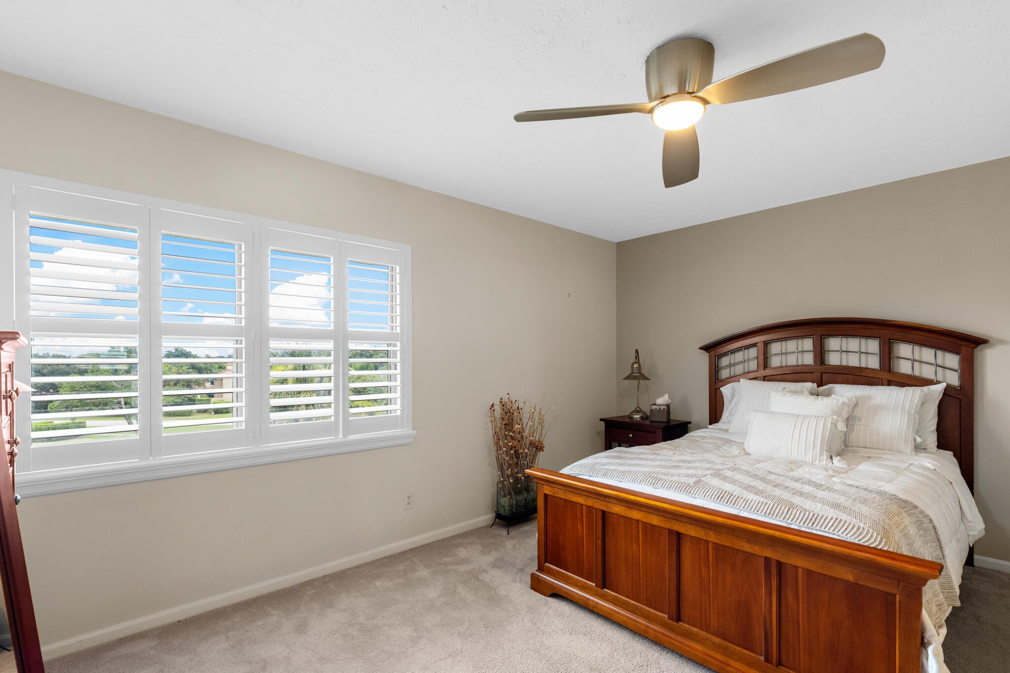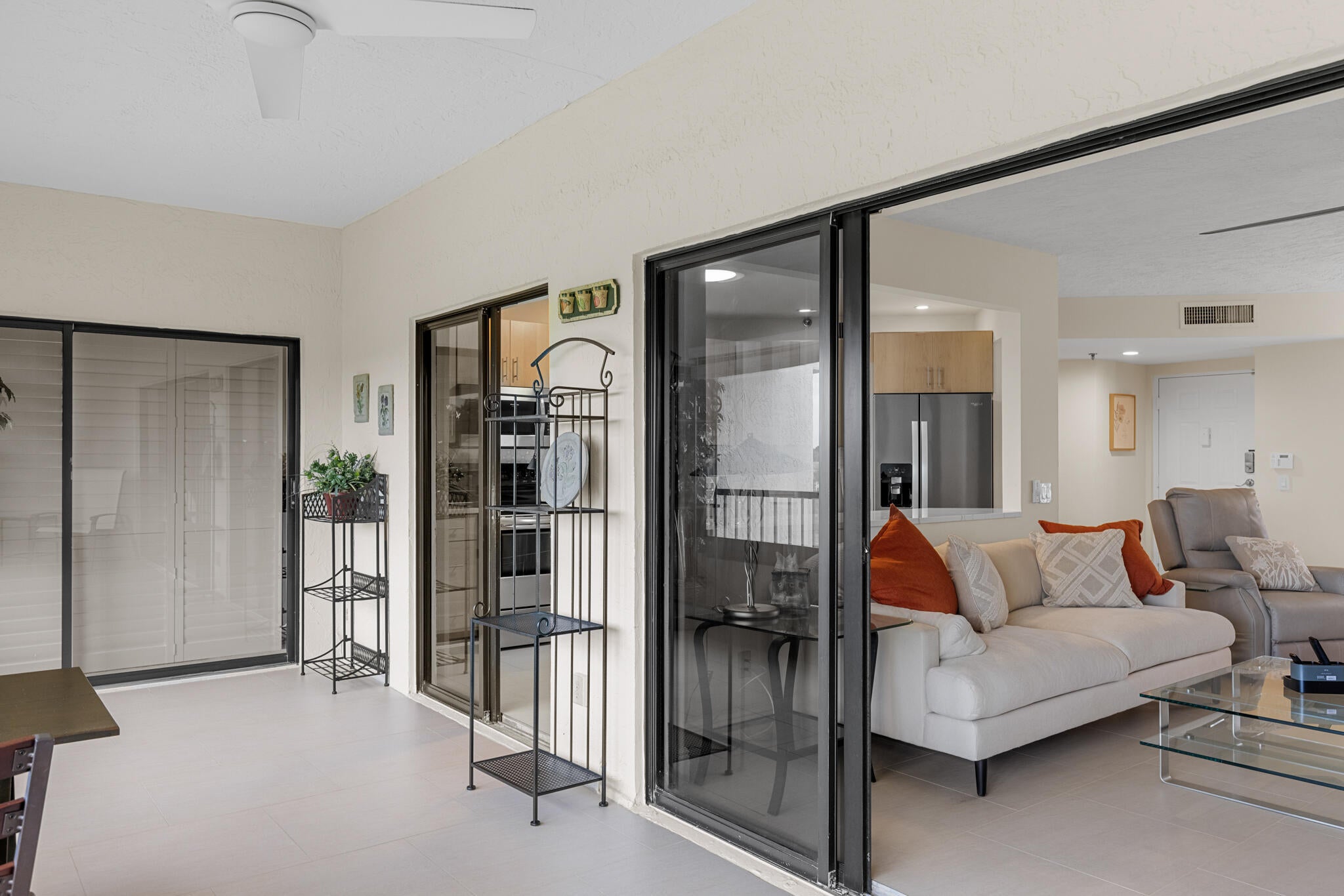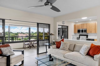 Beautifully updated and impeccably maintained, this clean and modern 2 bedroom 2 bath condo with large enclosed patio has breathtaking golf course views. The stunning kitchen features maple cabinetry, quartz countertops, a pearl-tiled backsplash and stainless steel appliances. Enjoy dining at the breakfast bar with seating for two. The spacious master suite boasts two fully outfitted walk-in closets and a luxurious bath with a jacuzzi tub and separate shower. Every closet in the home has been customized for maximum storage, and a washer/dryer is included for your convenience.Located in the prestigious, gated Boca Pointe community--within an excellent school district and just minutes from shopping, dining, and major highways--this home perfectly combines style, comfort,and convenience. Membership at The Club at Boca Pointe is optional and there are many membership options available.