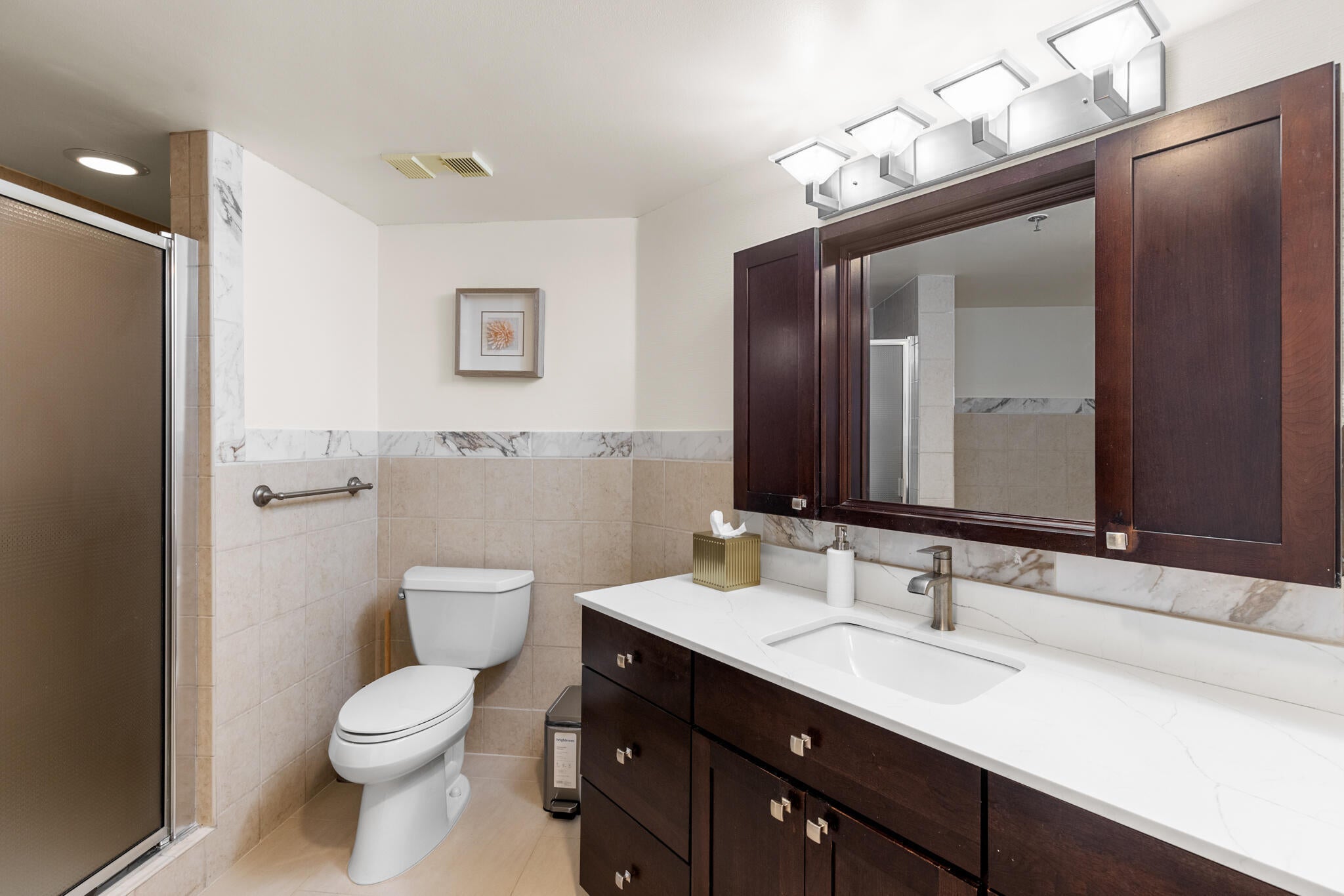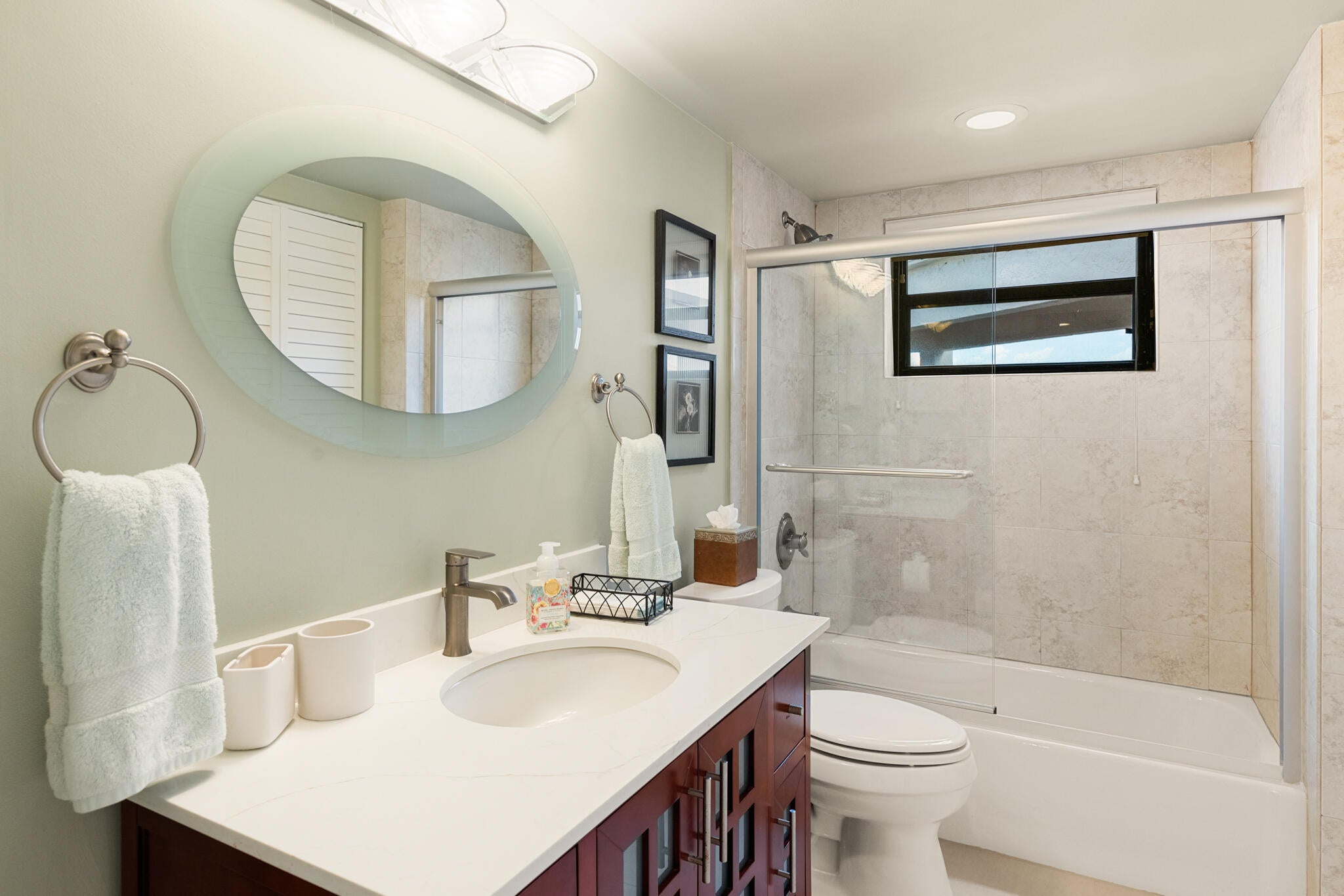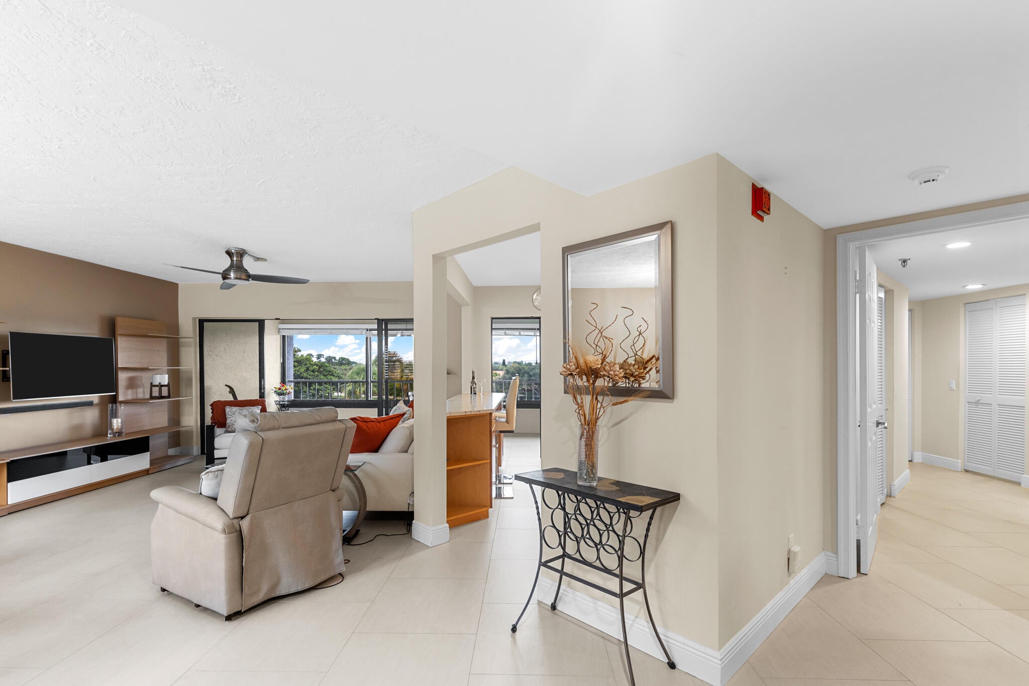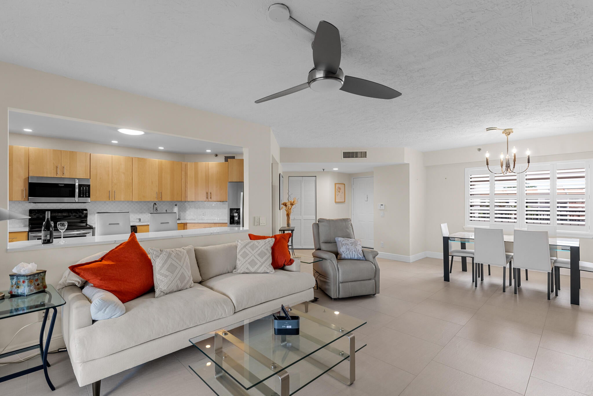 Beautifully updated and impeccably maintained, this clean and modern 2 bedroom 2 bath condo with large enclosed patio has breathtaking golf course views. The stunning kitchen features maple cabinetry, quartz countertops, a pearl-tiled backsplash and stainless steel appliances. Enjoy dining at the breakfast bar with seating for two. The spacious master suite boasts two fully outfitted walk-in closets and a luxurious bath with a jacuzzi tub and separate shower. Every closet in the home has been customized for maximum storage, and a washer/dryer is included for your convenience.Located in the prestigious, gated Boca Pointe community--within an excellent school district and just minutes from shopping, dining, and major highways--this home perfectly combines style, comfort,and convenience. Membership at The Club at Boca Pointe is optional and there are many membership options available.