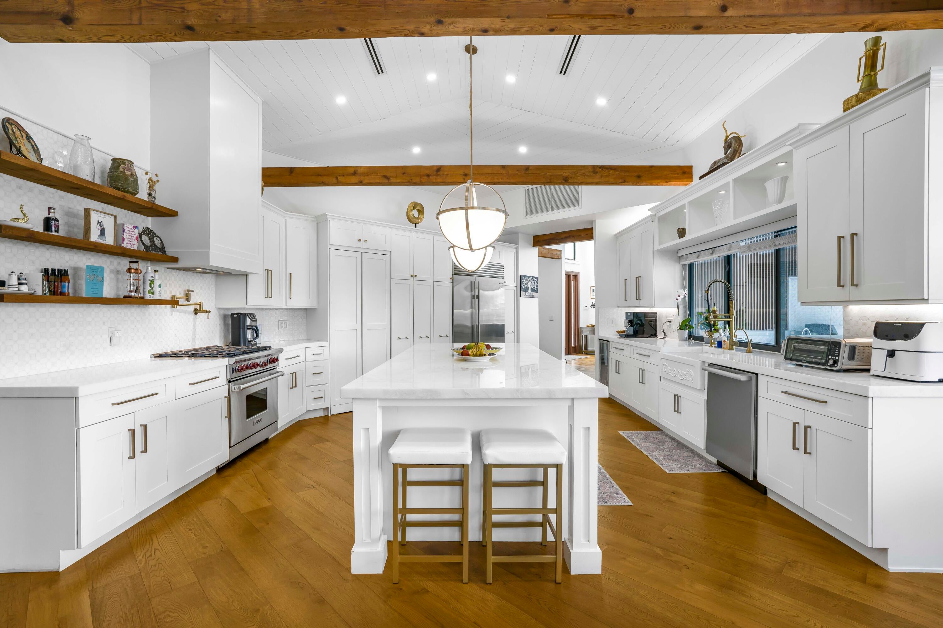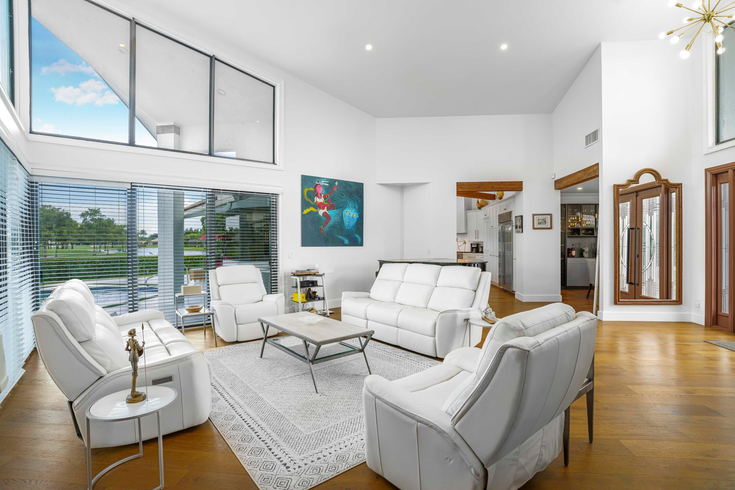 Experience the pinnacle of luxury living in this exquisitely remodeled lakefront estate, perfectly positioned on one of the most coveted cul-de-sac point lots in the prestigious gated community of Stonebridge Country Club. Offering one of the largest lake views in the community, this residence combines timeless elegance with modern design and an unmatched lifestyle.Spanning over 4,000 square feet, this stunning estate features 3 spacious bedrooms, a refined office/den, and a perfect balance of formal and casual living spaces ideal for both relaxation and entertaining. The heart of the home is the chef's dream kitchen, beautifully appointed with a Sub-Zero refrigerator, gas Wolf range, oversized island, and custom cabinetry--designed for both functionality and style.Every detail has been thoughtfully curated, from the rich hardwood floors that flow seamlessly throughout to the full impact-resistant windows and doors that ensure safety and peace of mind. Energy-efficient solar panels provide both sustainability and cost savings, blending luxury with practicality. The primary suite is a true retreat, offering serene lake views, custom-built closets, and a spa-inspired bathroom with designer finishes. Additional bedrooms are equally spacious and inviting, perfect for family and guests alike. Step outside to discover a spectacular outdoor oasis, designed for entertaining and year-round enjoyment. A custom outdoor kitchen, covered pergola, and expansive patio create the ultimate backdrop for gatherings, while sweeping golf course and lake views provide a picturesque setting. The beautifully paved circular driveway adds grandeur to the entry, setting the tone for what awaits inside. This extraordinary home is offered fully furnished and turnkey, allowing you to move in and immediately begin enjoying the lifestyle it affords. As a resident of Stonebridge Country Club, you'll enjoy access to a boutique-style mandatory membership community known for its exclusive amenities and vibrant lifestyle. From championship golf and tennis to pickleball, fitness, dining, and a welcoming social atmosphere, Stonebridge offers everything you need to live your dream.