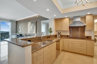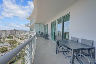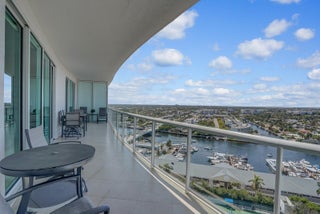 Highly sought-after, but rarely found, high floor lower penthouse ''8 '' stack at The Plaza at Oceanside. This 2bed plus den/2 bath sky residence boasts PH quality magnificent panoramic intracoastal views from its oversized terrace. The interior features 10' ceilings an open floor plan, custom built cabinets, porcelain flooring, and many high end designer finishes. Enjoy your villa in the sky with gorgeous custom cabinetry and moldings thru-out this tastefully decorated sky residence. Bonus 3rd bedroom/den as well as a large European kitchen with Samsung SS appliances, Poggenpohl cabinetry add to the features. . The Plaza features unparalleled amenties : all on a 40,000 square foot 4th floor deck with lush, tropical landscaping surrounding a luxury resort-style infinity pool.