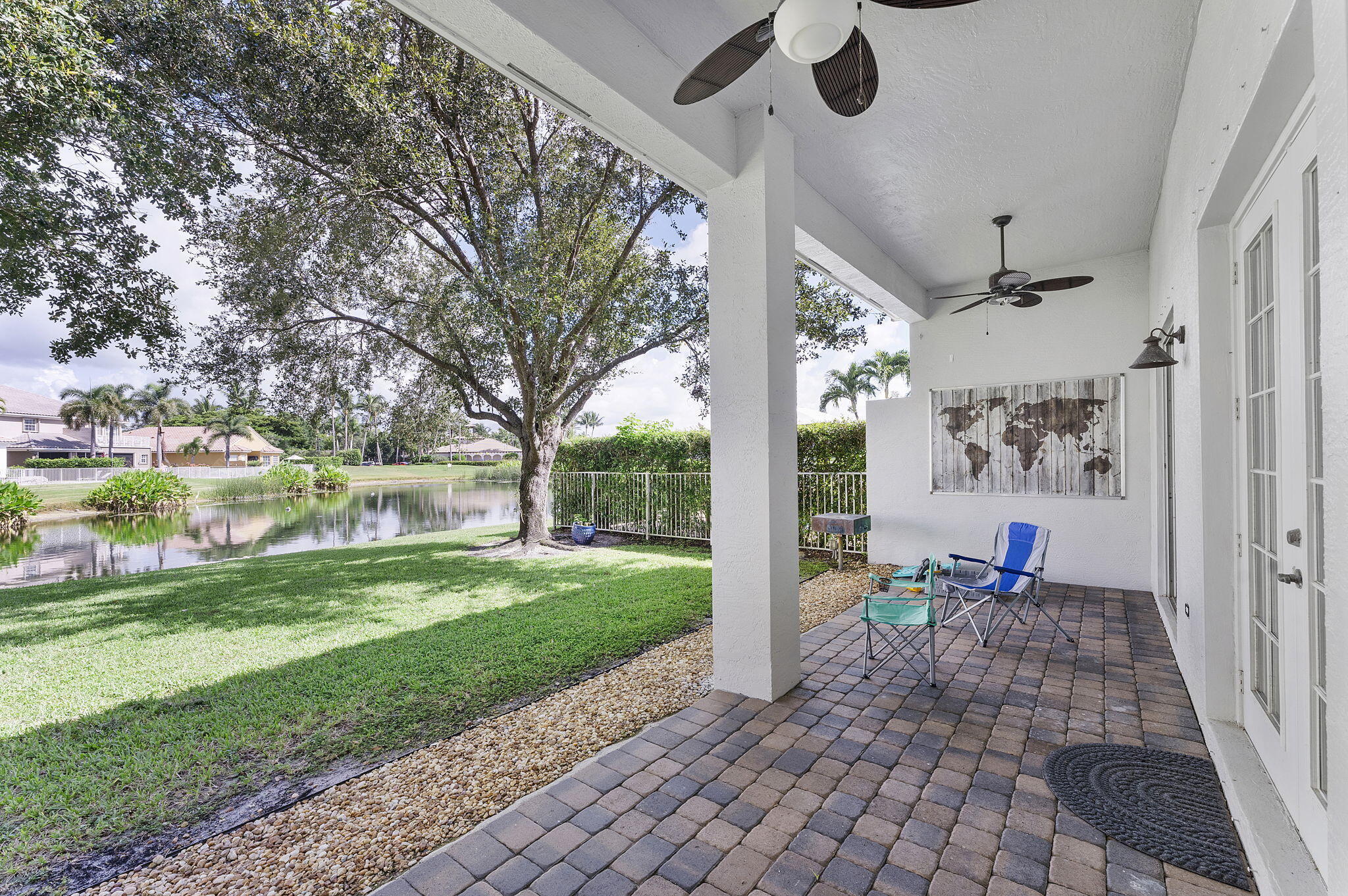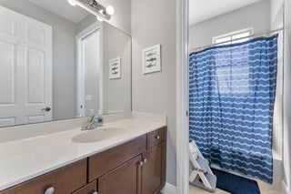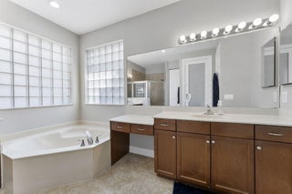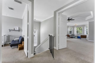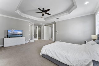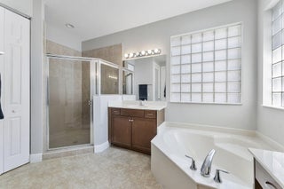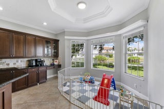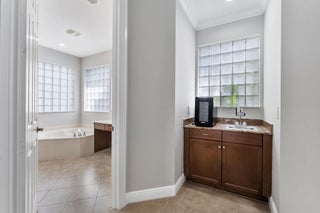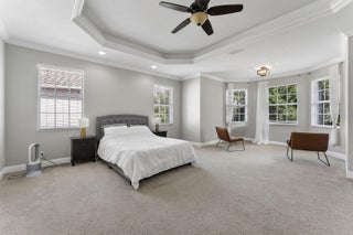 Welcome to this beautiful home featuring breathtaking lake views in a quiet, gated neighborhood. This exceptional property includes a 3-car garage and offers 2 bedrooms and 2 full bathrooms on the first floor, making it perfect for guests or multigenerational living. Step through the French doors to a covered lanai that presents stunning lake vistas, ideal for outdoor entertaining.The chef's kitchen, equipped with premium finishes and a spacious breakfast bar, is designed for gatherings of any size. Upstairs, the opulent master suite boasts a sitting area, versatile bedroom space for a home office or nursery, and two expansive walk-in closets. The updated master bath features a luxurious shower, a separate soaking tub, and dual sinks.Additional highlights include two large bedrooms,and a dedicated laundry room on the second floor. This community offers manned gate access, on-site management, and fantastic amenities such as a resort-style pool, fitness center, playground, and toddler splash park. Located within A-rated school districts, this home offers an unrivaled lifestyle. Schedule a viewing today and experience all this magnificent property has to offer!
