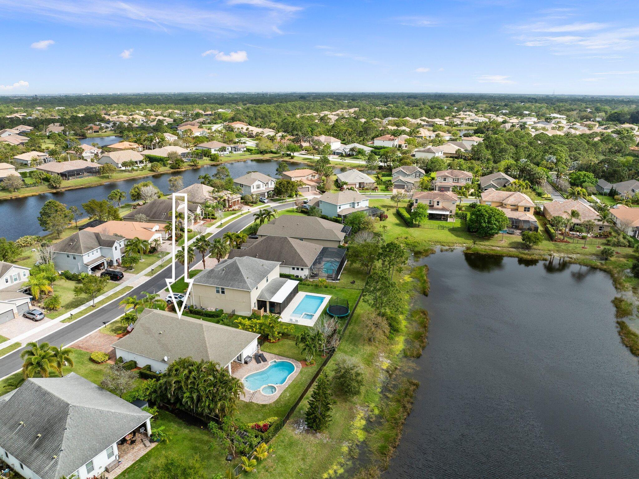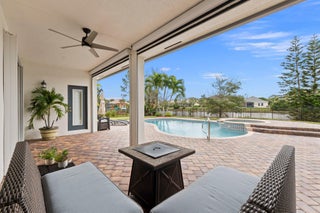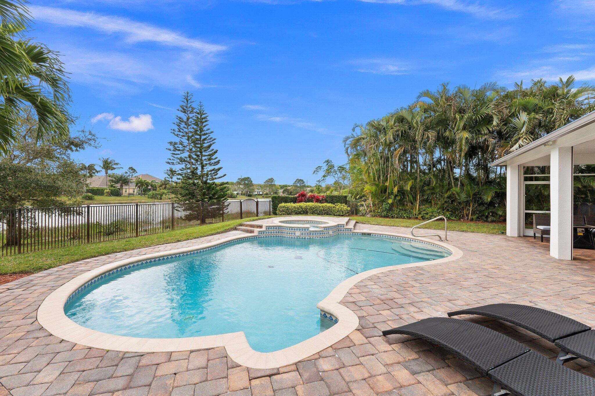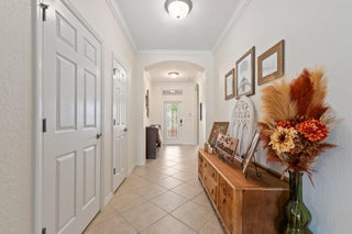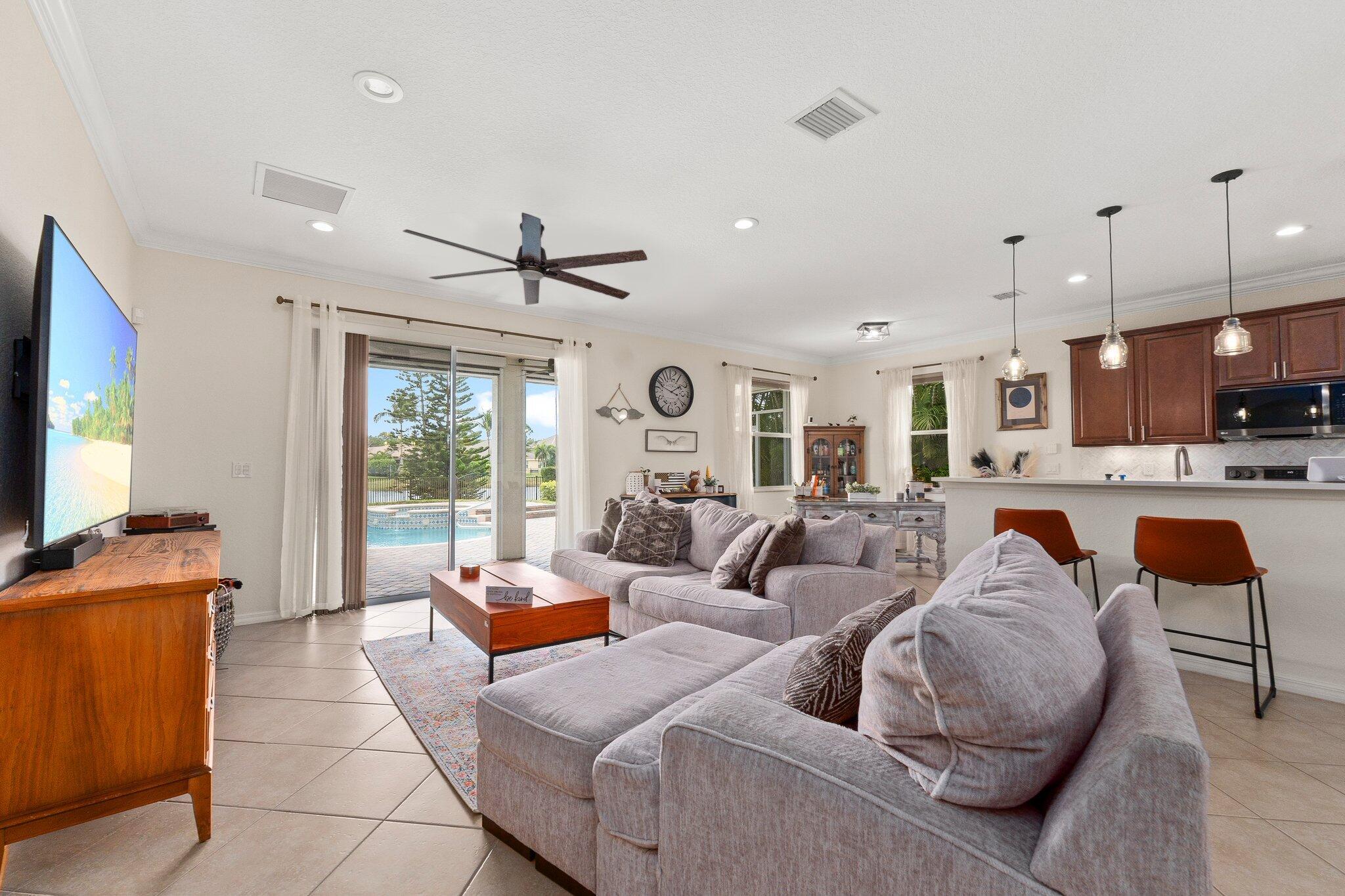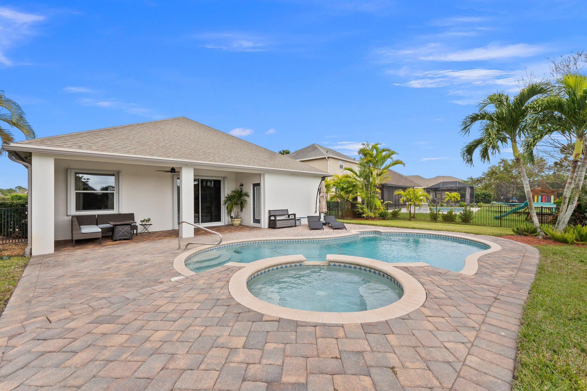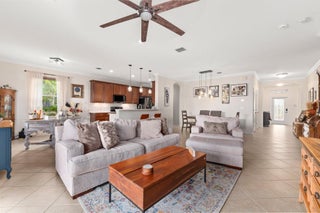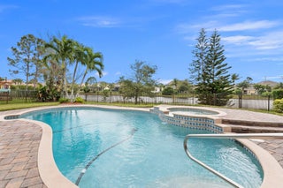 Meticulous 3 bedroom 2 bathroom 2 car garage pool home with lake views in the sought after community of Copperleaf in Palm City. Family orientated neighborhood with ample amenities including playground, clubhouse, pickleball & more! This home boasts a light & bright interior with crown molding, newer AC & water heater, open floor-plan and nice size guest rooms. Updated kitchen with Quartz countertops, Herringbone tile backsplash, oak cabinets, new black stainless steel appliances & large pantry. Spacious primary suite with shiplap accent wall, walk-in closets, dual sinks, soaking tub & frameless shower. Entertain family & friends outside under the covered patio, completely fenced yard offers lake views, paver deck & heated, salt water pool that's perfect for those hot summer days!