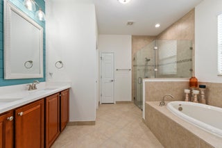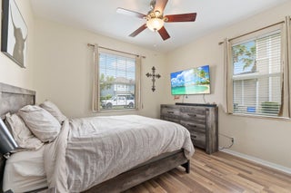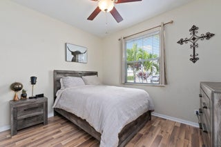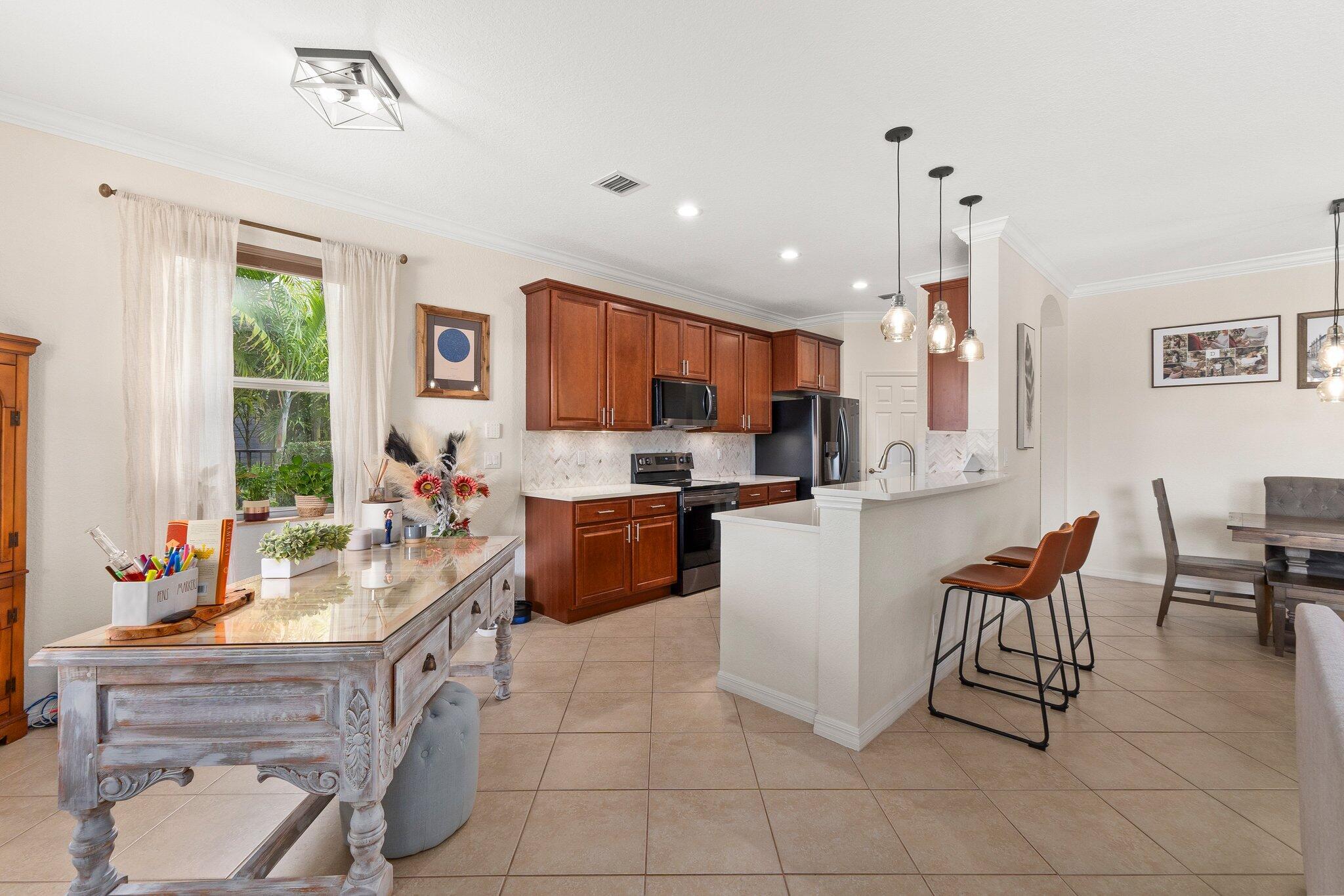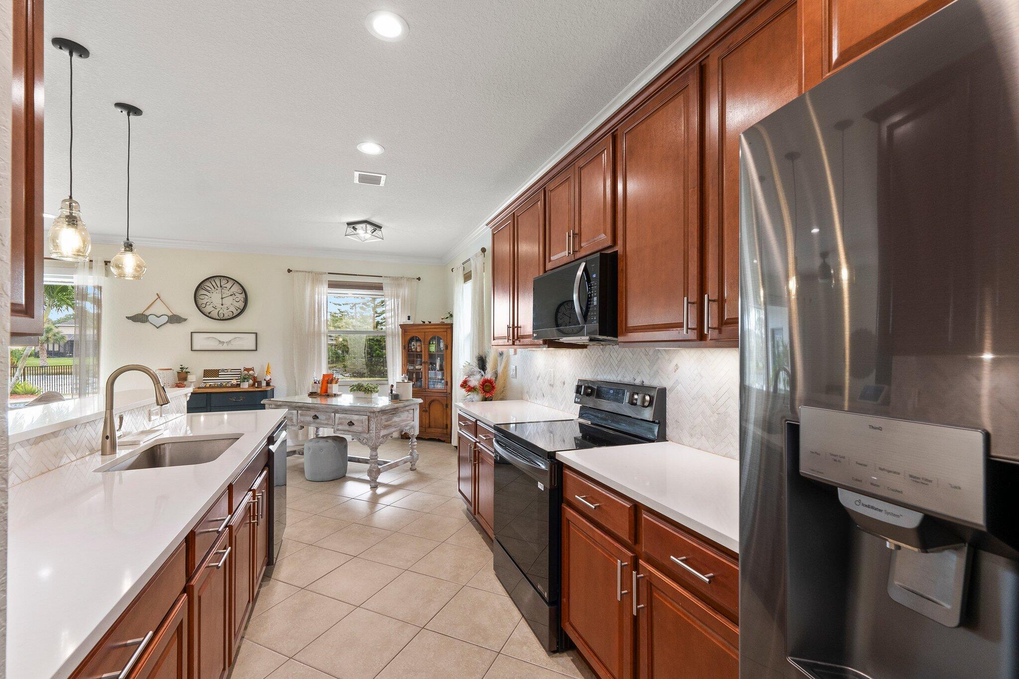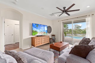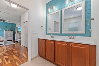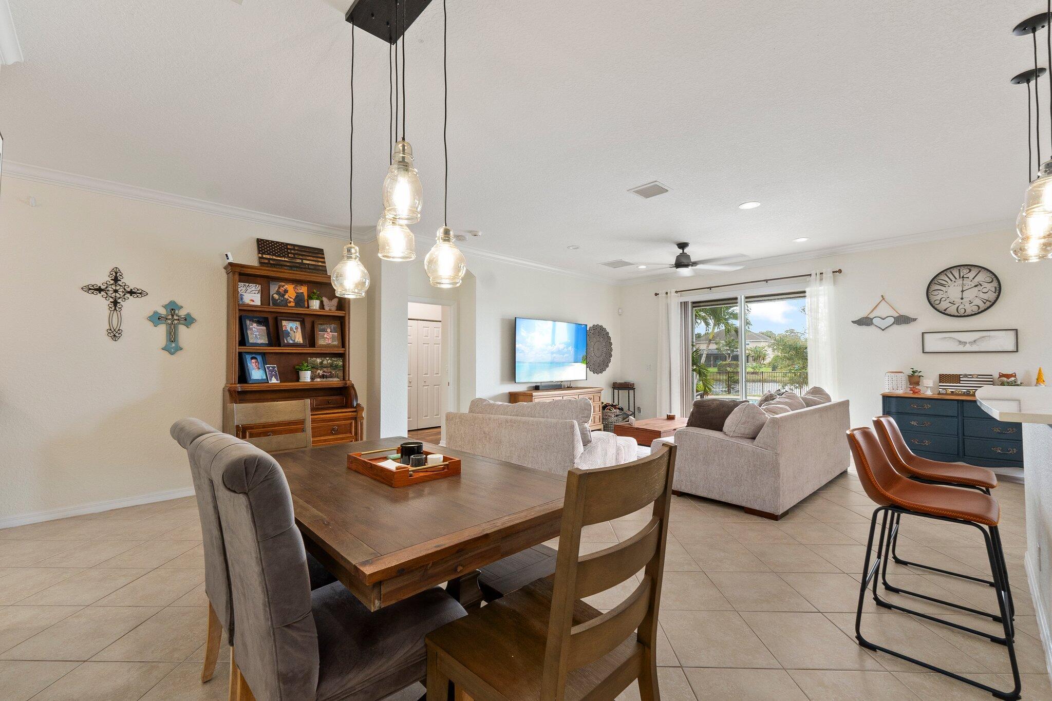 Meticulous 3 bedroom 2 bathroom 2 car garage pool home with lake views in the sought after community of Copperleaf in Palm City. Family orientated neighborhood with ample amenities including playground, clubhouse, pickleball & more! This home boasts a light & bright interior with crown molding, newer AC & water heater, open floor-plan and nice size guest rooms. Updated kitchen with Quartz countertops, Herringbone tile backsplash, oak cabinets, new black stainless steel appliances & large pantry. Spacious primary suite with shiplap accent wall, walk-in closets, dual sinks, soaking tub & frameless shower. Entertain family & friends outside under the covered patio, completely fenced yard offers lake views, paver deck & heated, salt water pool that's perfect for those hot summer days!