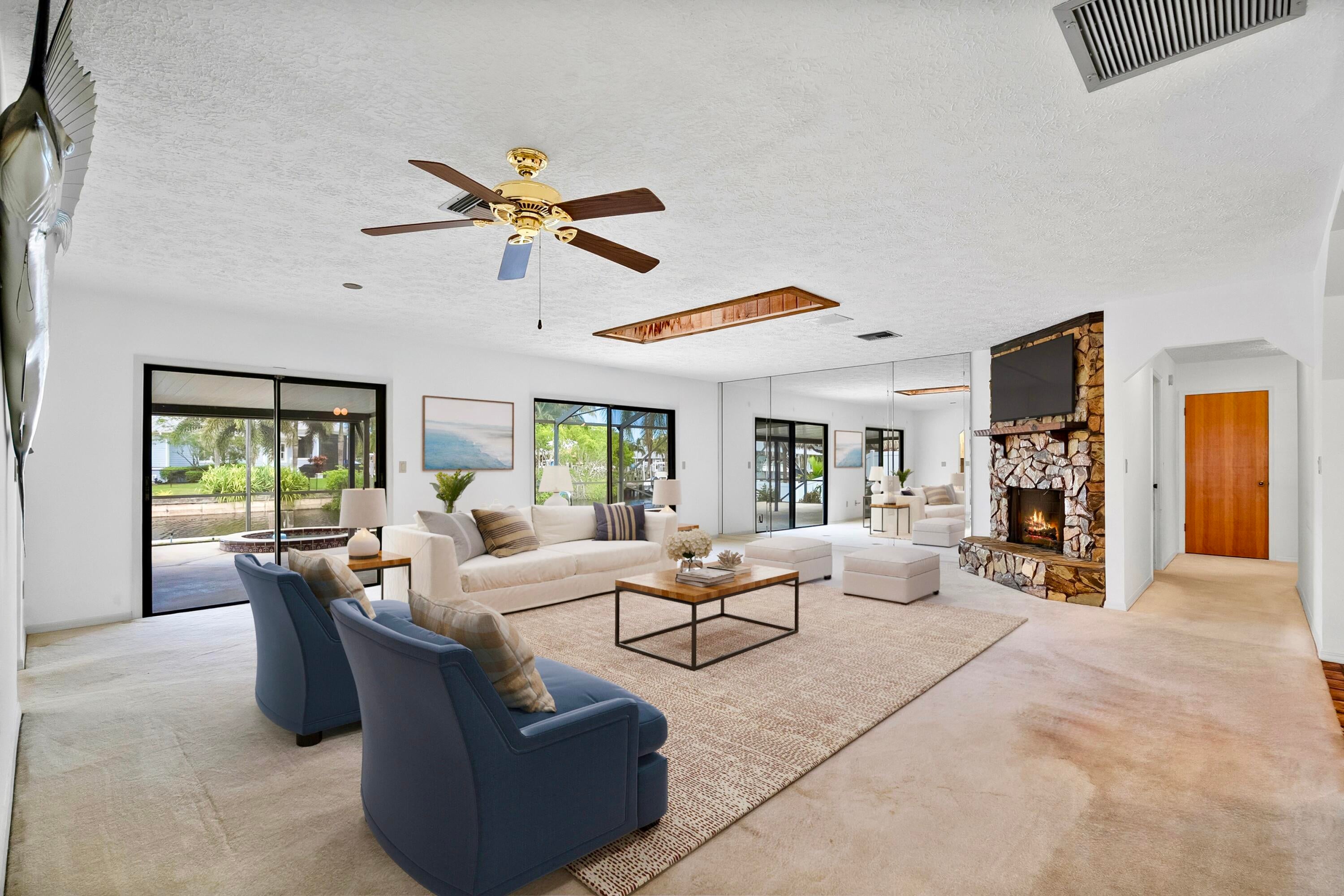 Boater's paradise in Lighthouse Point! This 3BR, 2BA waterfront home with NEW 75 FT SEAWALL offers direct deep-water access with no fixed bridges-just minutes to the Intracoastal, Stuart Sandbar, and Atlantic Ocean. Enjoy your own private dock and lift, ideal for fishing, cruising, or docking your boat after a day on the water. The backyard oasis features a screened-in lanai with private pool and hot tub, perfect for entertaining or relaxing in total privacy. Inside, the home offers a bright, open layout designed for coastal living. Conveniently located near Downtown Stuart, with its charming shops, waterfront dining, and vibrant arts scene. Rare opportunity to live in one of Palm City's most sought-after boating communities with No HOA (bring your toys) and top-rated schools.