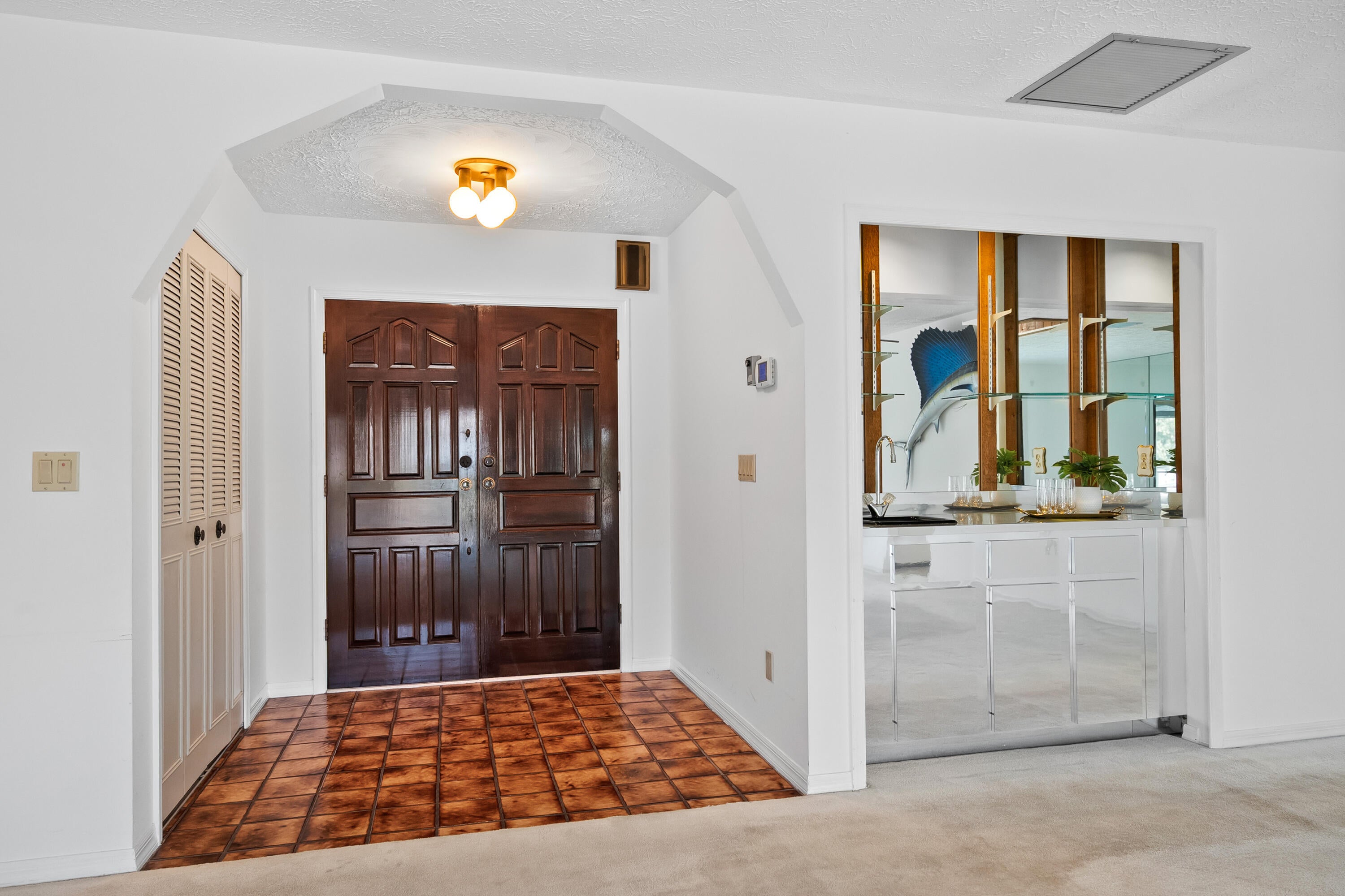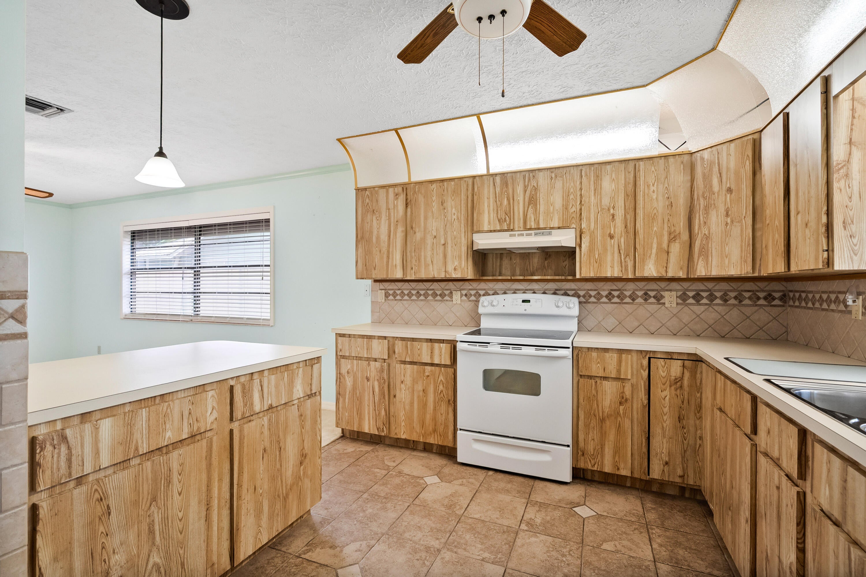 Closet Cabinets, Decorative Fireplace, Entry Lvl Lvng Area, Fireplace(s), Foyer, Cook Island, Pantry, Sky Light(s)