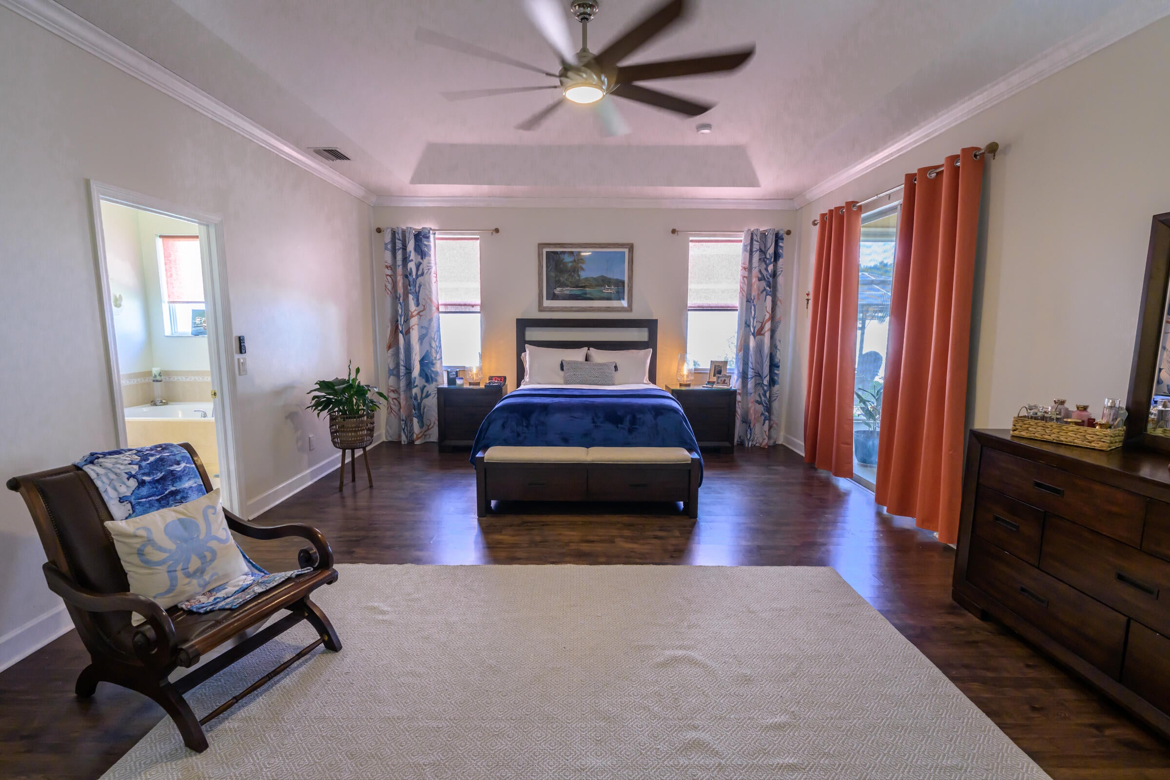 Rare Sebastian River Landing gem. One of the largest at a great $/SF. 4 bed/2 ba home elegantly & efficiently appointed. Cherry wood & tile floors; crown molding; baseboard; 9' ceilings; ample storage; laundry room; 2-car garage has overhead storage & is screened for cool weather use; metal roof; accordion shutters; raingutters; privacy fence, corner lot. Open space + a flex space for formal dining room or living room - your choice. Gorgeous kitchen with tall cherry cabinets, center island, granite countertops, SS appliances, walk-in-pantry, pass-thru window to screened-in lanai. The super-size owner's suite has large en-suite bath with soaking tub & sep. walk-in shower + huge walk-in closet. Low HOA fee! Community pool, clubhouse, tennis & basketball courts. Close to shopping & salt life