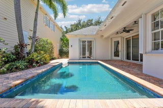 Don't miss your chance to own this enchanting courtyard home in one of the area's most charming neighborhoods! This sought-after 'B-Model' offers a bright, open layout w/ a smart split floorplan featuring 3 bedrooms, 2.1 baths & an adorable laundry room w/ extra storage & attached 2-car garage. The sun-drenched windows & sliding glass doors frame a lush, tropical pool retreat--private & perfect for unwinding. Recent upgrades include a 2020 roof, full accordion shutters, a refinished pool (2024) w/new equipment & new flooring in attic for additional storage & new 14 inch insulation for enhanced energy efficiency.NewHaven is Abacoa's original gem and still one of its most beloved communities. With the most greenspace, NewHaven offers a serene, storybook setting of winding nature trails, tucked-away lakes, and charming front porches that invite connection and calm. Residents enjoy two parks, two sparkling pools, and two welcoming clubhouses, all just steps from home. Located minutes from everything that makes Jupiter extraordinary - pristine beaches, scenic waterways, and a vibrant outdoor lifestyle this neighborhood is a haven for paddleboarding, boating, golf, swimming, and biking along gorgeous trails. You're also just moments from top-tier dining, boutique shopping, and everyday conveniences, with PBI Airport, West Palm Beach, and Palm Beach Island only 25 minutes away for effortless travel and cultural excursions. Families will appreciate zoning for highly rated public schools, including Lighthouse Elementary (K-2), Beacon Cove Intermediate (3-5) right within the community, Independence Middle (6-8), and Dwyer High School (9-12), plus excellent private school options nearby. Throughout the home, you'll find whimsical touches & charming details! This bright and inviting home offers effortless Florida living for its lucky new owners whether as a primary residence or a seasonal retreat. Low HOA fees include basic cable, high-speed internet, professional landscaping, access to pools, parks, community management, reserves, and more. Make sure you 'walk through' this home via the Matterport Tour, and preview a fun home video! Don't miss this rare opportunity to own in one of Jupiter's most cherished neighborhoods.