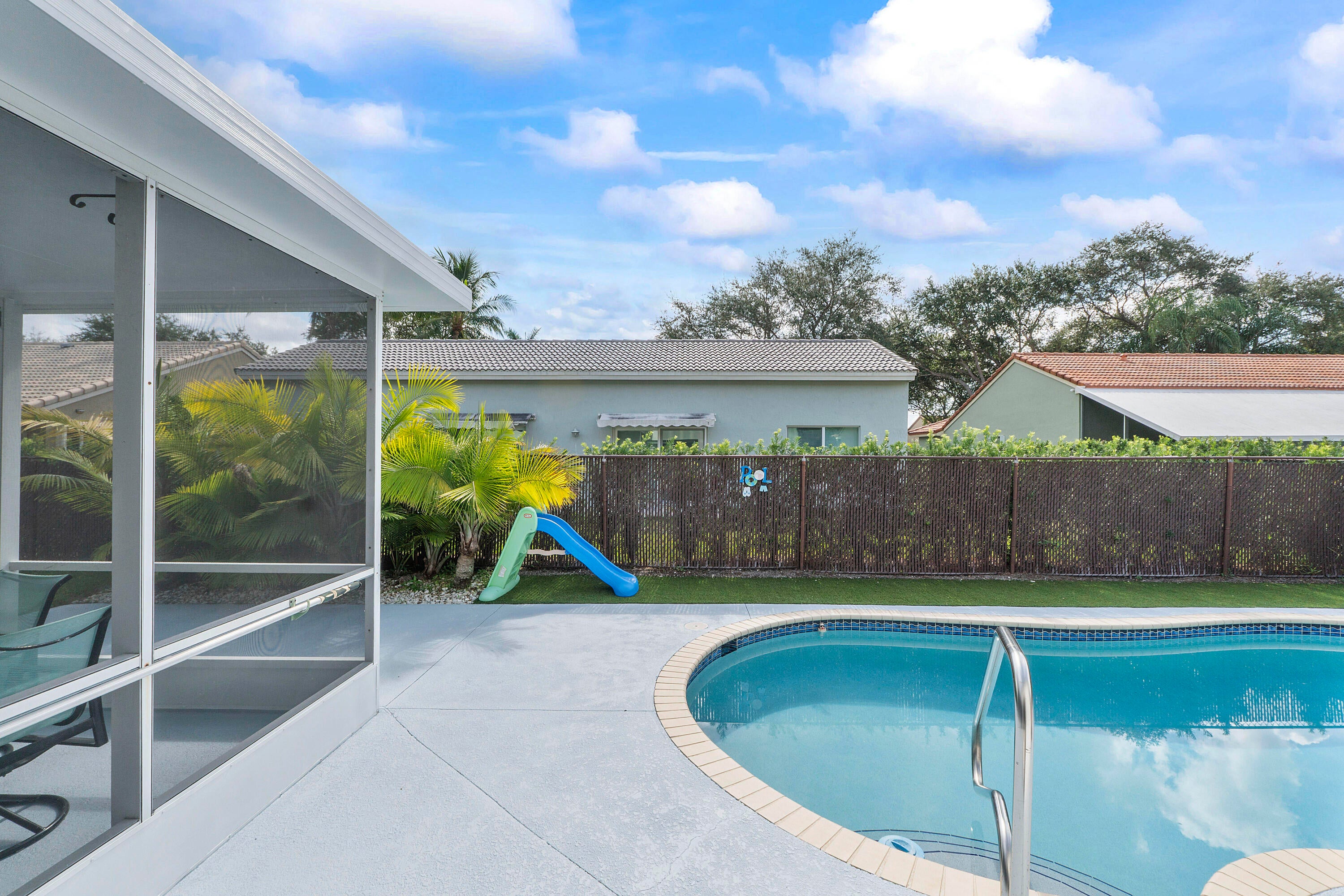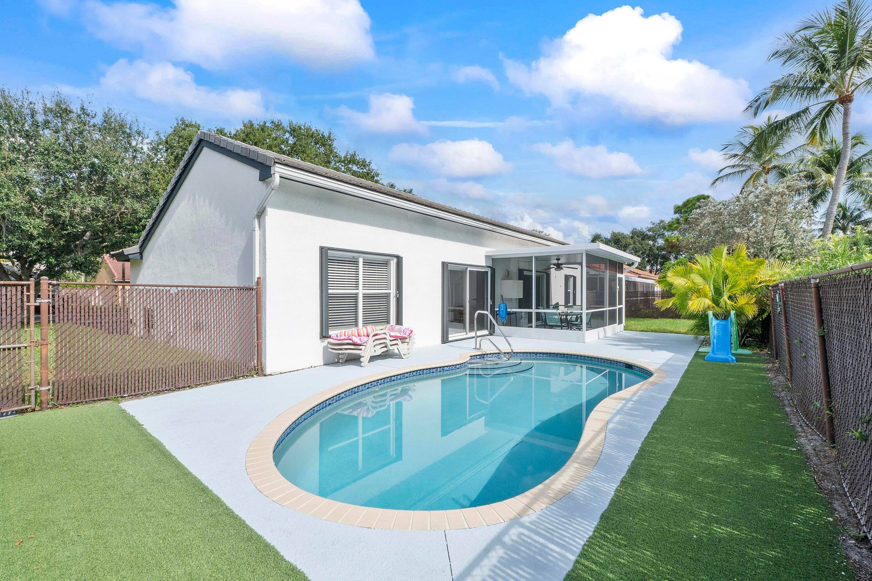 Impeccably Maintained Home in Sunrise Estates - Winston ParkThis move-in ready home has been meticulously cared for, featuring a split floor plan and soaring cathedral ceilings. The interior boasts quartz countertops in the kitchen, a marble bath vanity with an oversized tub in the master bathroom, ceramic tile throughout with wood flooring in the bedrooms, all enhanced by fresh paint.Step outside to a fully fenced yard and enjoy a 5-foot deep heated fresh-water pool redone in 2017, with LED changeable lighting and a new pump installed in 2025 surrounded by pristine astro turf in a totally fenced in backyard. The 10 x 15 screened-in back patio is perfect for relaxing or entertaining.Additional features include a 7-car driveway recently resealed, exterior motion lighting, accordion hurricane shutters, and an interior police/fire alarm system. Conveniently located with easy access to I-95, the Turnpike, and Sawgrass Expressway, and just minutes from a fire/police substation and community center, this home offers both comfort and convenience. Situated in a top school district within a quiet, friendly neighborhood, Sunrise Estates in Winston Park is a place you'll be proud to call home.