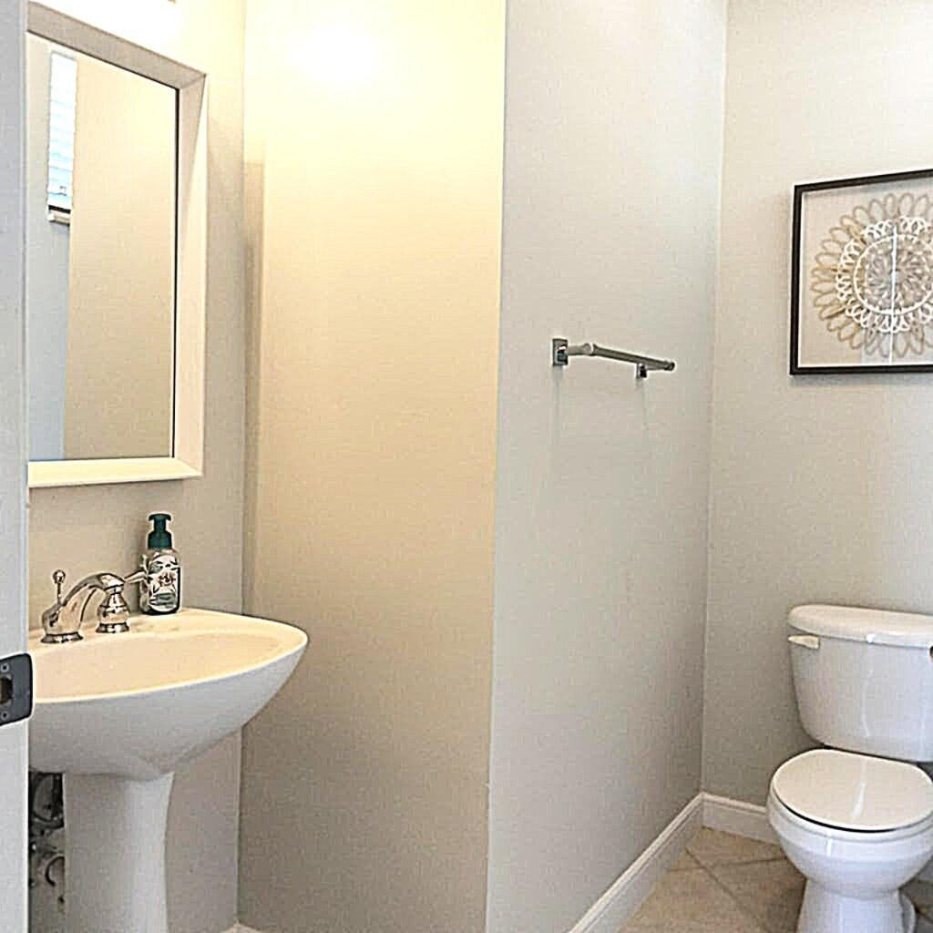 BEAUTIFUL 3BR/ 2.5BTH, 2 STORY HOUSE WITH DIRECT LAKE VIEW. OPEN KITCHEN W/BREAKFAST AREA ,SS APPLIANCES, GRANITE COUNTER TOPS. CARPET ON 2ND FLOOR. TILED LIVING ROOM WITH UPGRADED POWDER ROOM ON 1ST FLOOR. MASTER BEDROOM ON 2ND FLOOR HAS 2 SEPARATE SHELVED CLOSETS (HIS/HERS).MASTER BATHROOM INCLUDES SEAMLESS SHOWER ,SOAKING TUB, DUAL SINKS. 2ND & 3RD BEDROOMS HAVE CLOSET SPACE. LAUNDRY ROOM W/FULL SIZE WASHER & DRYER ON 2ND FLOOR. GARAGE IS CONVERTED INTO PLAY ROOM UNDER A.C. SHORT WALKING DISTANCE TO CLUBHOUSE & POOL. BASIC CABLE, TRASH PICK-UP ARE INCLUDED IN RENT. GATED COMMUNITY 'EVERGRENE' OFFERS MANNED GUARD GATE & CLUBHOUSE WITH FULL GYM, RESORT STYLE POOL, HOT TUBS, WATER PARK & TIKI HUT.CLOSE TO I-95,PB GARDENS MALL,PB AIRPORT,BEACHES