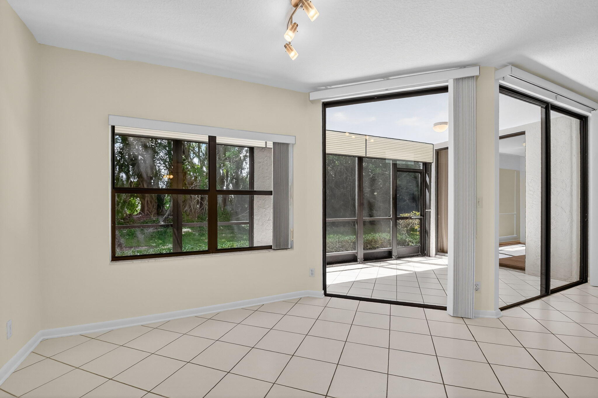 Discover the perfect blend of comfort and convenience in this 2-bedroom, 2-bathroom, ground-floor condo with a private 1-car garage. Enjoy low-maintenance living without stairs, ideal for all lifestyles. This home boasts a beautifully renovated kitchen with sleek granite countertops and low-maintenance plank tile flooring in the bedrooms. The spacious master bedroom features a sliding door opening to a bright Florida room, perfect for relaxation. Platina offers an exceptional array of amenities designed for an active and social lifestyle. Residents have access to a clubhouse, multiple pools, a hot tub, an on-site cafe, poker room, billiards, shuffleboard, bocce, racquetball, and tennis. Engage with neighbors through a variety of clubs and community events, fostering a sense of belonging.