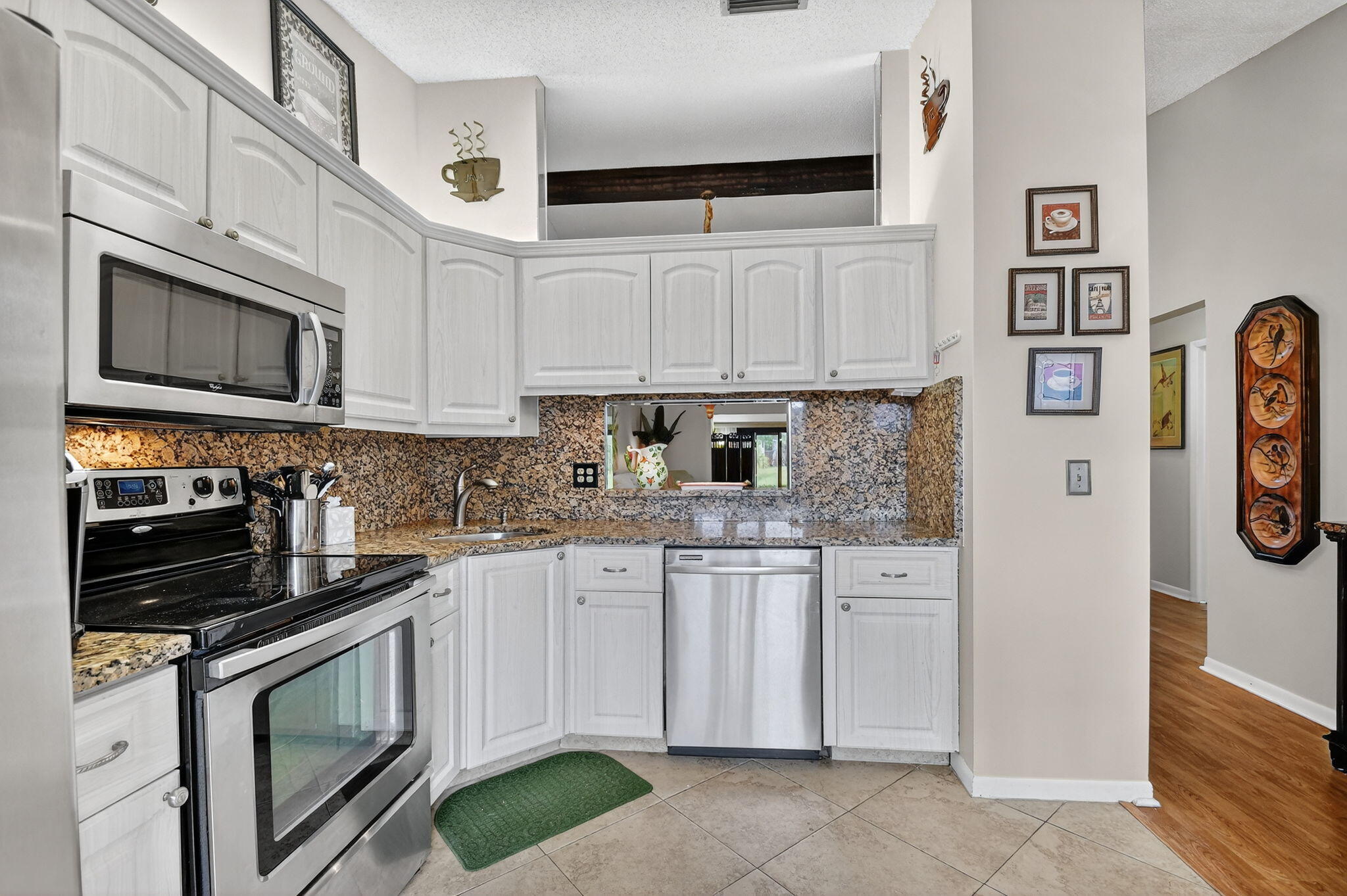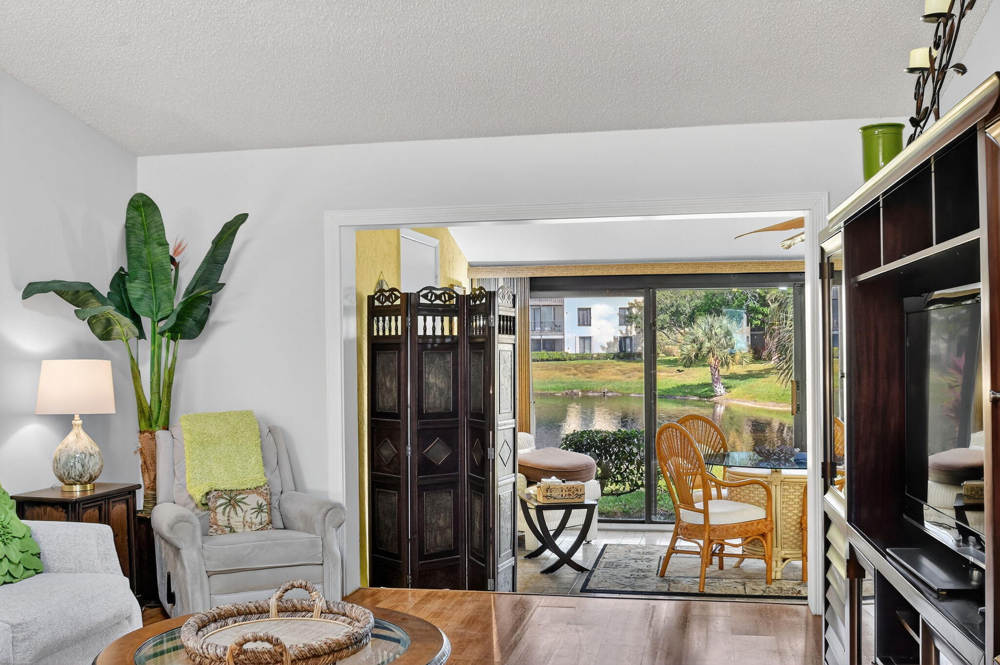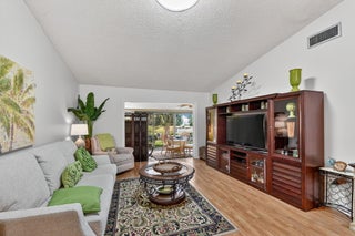 Enter a private front patio to your villa and be greeted by a water view. Immaculate, all-ages, turnkey home has soaring ceilings and a skylight bathing the living area in natural light. Most of the furniture is included (can be purchased empty too). Brand new neutral color interior paint. The pool is located a short stroll away. Features include a new electric panel, a home warranty until 12/31,a spacious Florida room, hurricane shutters, newer bathroom vanities, new fridge, walk-in closet, 0 carpet and an assigned parking spot directly in front. Association covers roof maintenance and replacement plus building insurance. All-ages Pine Ridge North II amenities include a clubhouse, a pool, tennis courts, bocce ball and shuffleboard.AC is approximately 11 years old, the water heater is approximately 6 years old.