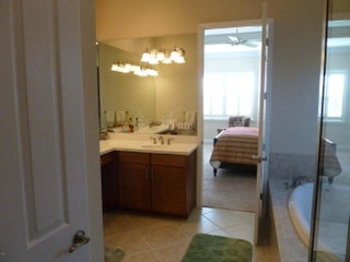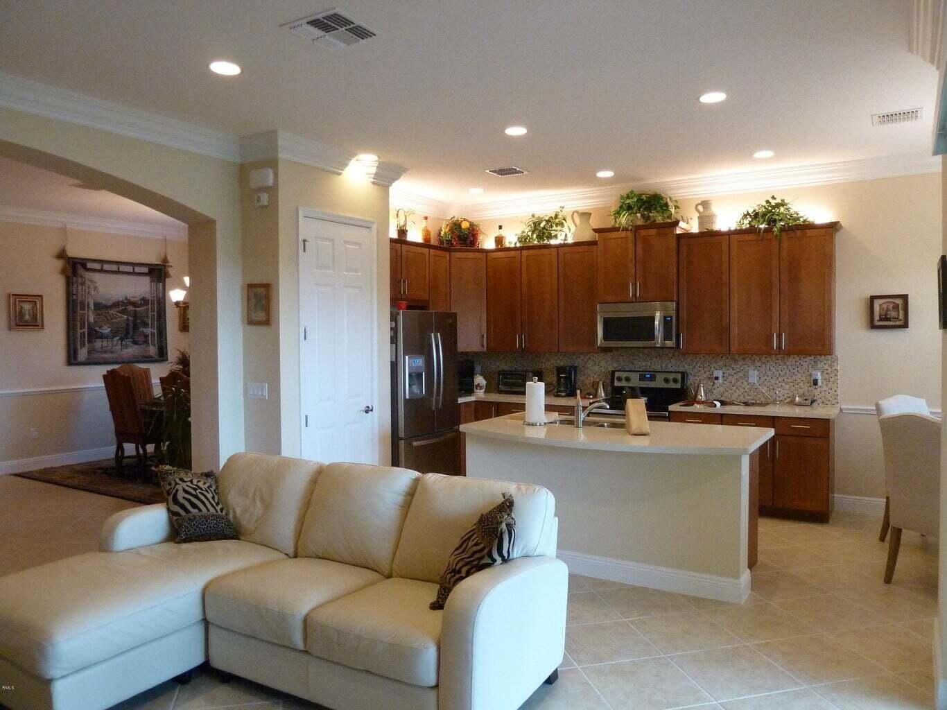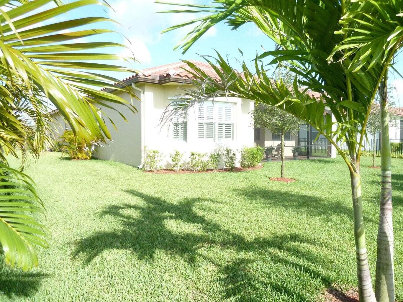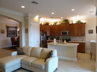 PROPERTY IS UNFURNISHED. Beautifully landscaped lake lot. Open spacious floor plan. Many upgrades including: custom closets in three bedrooms, plantations shutters in kitchen, master bedroom and bath, crown molding, accent lighting in living room, full back splash in kitchen counter area, screened lanai, fenced yard, master bedroom ceiling fan, driveway and lanai has pavers