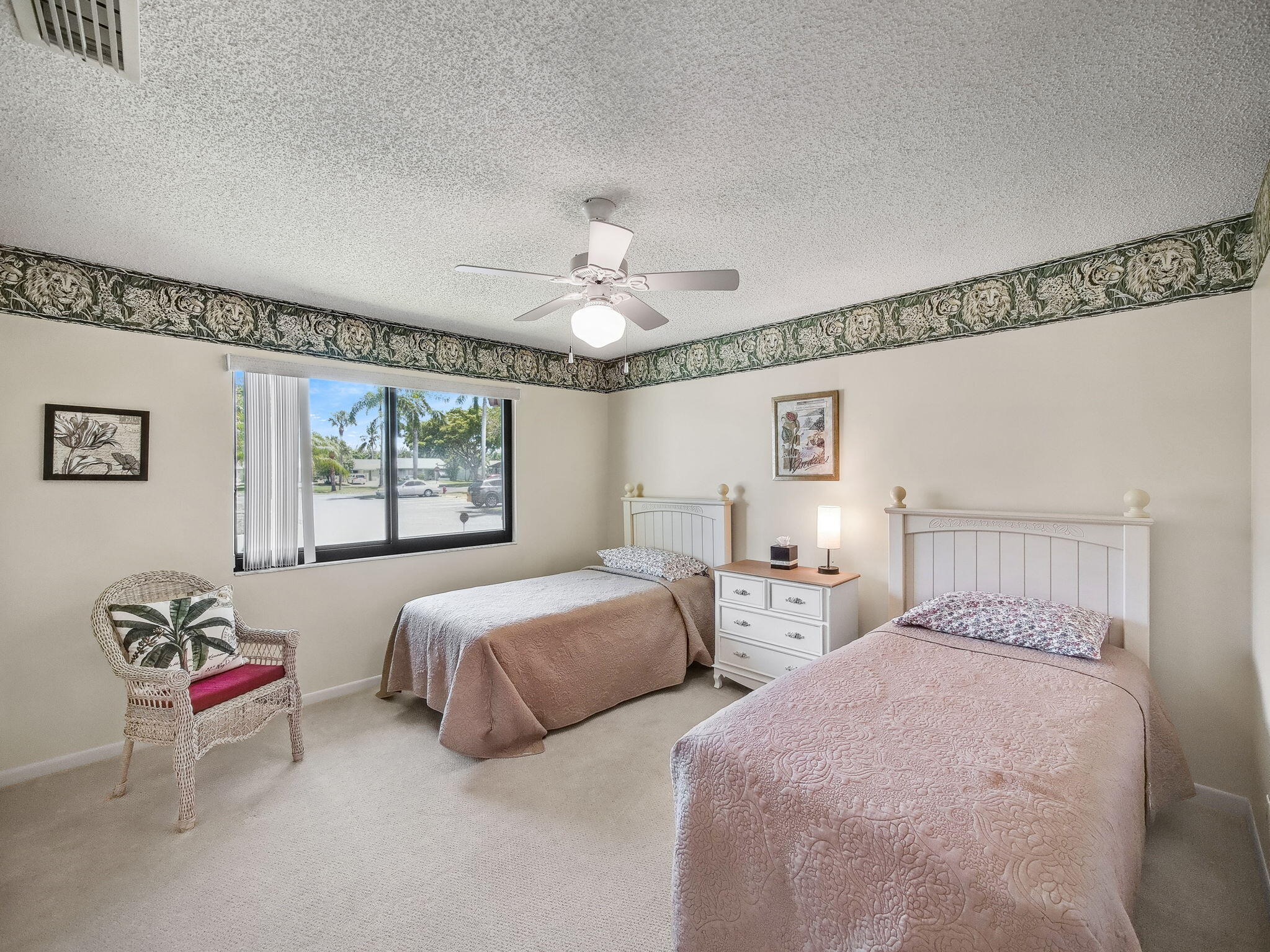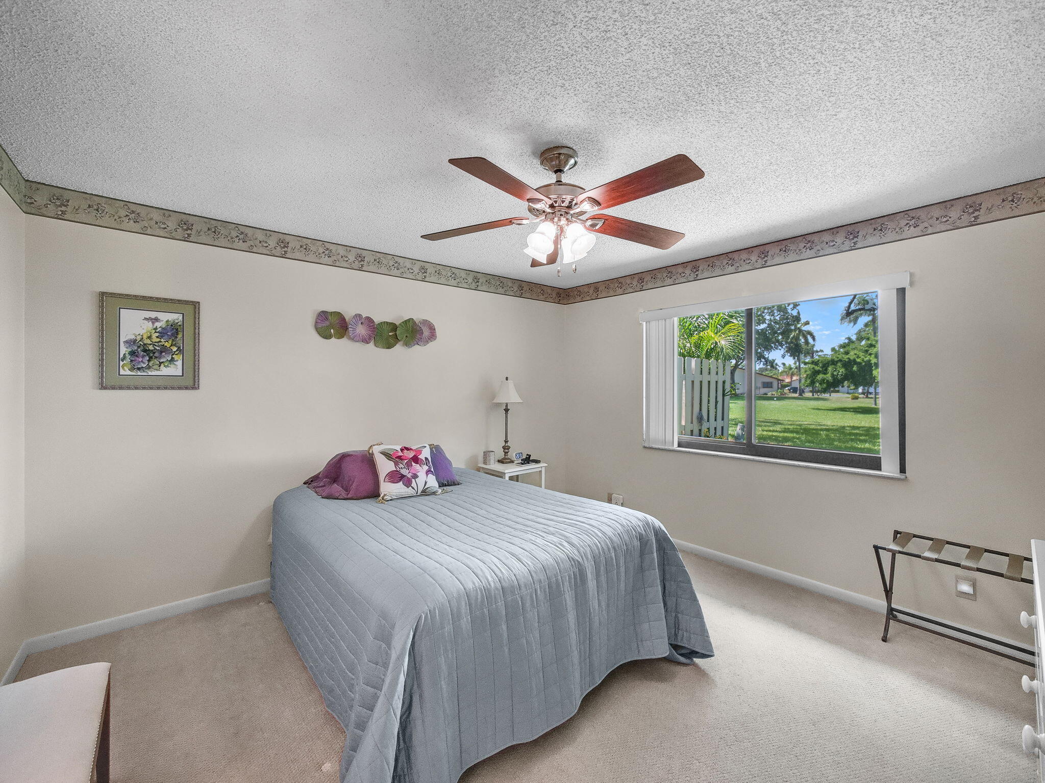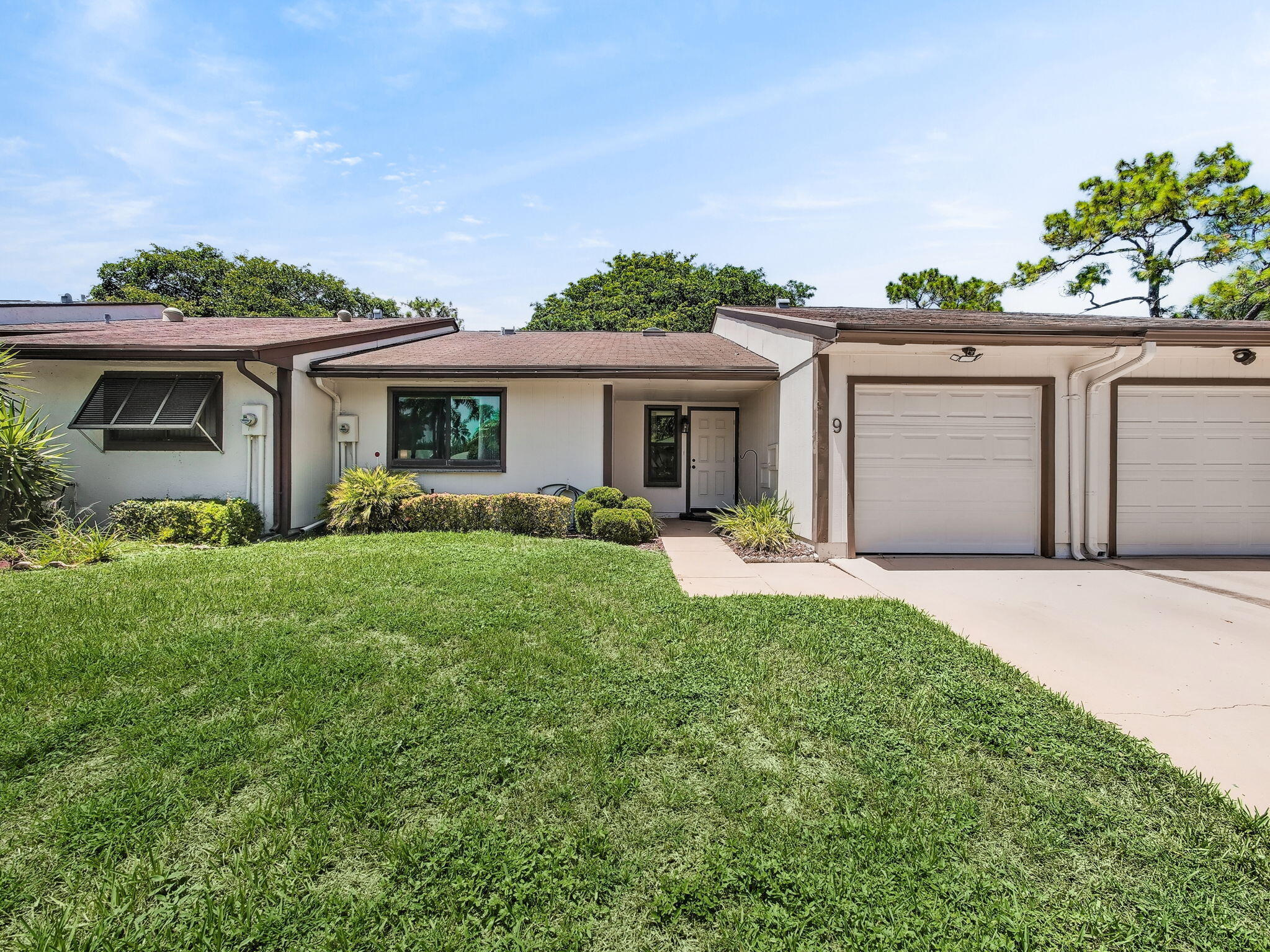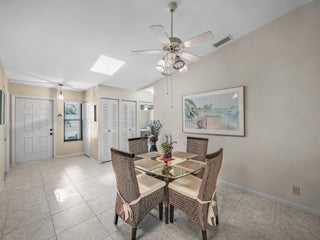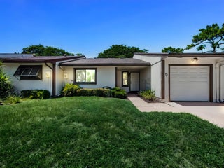 Beautiful villa in a vibrant all-ages community, nestled in a quiet cul-de-sac with plenty of guest parking. This 2-bedroom, 2-bathroom home features a remodeled kitchen and bath, impact windows, impact front door & garage door. This impeccably maintained villa offers complete hurricane protection. Two skylights, and a screened patio with private garden views. Enjoy tons of natural light and ample closet space throughout. Pet friendly community.HOA includes cable, internet, lawn care, and exterior painting. Community amenities: 2 pools, clubhouse, tennis/pickleball courts, playground, and walking paths. Just 5 minutes to the beach and walking distance to Publix, dining, and entertainment and easy access to from I95.impact garage door
