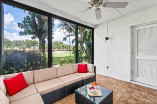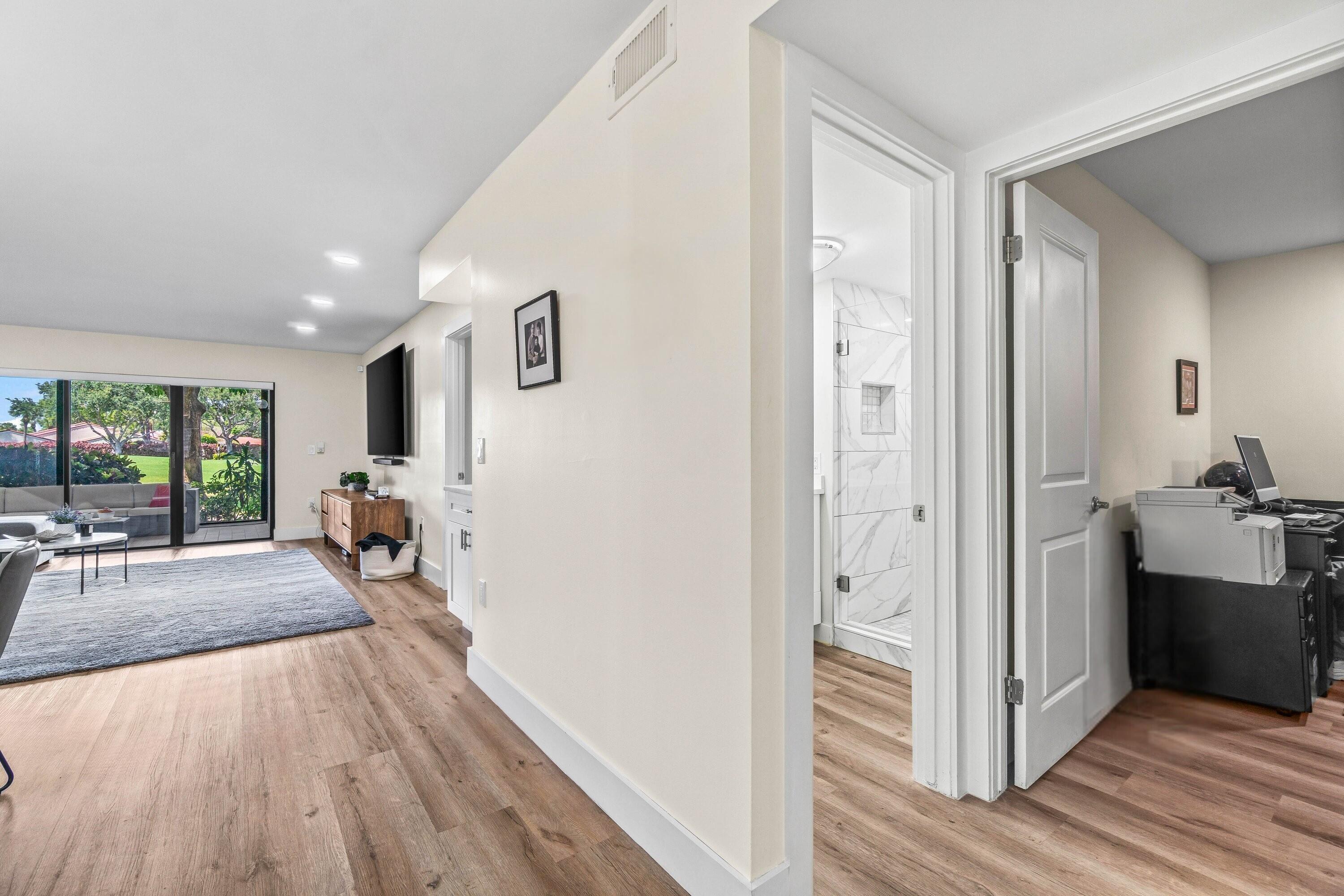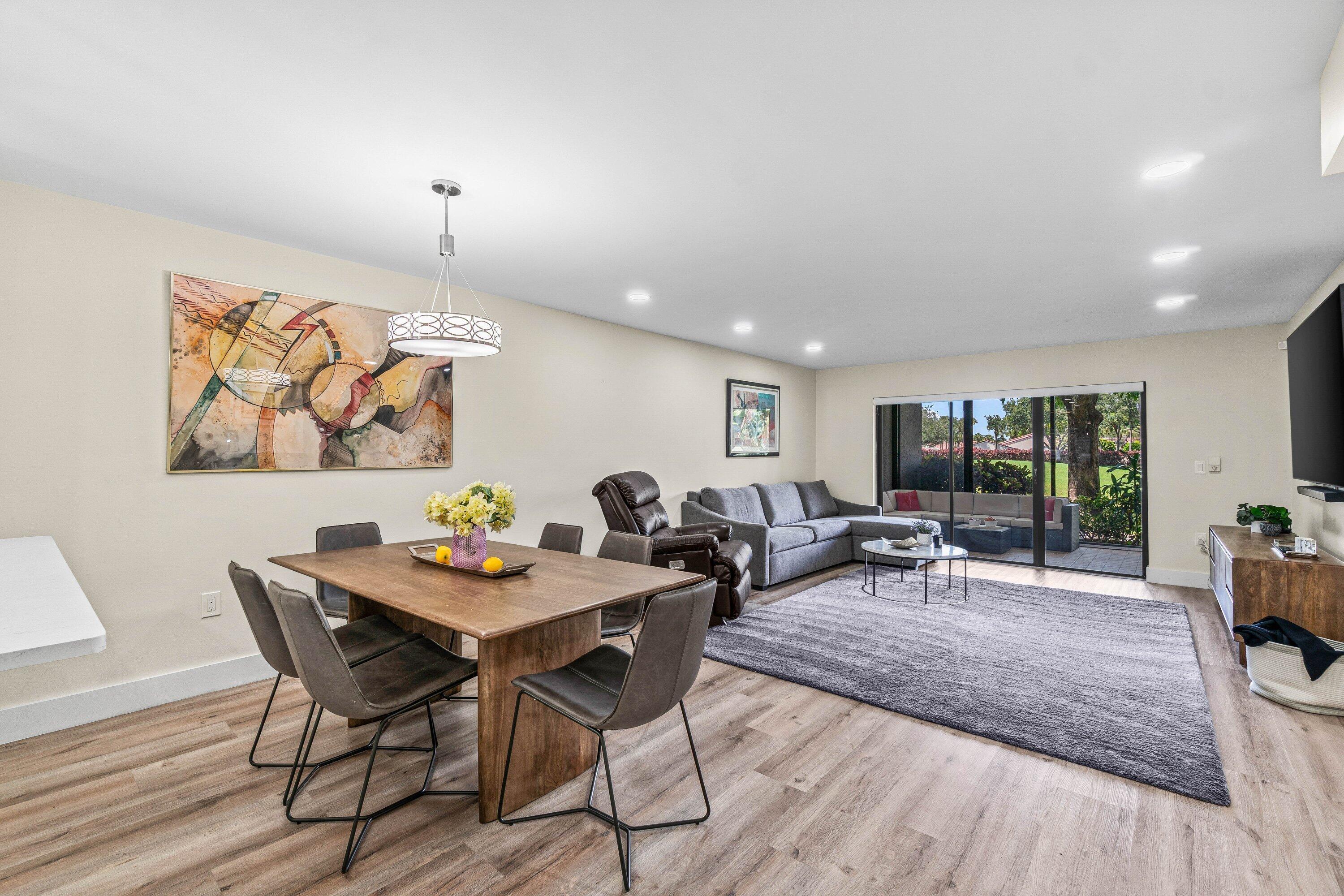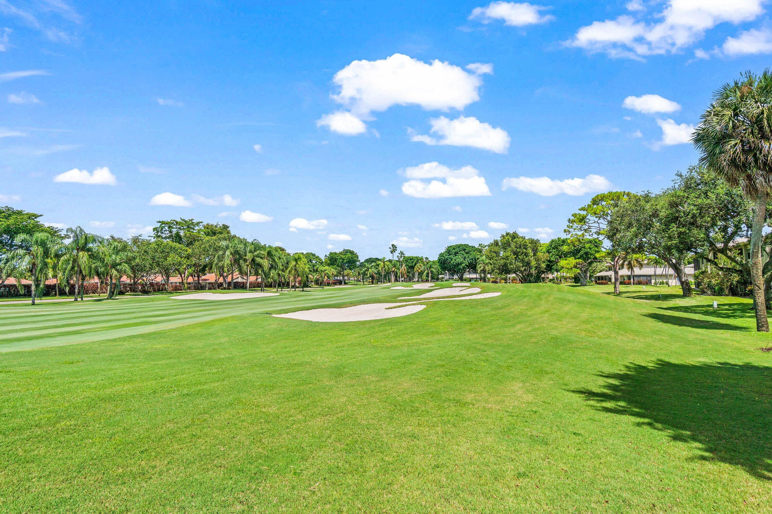 Lovely, fully renovated 1st floor 2BR/2BA condo with sweeping views of the golf course. Located in the prestigious Hunters Run Country Club. Designed in a fresh, modern palette with an open-concept layout. The open kitchen shines with white cabinetry, sleek quartz countertops, and a spacious breakfast bar. Other touches include crisp, modern bathrooms, custom LED lighting, luxury vinyl flooring, several closets including a custom walk-in, remote-controlled blinds, and a lanai with floor-to-ceiling sliders overlooking the fairway. Contemporary furnishings are available, offering a move-in-ready option. Space is available on the side of the building to add a golf cart pad with electric hook-up. Mandatory annual membership. Country club living awaits!Set in the prestigious Hunters Run Country Club, where luxury meets leisure, residents enjoy three 18-hole golf courses, 18 tennis and 12 pickleball courts, a resort-style pool with poolside bar, multiple dining venues indoors and out, a state-of-the-art fitness center with personal training and classes, spa and salon services, and lively entertainment. All of this is just minutes to vibrant Downtown Delray Beach, boating on the Intracoastal, and the glistening, pristine beaches.