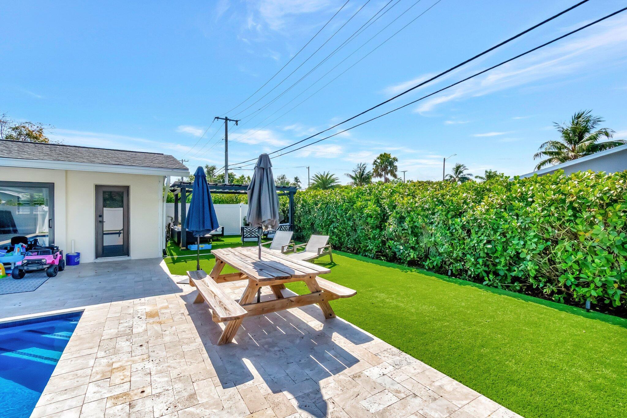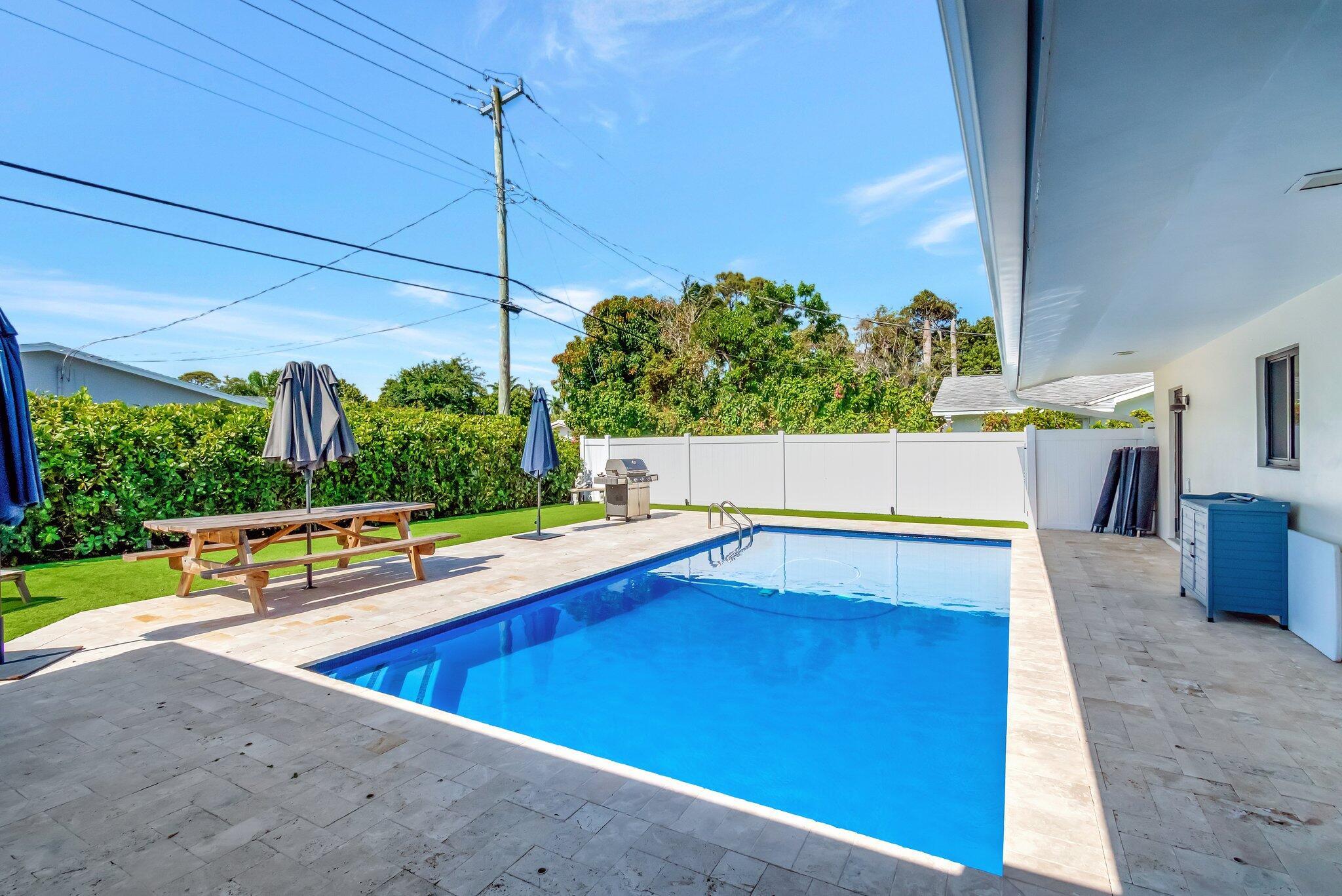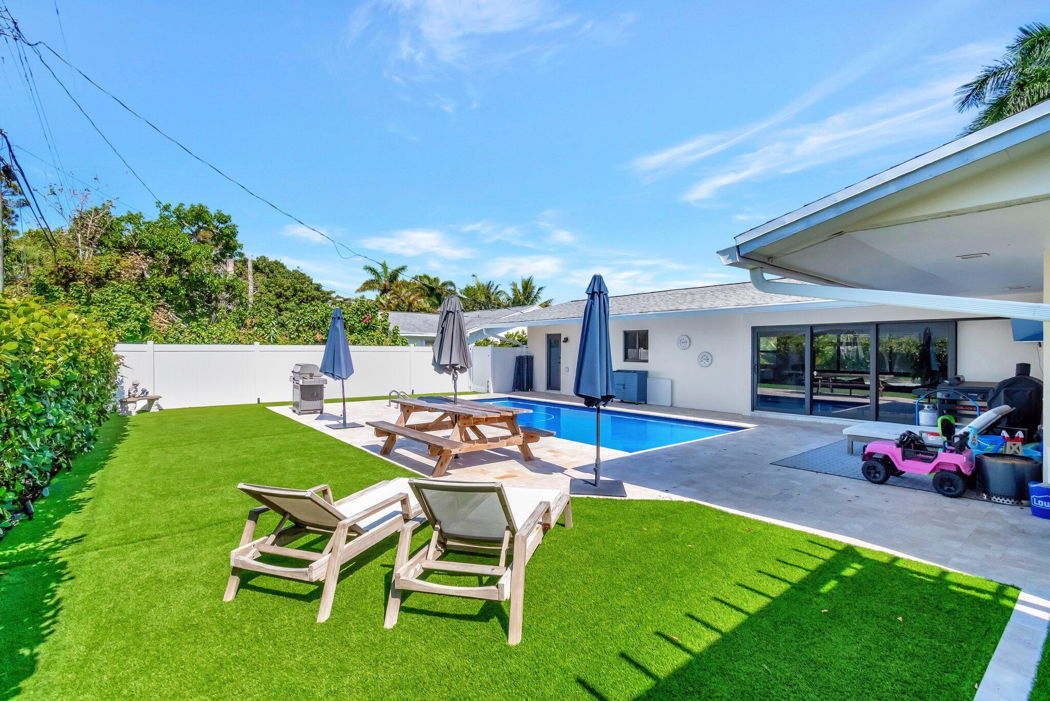 Welcome to your dream home in the desirable Chapel Hill. This stunning 3-bedroom, 2-bathroom residence offers 1,678 sq ft of stylish living space in a perfect location just minutes from the beach and vibrant downtown Delray. Brand-new flooring, fresh paint, and impact windows throughout. Open-concept kitchen features sleek stainless steel appliances, quartz countertops, and plenty of storage. Enjoy Florida living at its finest with a sparkling pool, fully fenced and turfed backyard--ideal for entertaining or relaxing in private. A versatile bonus room provides the perfect space for a home office or den. Additional features include a new A/C system, circular driveway, and modern finishes throughout. Don't miss this move-in ready gem.