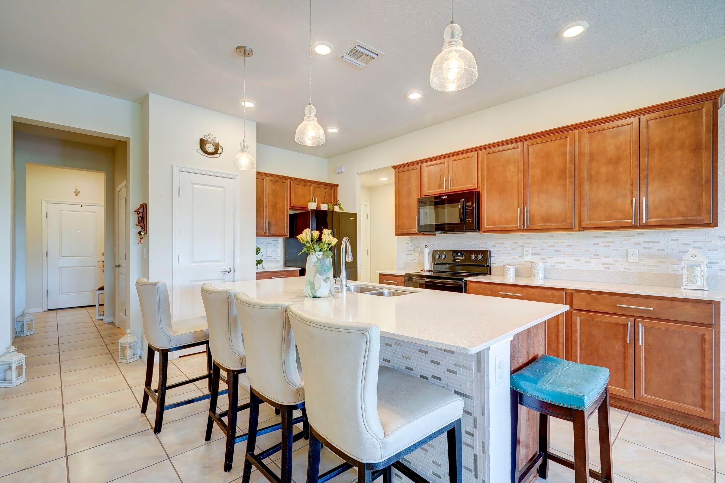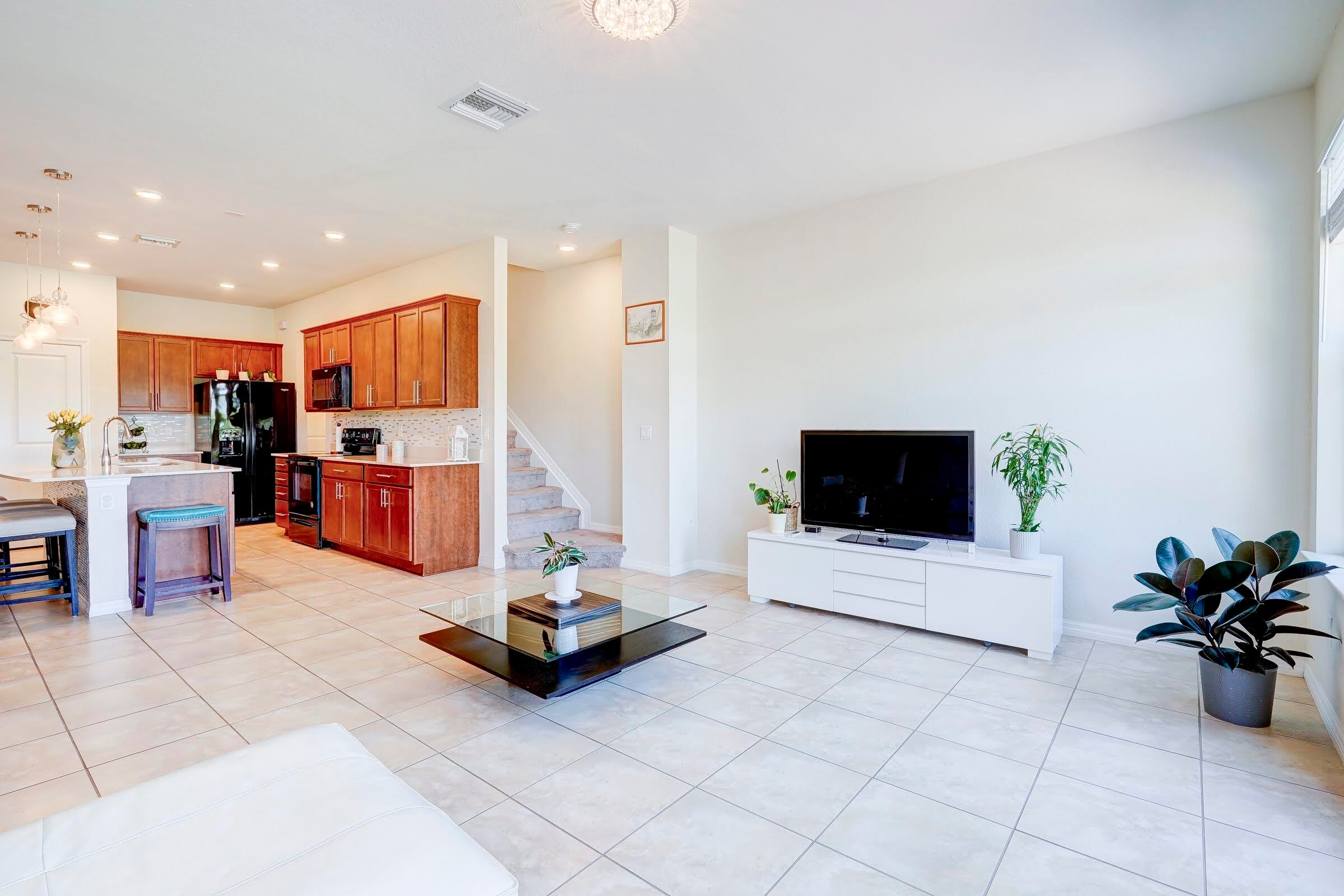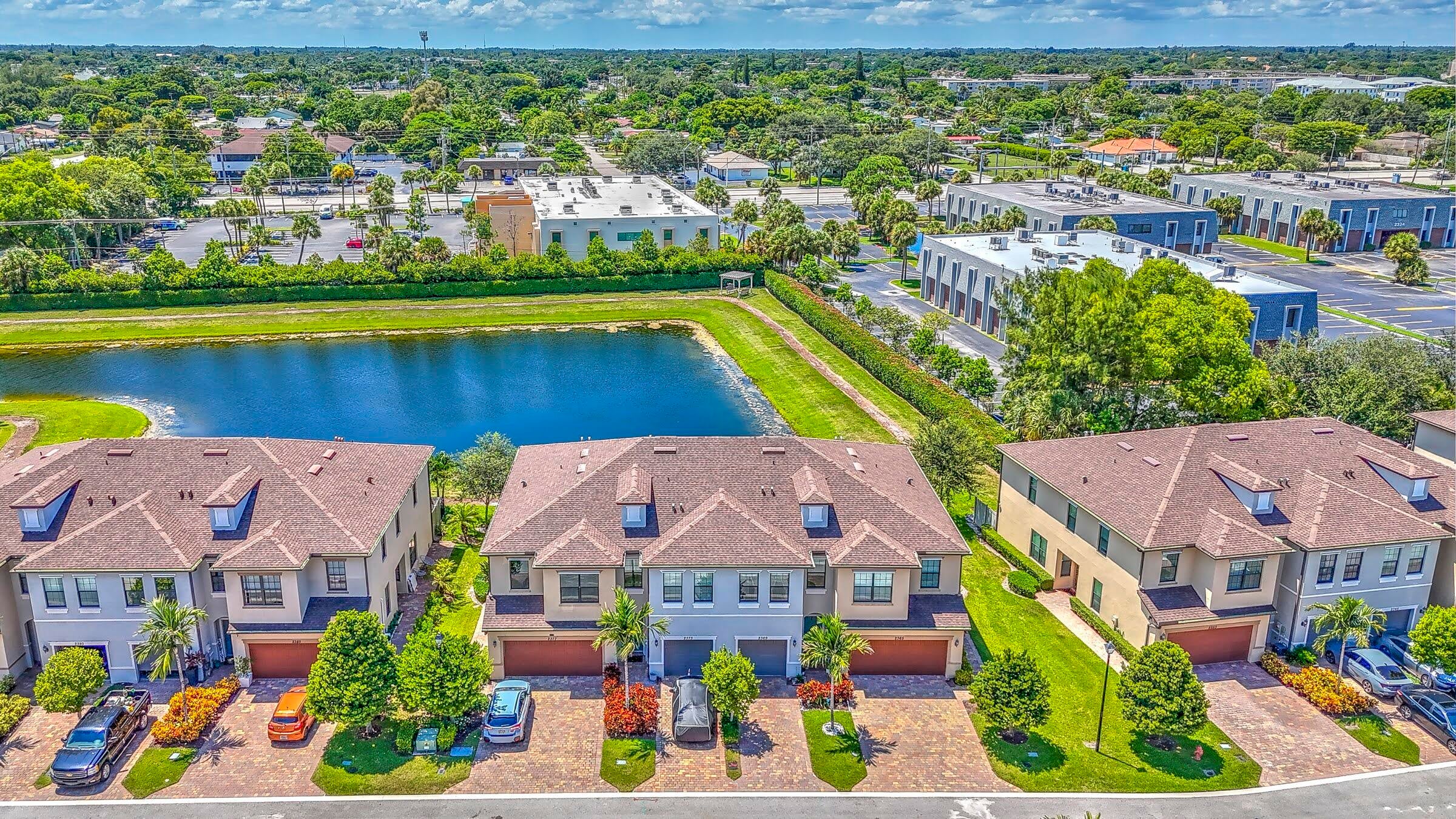 Lakefront 2019 build in Palm Springs! Features 3BR/2.5BA with garage, open plan, big kitchen island, patio on the water, and community pool/gym/trails!Enjoy the morning coffee, lakefront, in this modern townhome featuring light and bright rooms. On the ground floor, find a convenient half bath and your dream kitchen, featuring a large island comfortably seating 4. Ample storage with a full pantry, and 36 inch upper wall cabinets with granite countertops. Upstairs, large bedrooms provide room to spread out, including a primary suite with serene water views. Enjoy the perfect community perks like the swimming pool, playground, nature trails, or fitness center. Walking distance to restaurants, Publix, GNC, Gamestop, banks, and shopping. Just 15 minutes to the beach! Welcome home!