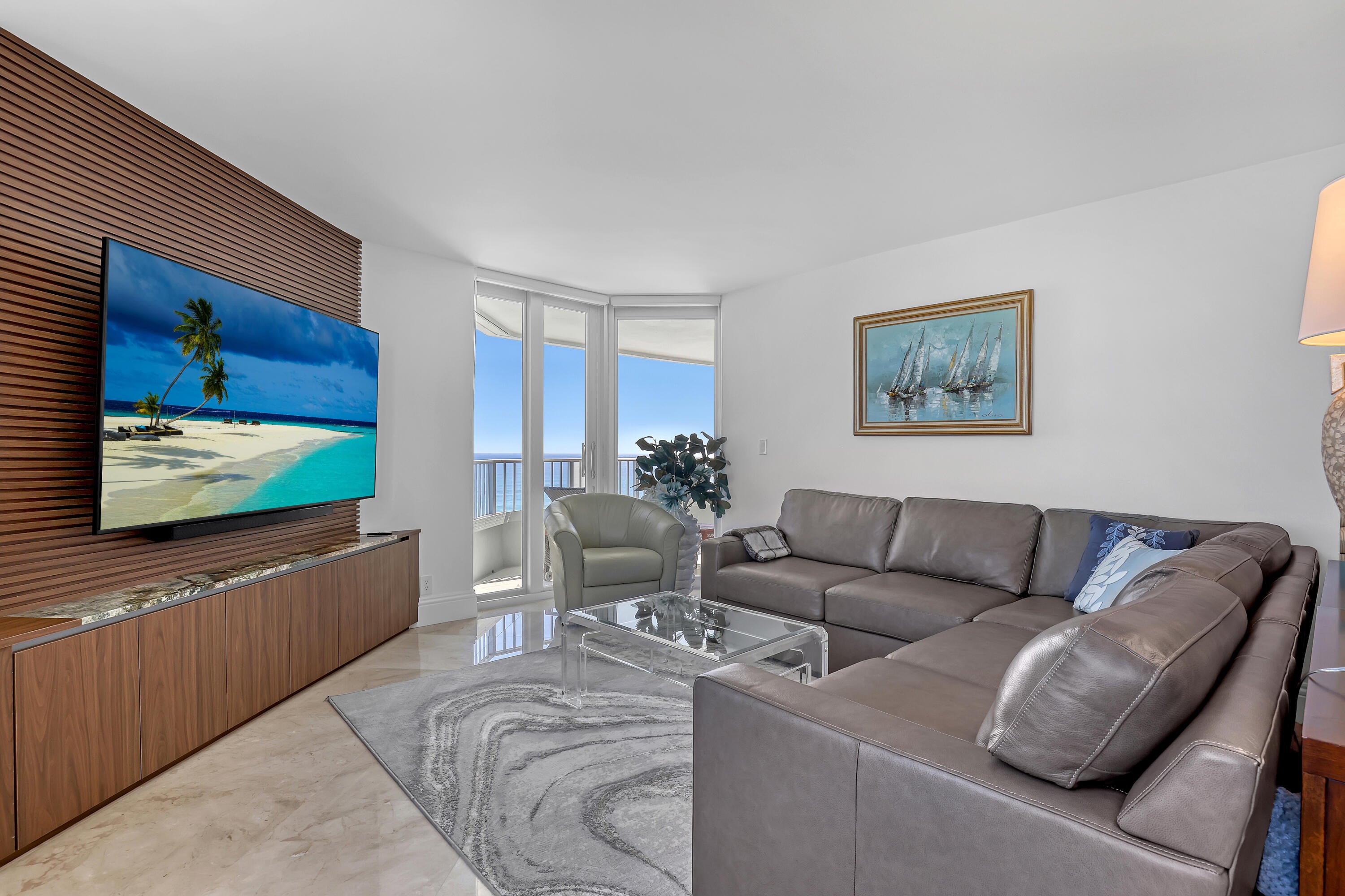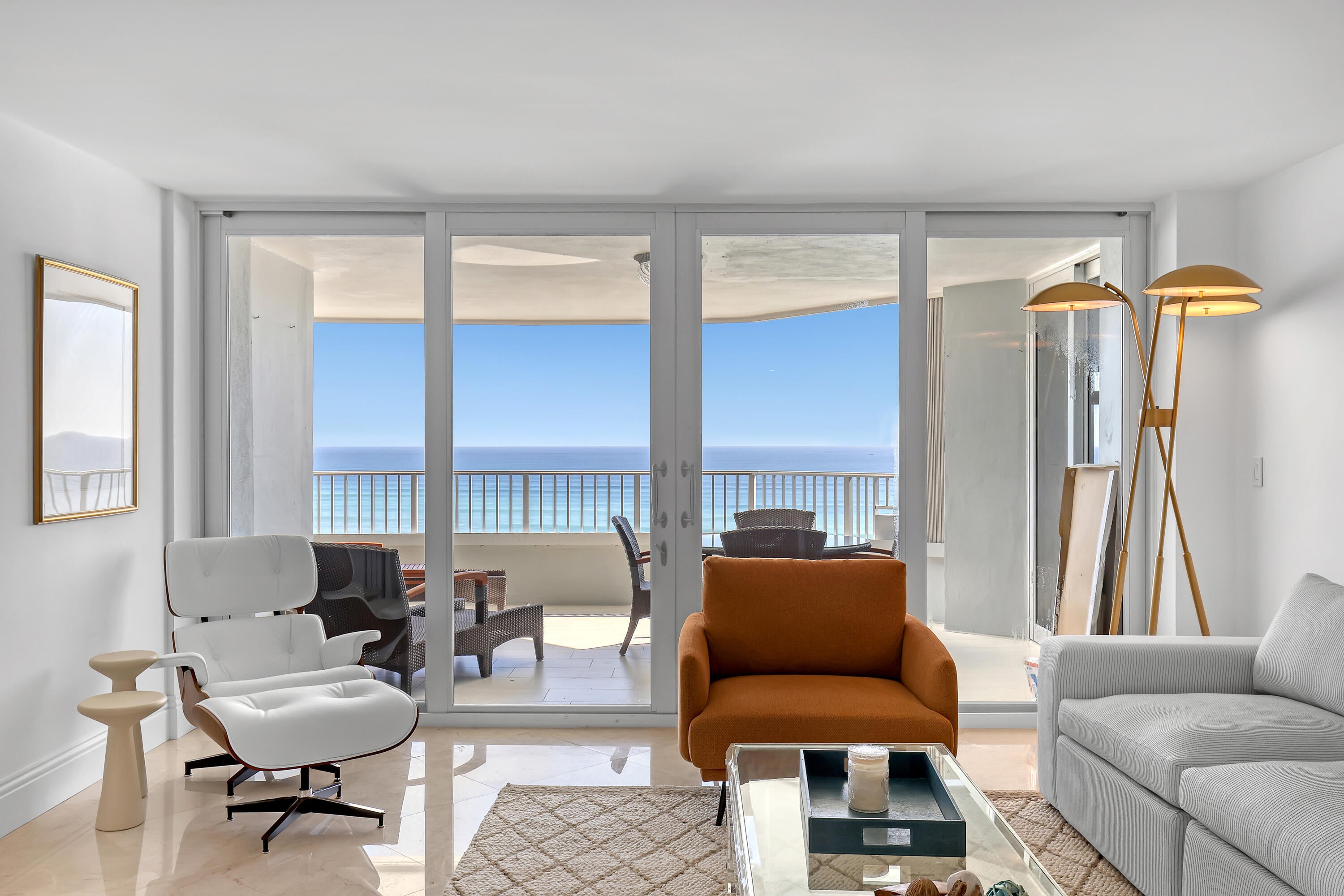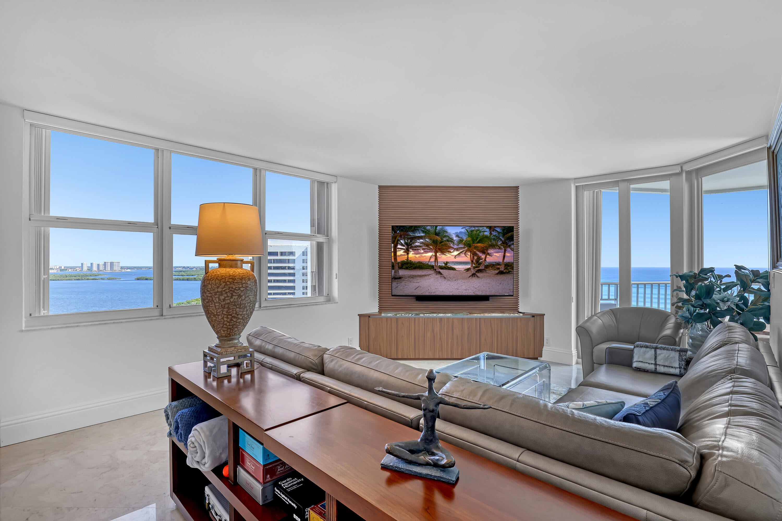 Stunning views from Ocean to intracoastal in this spacious 3BR/4BA unit. Directly on the ocean. Large cover balcony. Den has a full bathroom with murphy bed to make a fourth bedroom with privacy sliding door when needed. Bedrooms are split floor plan with each have their own bathrooms with water views. Marble floors, impact windows throughout. Beautifully furnished. Building amenities 24 hr. concierge, pool, spa, tennis court, gym, game room, 1 garage parking space.