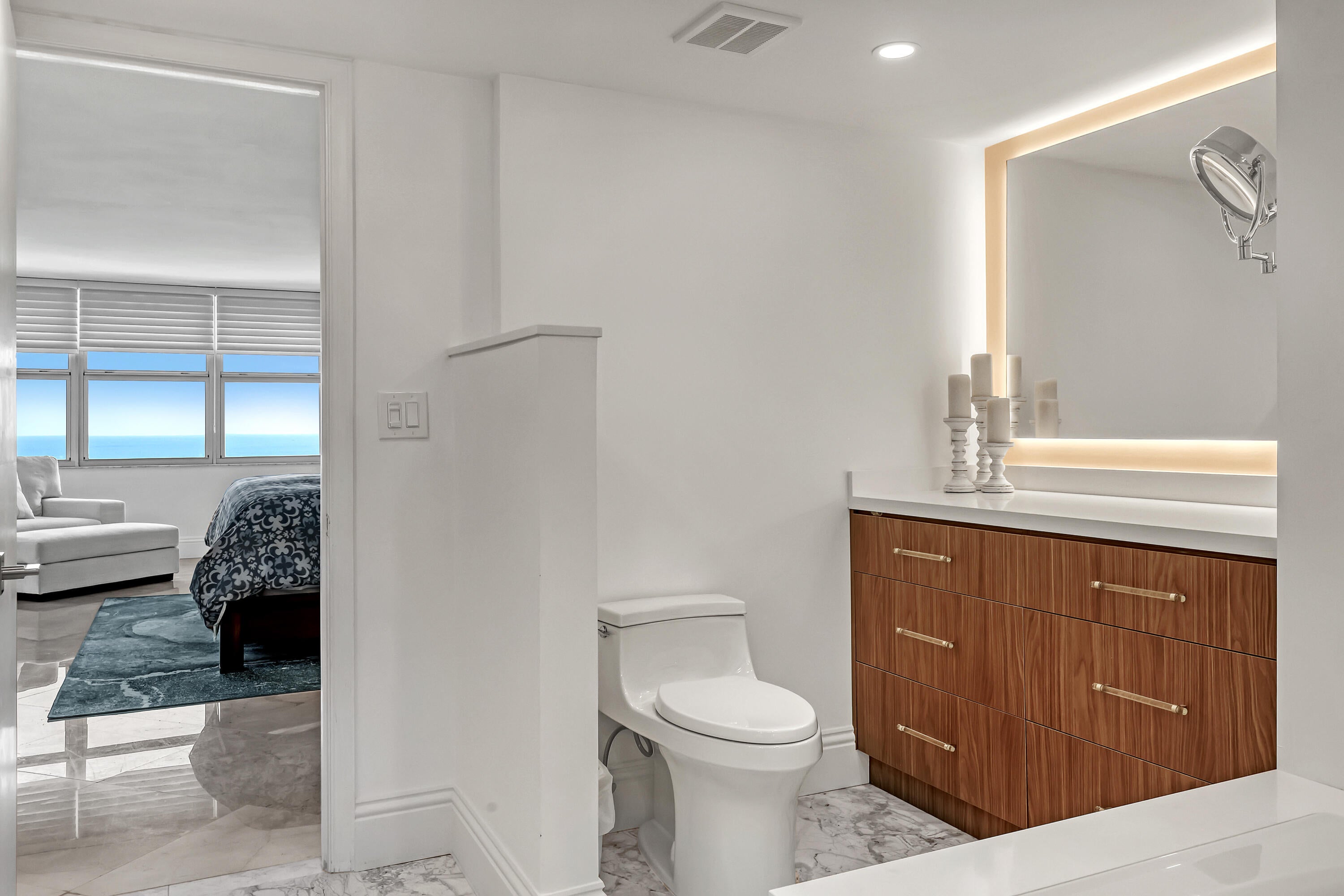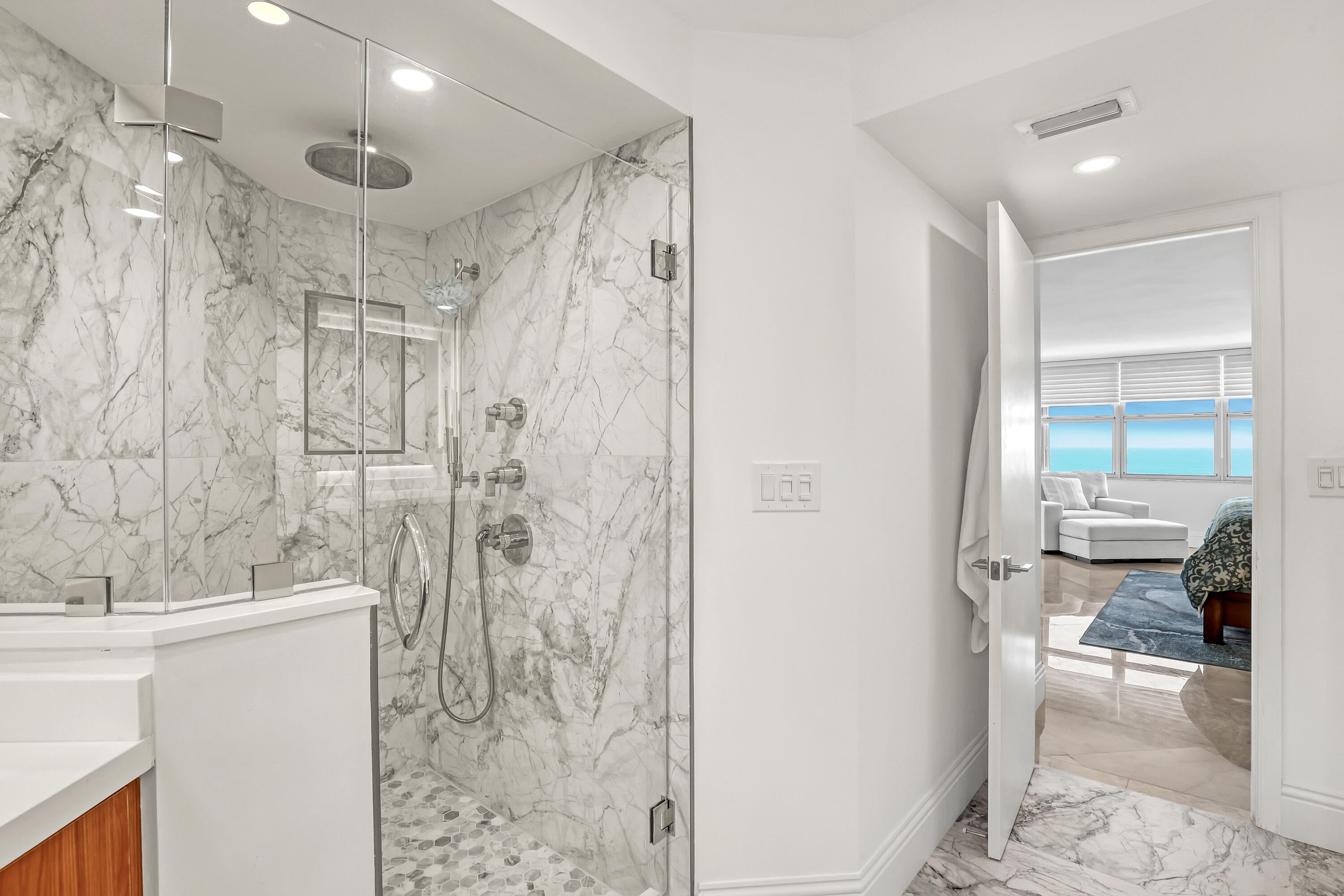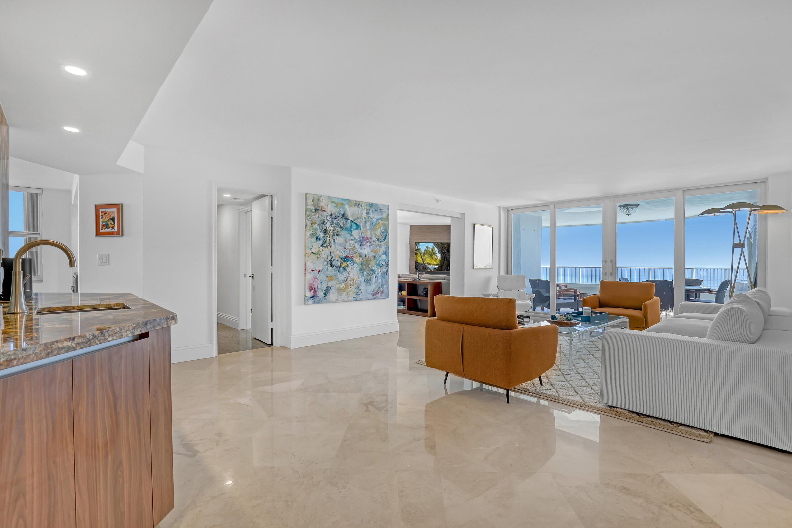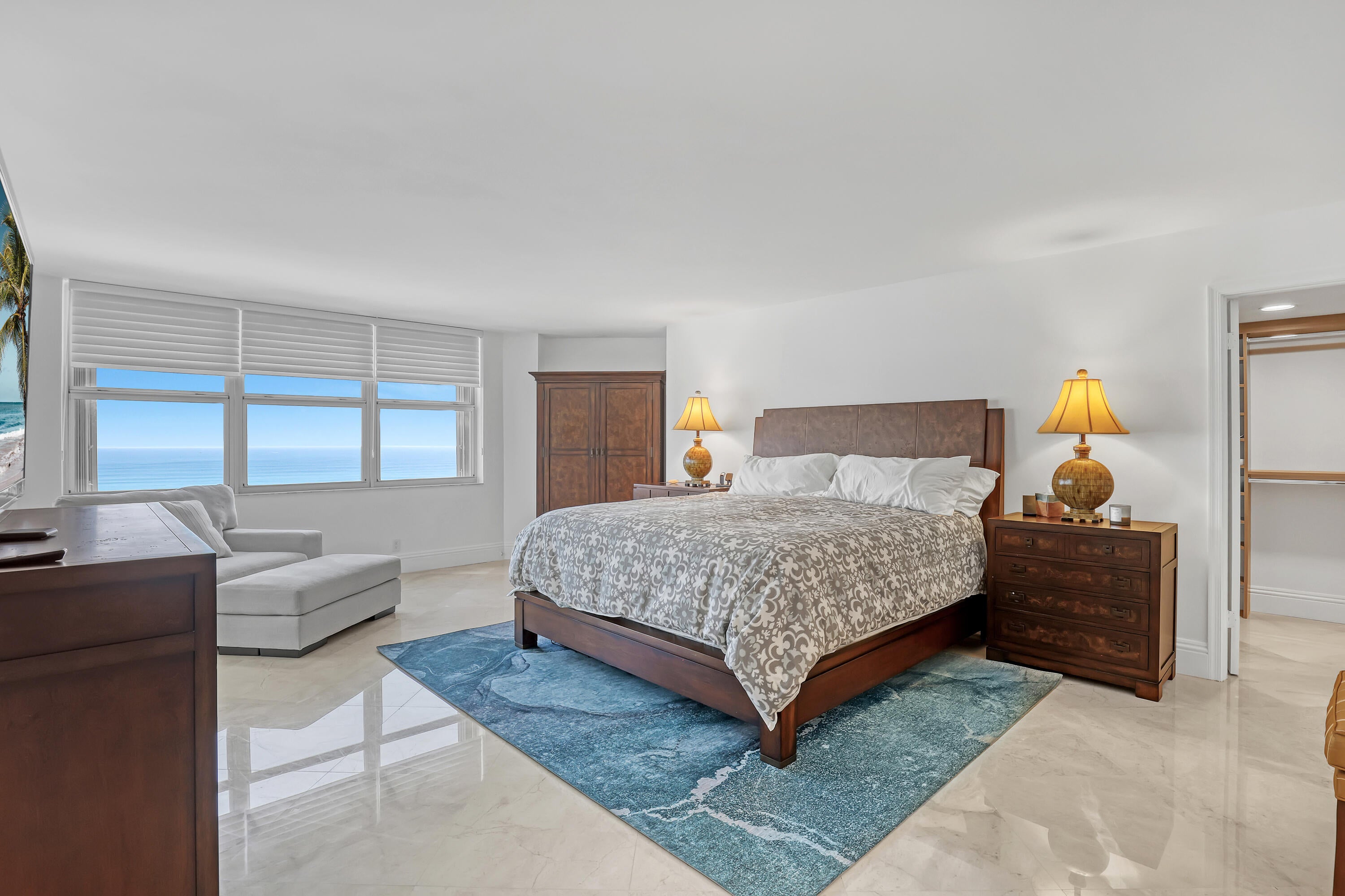 Stunning views from Ocean to intracoastal in this spacious 3BR/4BA unit. Directly on the ocean. Large cover balcony. Den has a full bathroom with murphy bed to make a fourth bedroom with privacy sliding door when needed. Bedrooms are split floor plan with each have their own bathrooms with water views. Marble floors, impact windows throughout. Beautifully furnished. Building amenities 24 hr. concierge, pool, spa, tennis court, gym, game room, 1 garage parking space.