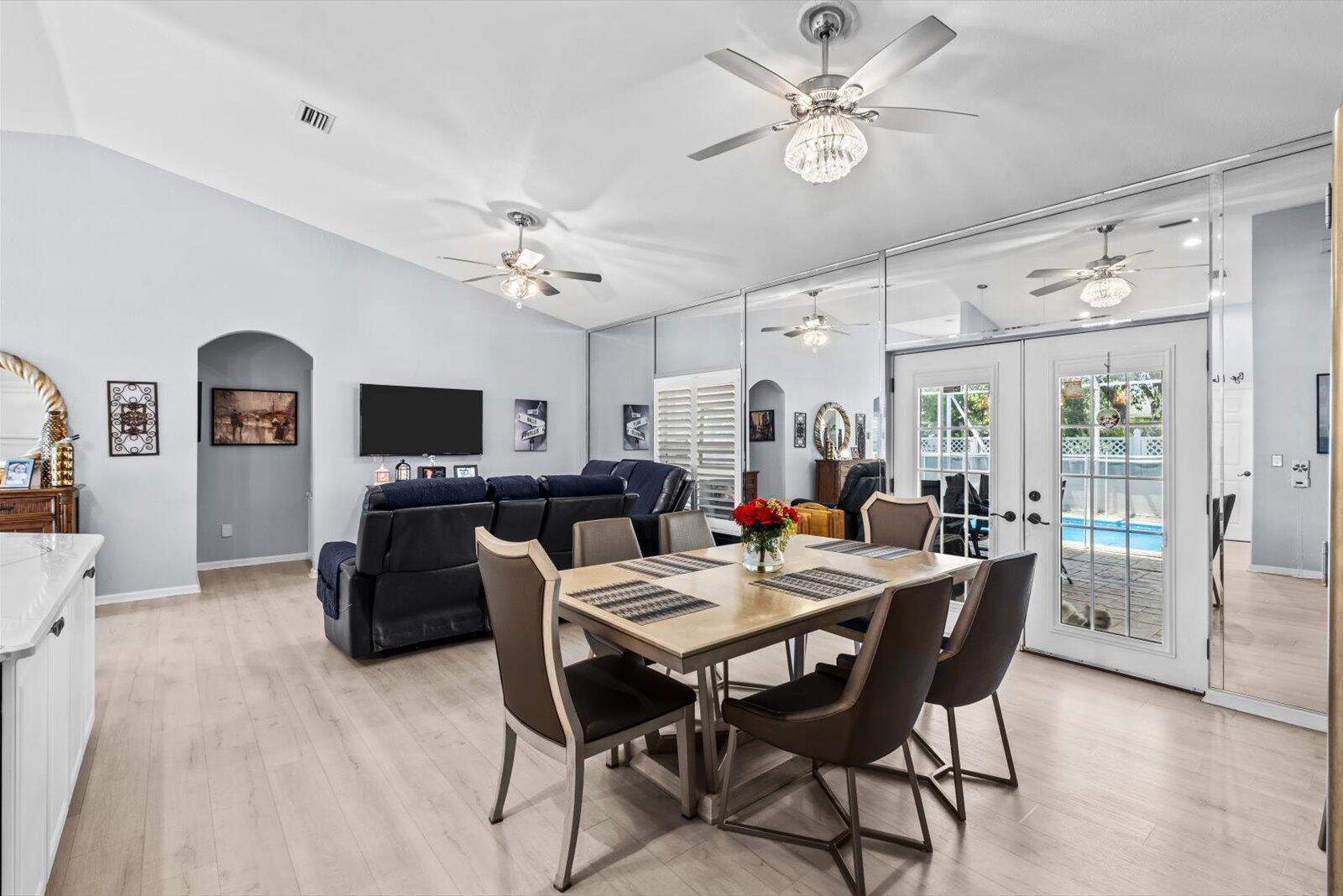 Welcome to this beautifully upgraded 3BR/2BA, 2,043 sq ft home with 2-car garage. Enjoy peace of mind with a new roof (2023), new A/C (2025), remodeled kitchen & baths with an oversized sink, newer deluxe waterproof vinyl flooring throughout, accordion storm shutters, and elegant plantation shutters inside. Step outside to your own tropical backyard oasis with a private pool (2025), pool cage, new pump & filter, new solar panels (2025), updated sprinklers (2023), exterior spotlights, and a storage shed. House is pre-plumbed for generator connection, camera & alarm systems, water softener (2023), instant hot water, and a mini A/C in the garage. An oversized attic provides extra storage. Centrally located near all the great Tradition restaurants & close to the Turnpike & I-95.