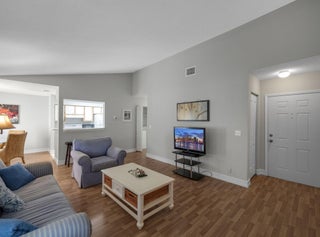 Spacious 2BR/2BA condo on the 2nd floor with high ceilings, natural light, and no rear neighbors or upstairs units. Features laminate wood floors (no carpet), separate dining area, oversized living room, full-size washer/dryer, newer A/C & water heater, plenty of storage, and primary suite with walk-in closet. Large screened balcony offers peaceful garden views. Furniture negotiable--available furnished or unfurnished. Casablanca Isles amenities include a heated pool, tennis, and a fitness center. Conveniently located near shopping, dining, medical facilities, I-95, Turnpike, golf, parks, and beaches.