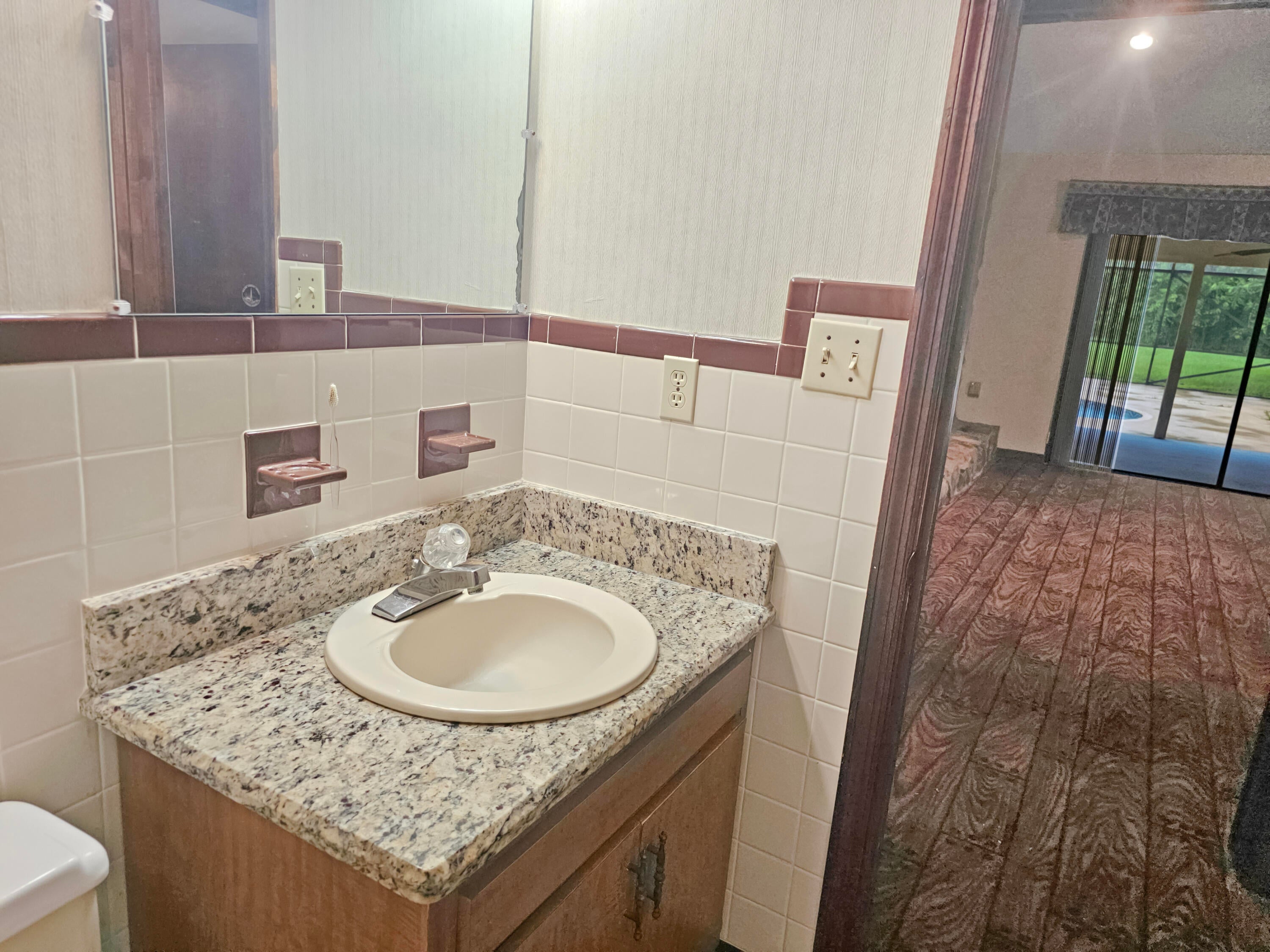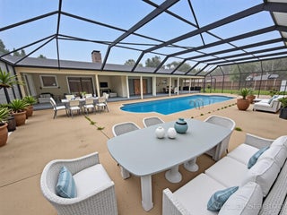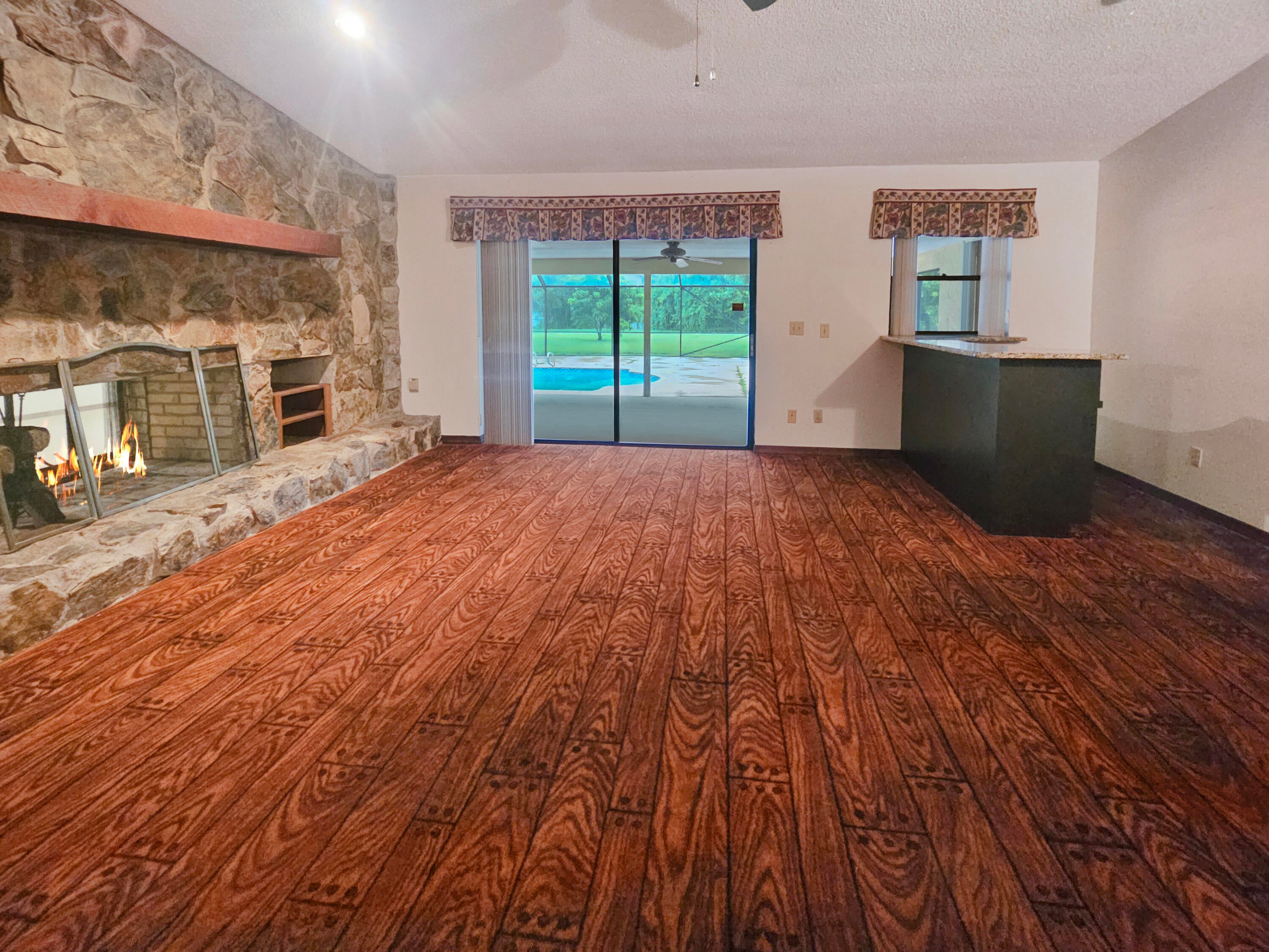 Your Private Paradise Awaits in Titusville! 1+ Acre HUGE Pool City Water!Some photos VIRTUALLY STAGED. Well-loved and well-maintained home with accordion hurricane shutters, 2017 roof & A/C. Expansive layout, HUGE pool & pool deck, HUGE raised patio & pass-through bar-an entertainer's dream on 1 acre in Titusville! Fully fenced yard with powered shed & fruit trees. Granite kitchen, oversized office/game room. Close to shopping, dining, medical & Kennedy Space Center. ***Move-in ready*** THIS HOME HAS CITY WATER, A UNIQUE AND VALUABLE FEATURE FOR THIS AREA, and fire hydrants on each side of the property. The rooms in the rear of the home have windows allowing you to know what's happening in the pool area at all times. Note the door closing off the 2 middle bedrooms for privacy!Elegant 2 sided fireplace, French Doors and pass through kitchen to dining room and bar to pool area make this the perfect home for entertaining. Schedule your showing today!