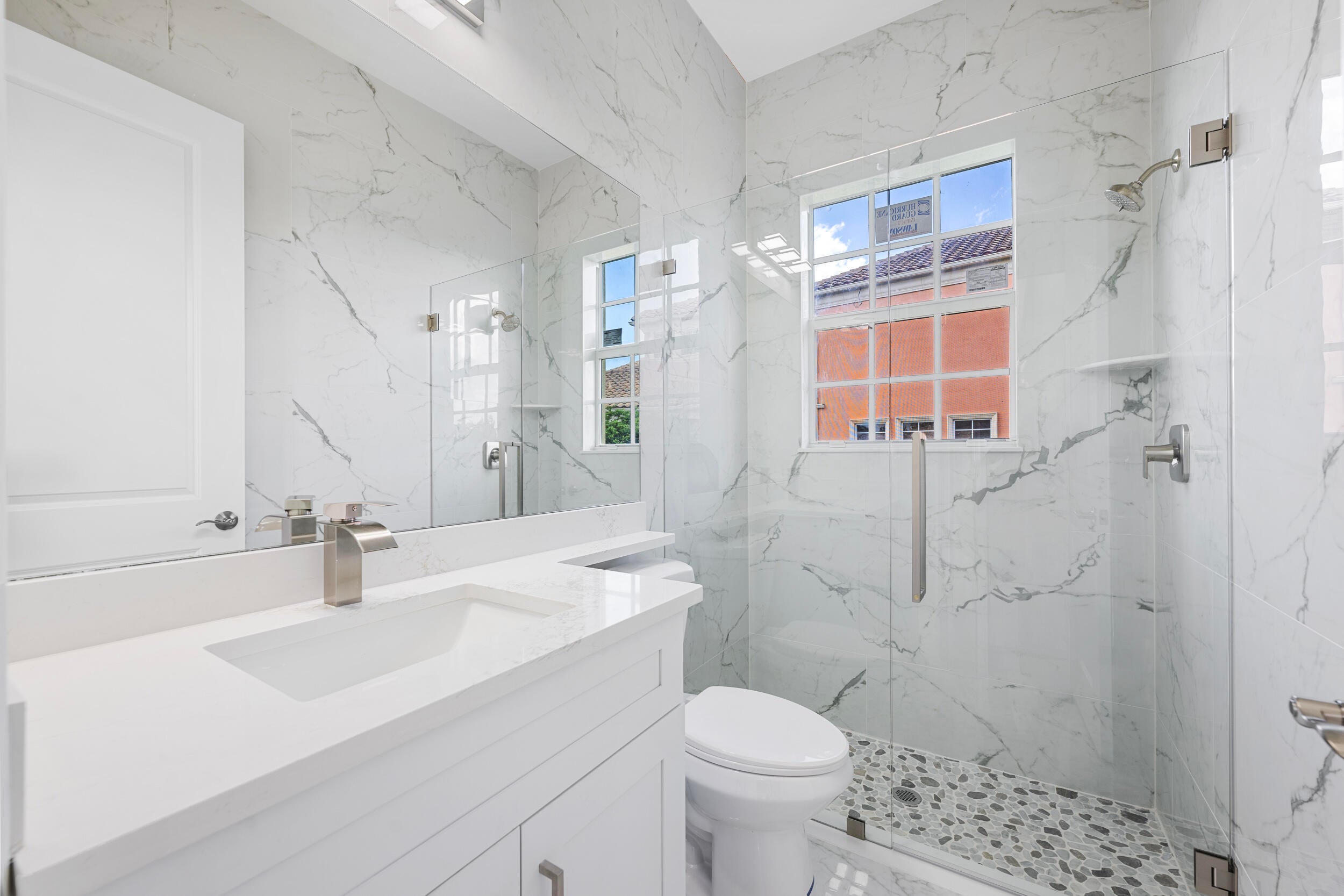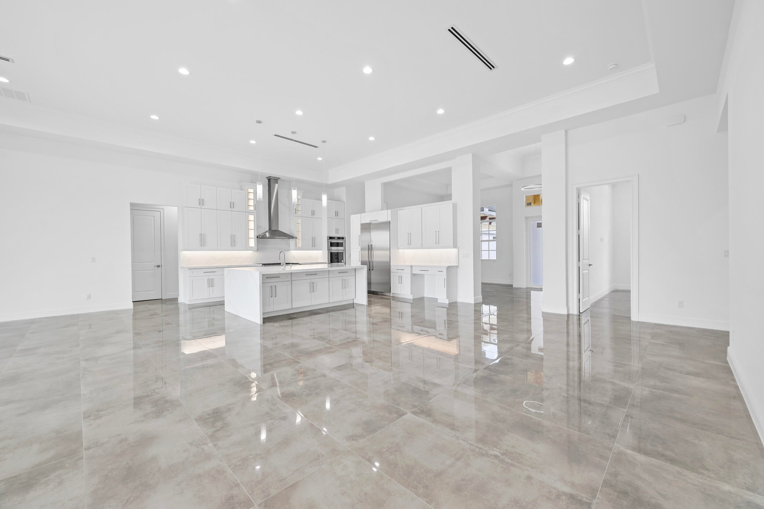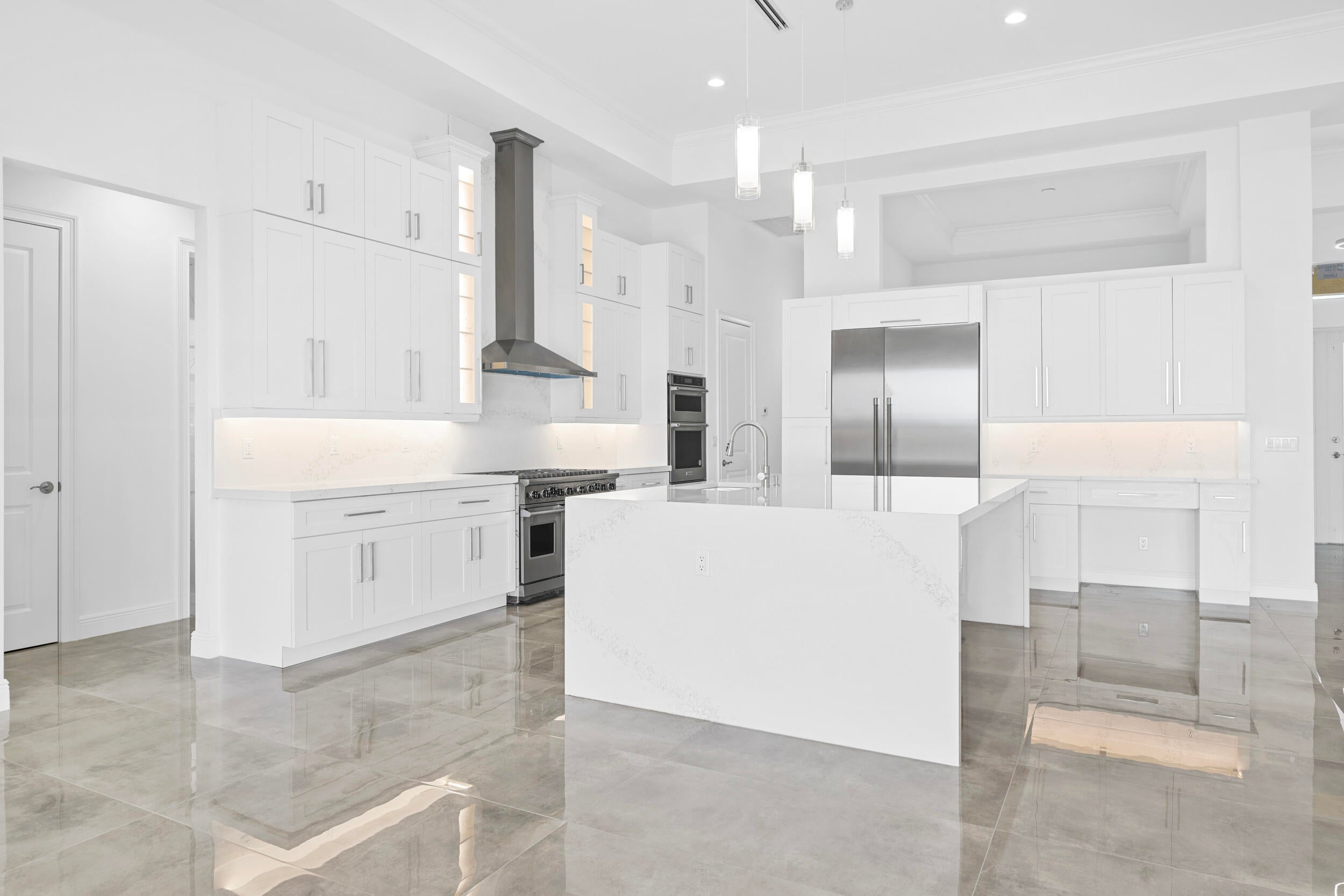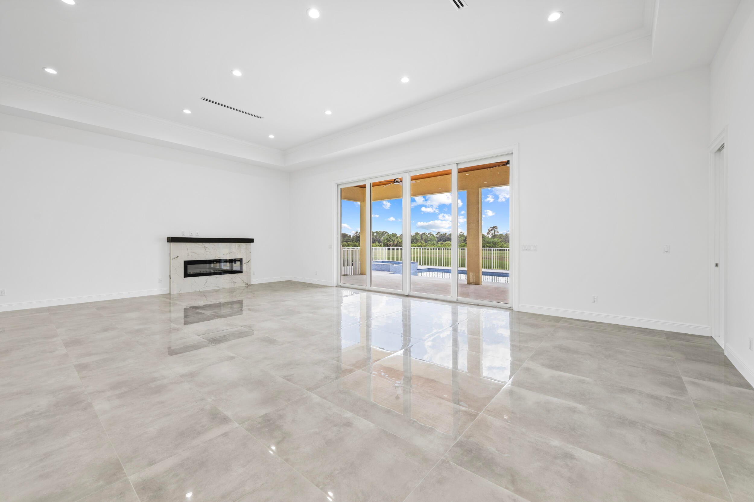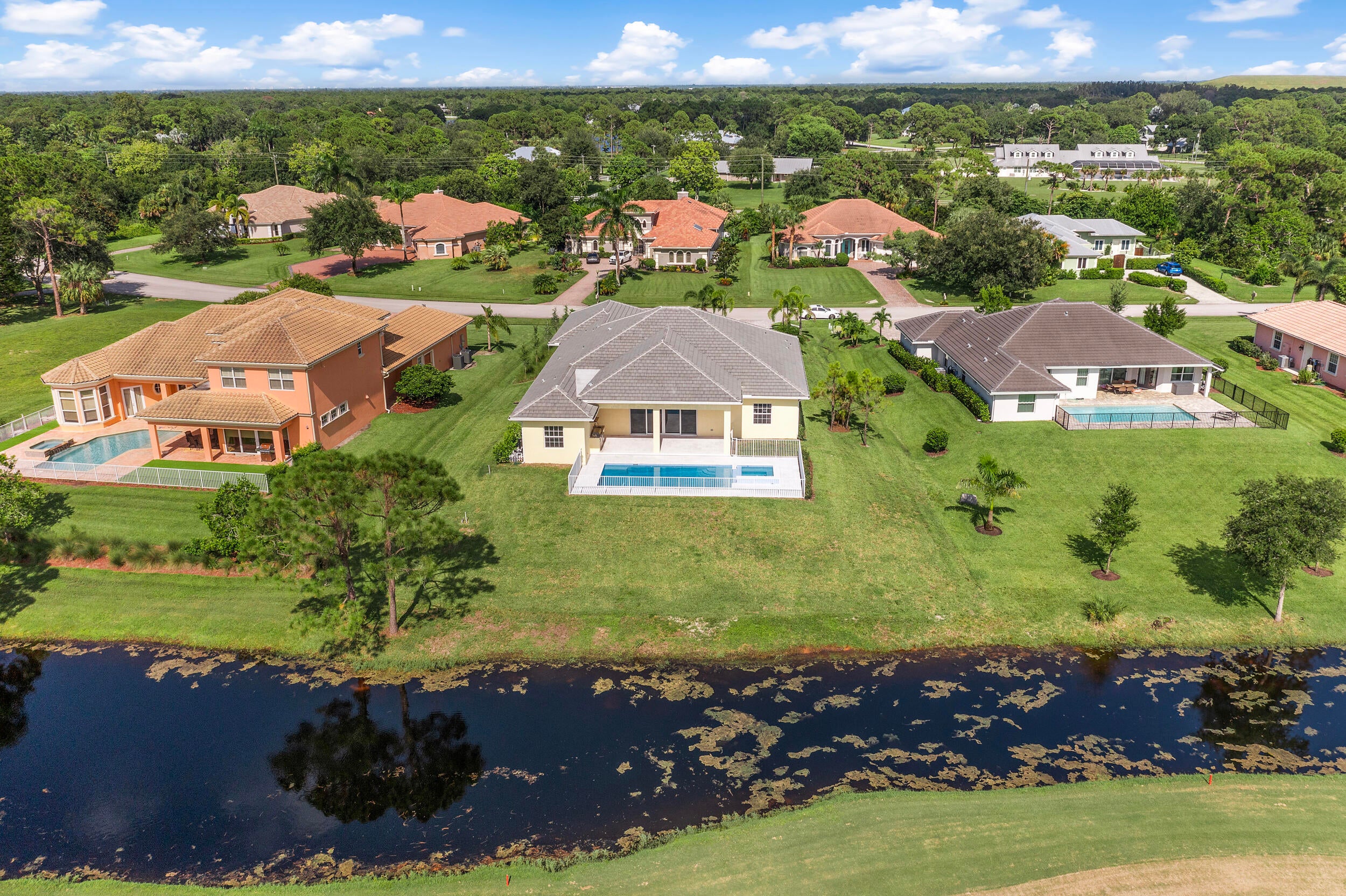 Brand-new modern estate in Palm City's prestigious Cobblestone community, overlooking the recently renovated Cape Club golf course. This home sits on a half-acre lot with low HOA fees and was designed for both elegance and comfort. Featuring soaring 10-14 ft. ceilings, crown molding, upgraded tile throughout, and a bright open-concept layout. The chef's kitchen boasts a large island and premium appliances, while the split plan includes a private guest suite off the pool. Enjoy the ultimate Florida lifestyle with a spacious outdoor living area, summer kitchen, and resort-style pool with raised spa, all capturing panoramic golf course views. Don't miss this rare opportunity to own New Construction in a gated golf course community!