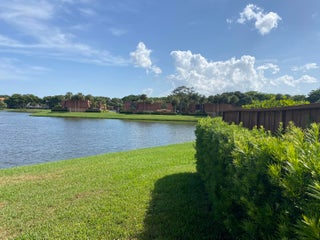 Lake view! Lake view! Lake view! Best lot in the neighborhood. Lake views from every window!!! This well cared for, original owner home boasts large ceramic tiles on the diagonal on the 1st floor, complete accordion shutters & a new roof & water heater. Your private courtyard has a complete 180 degree view of the wide lake. 2 MASTER SUITES! The seller can provide a $5,000 concession towards your CLOSING COSTS or NEW APPLIANCES or NEW FLOORING! Priced to sell, this home is waiting for your private touch. Enjoy resort style amenities such as Olympic sized pool, tennis, racquetball, pickle ball, and basketball courts. Top rated schools. HOA includes insurance on the building, cable, water, sewer, yard maintenance, and roof maintenance. No assessments & 2 assigned parking spots.