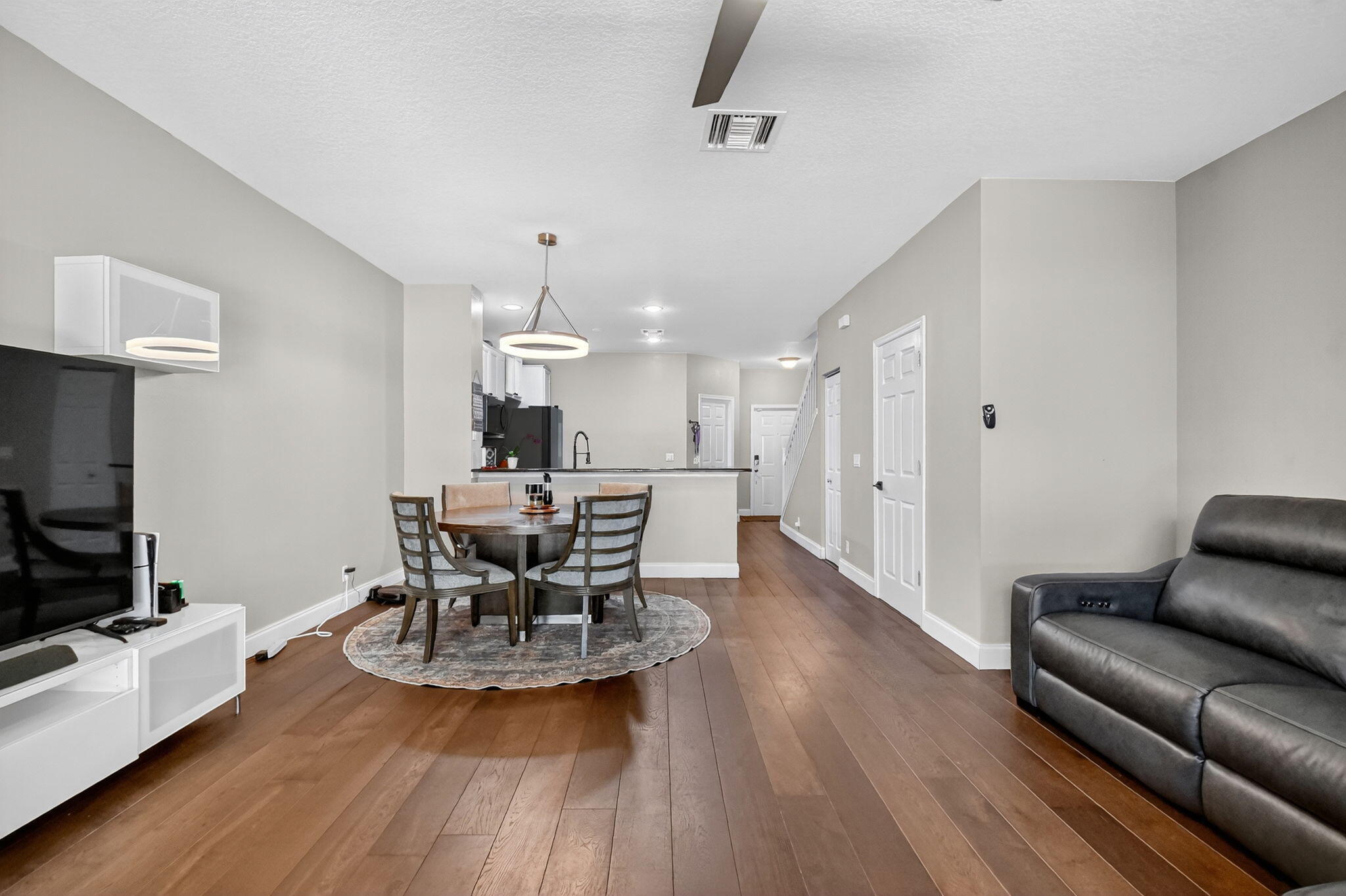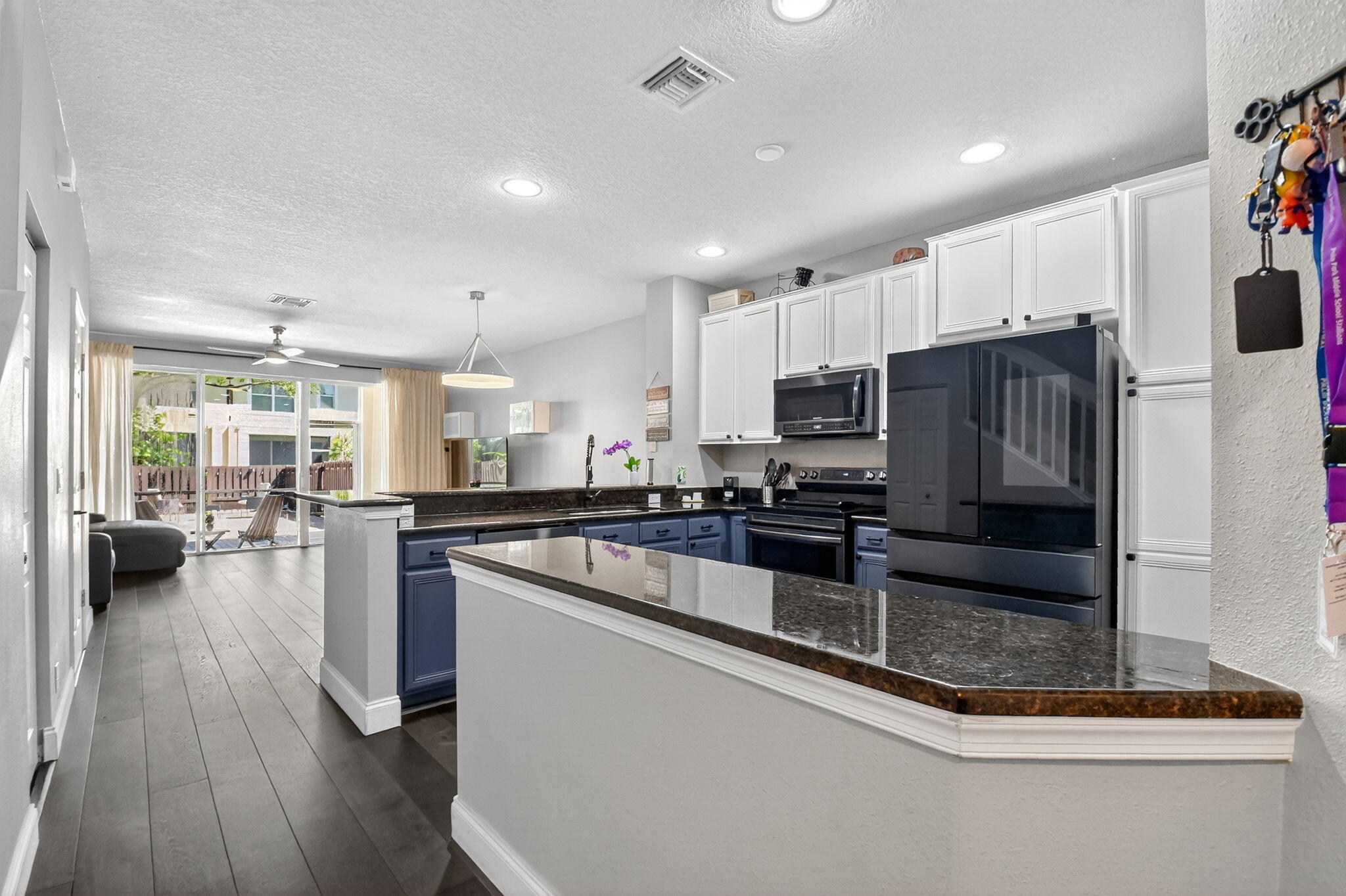 Beautifully updated townhome in the gated community of Verona Lakes. Main living areas feature gorgeous wood plank floors, a granite kitchen with two-tone cabinets, and Samsung Bespoke appliances in matte black steel. Enjoy a spacious fenced backyard with paver patio. Major updates include roof (2024), water heater (2024), washer/dryer (2023), and A/C (2021). HOA covers basic cable and common areas. The assessment for the new roof will be paid by the seller at closing and the assessment for the amenities is already paid in full. Community amenities include 2 pools, fitness center, basketball, tennis, and playground. Highly rated school district.