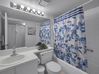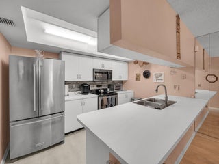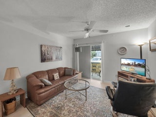 Welcome to Waterside Village of Palm Beach! This spacious first-floor 2-bedroom, 2-bathroom home plus den offers comfort and convenience with a host of updates, all within a nice gated community. Enjoy brand-new laminate flooring, stainless steel appliances, including a new dishwasher and refrigerator, and updated bathrooms. The primary suite features a large closet and a walk-in shower for added ease. Additional highlights include a stackable washer and dryer, ceiling fans ,extra storage space, and hideaway screws on the front door for added security. Relax on the covered, tiled patio or step inside through the tiled entryway. With a 5-year-old A/C system, this home is move-in ready and waiting for you!