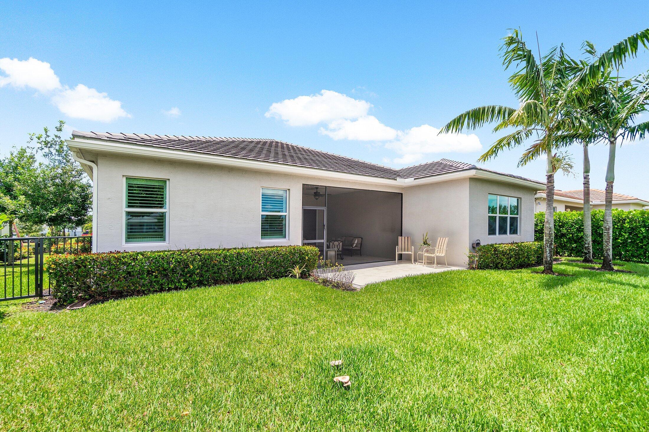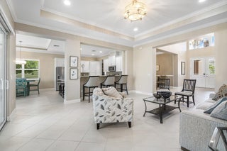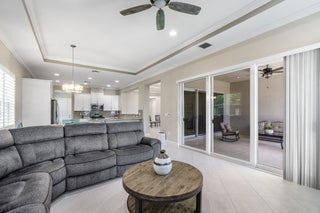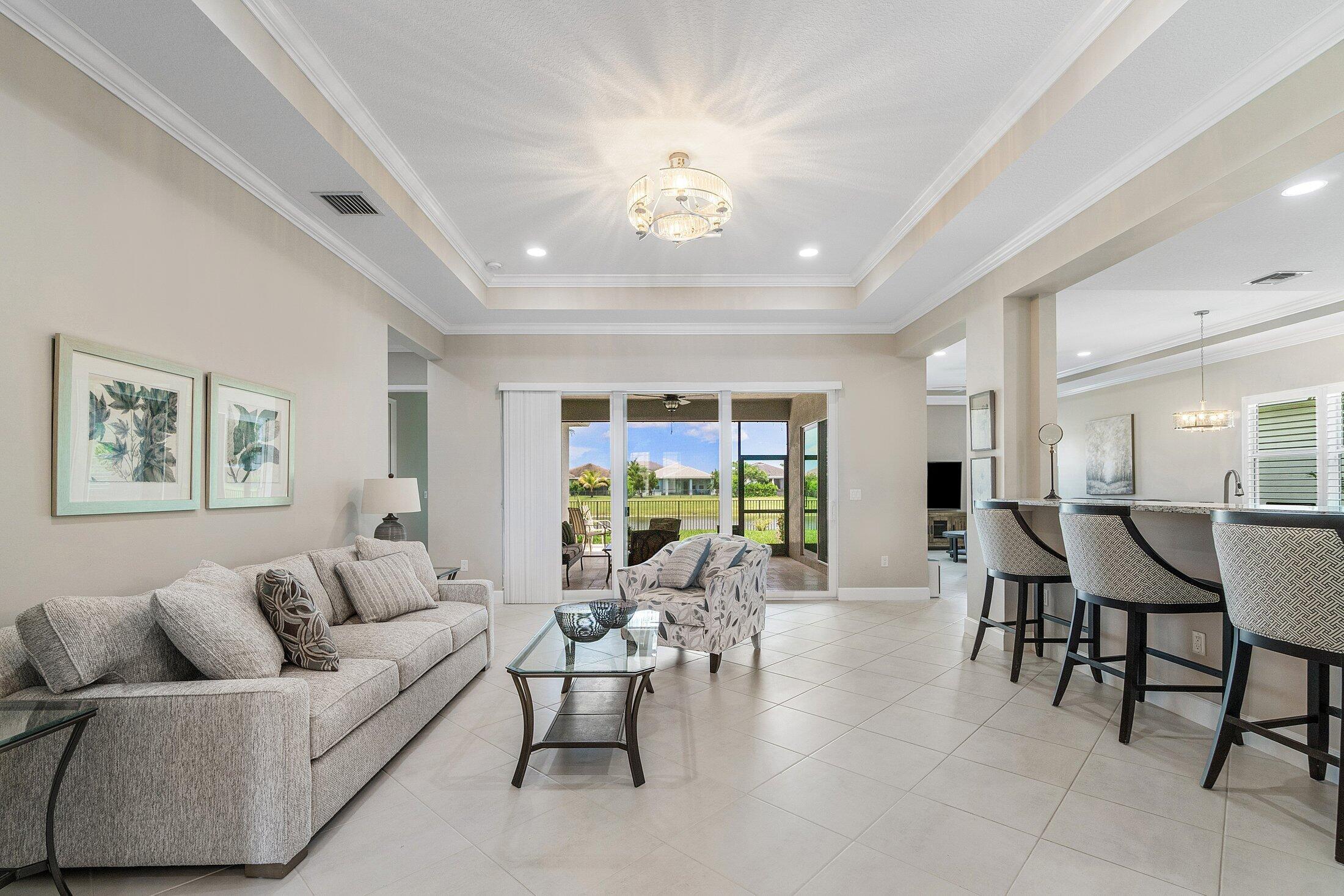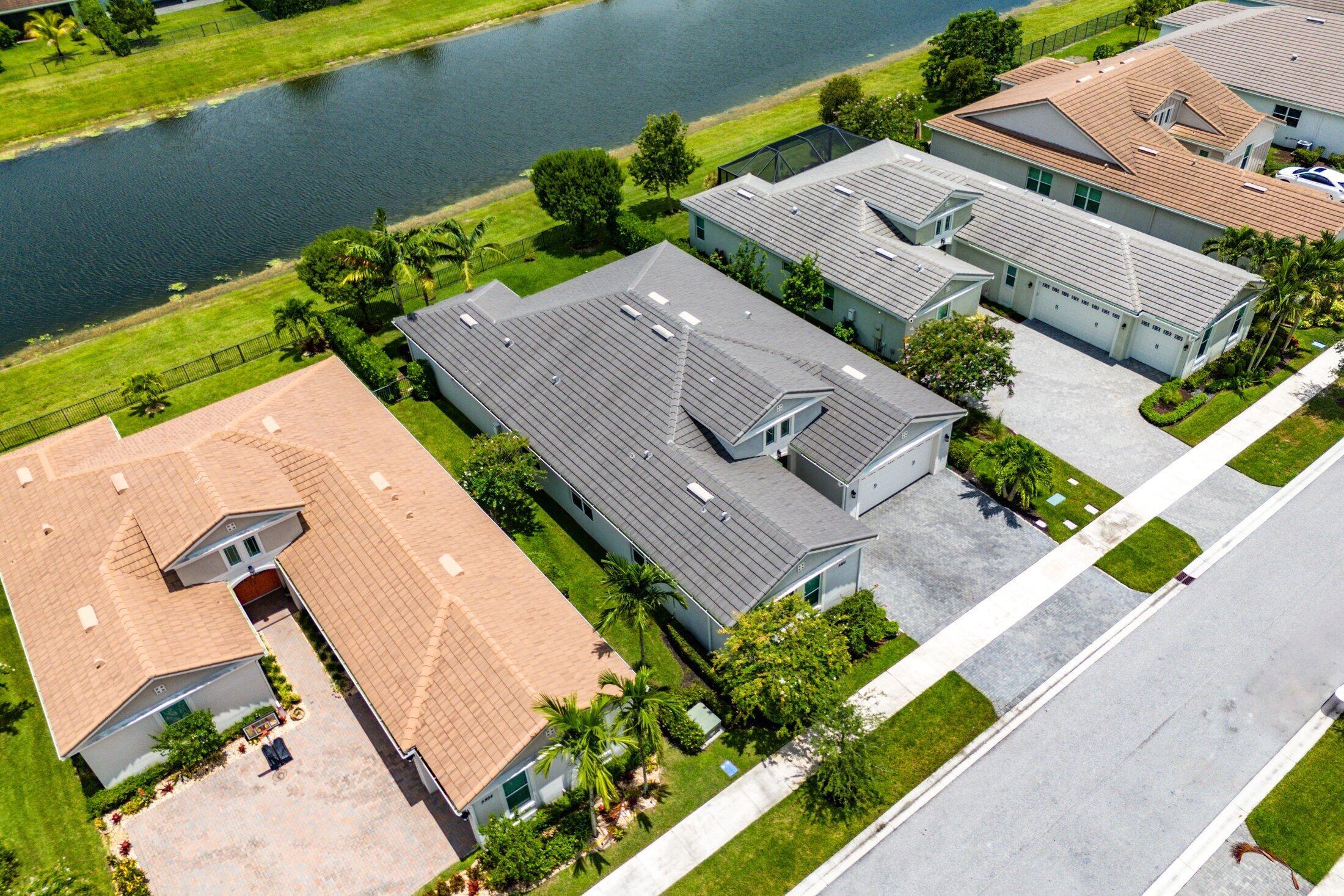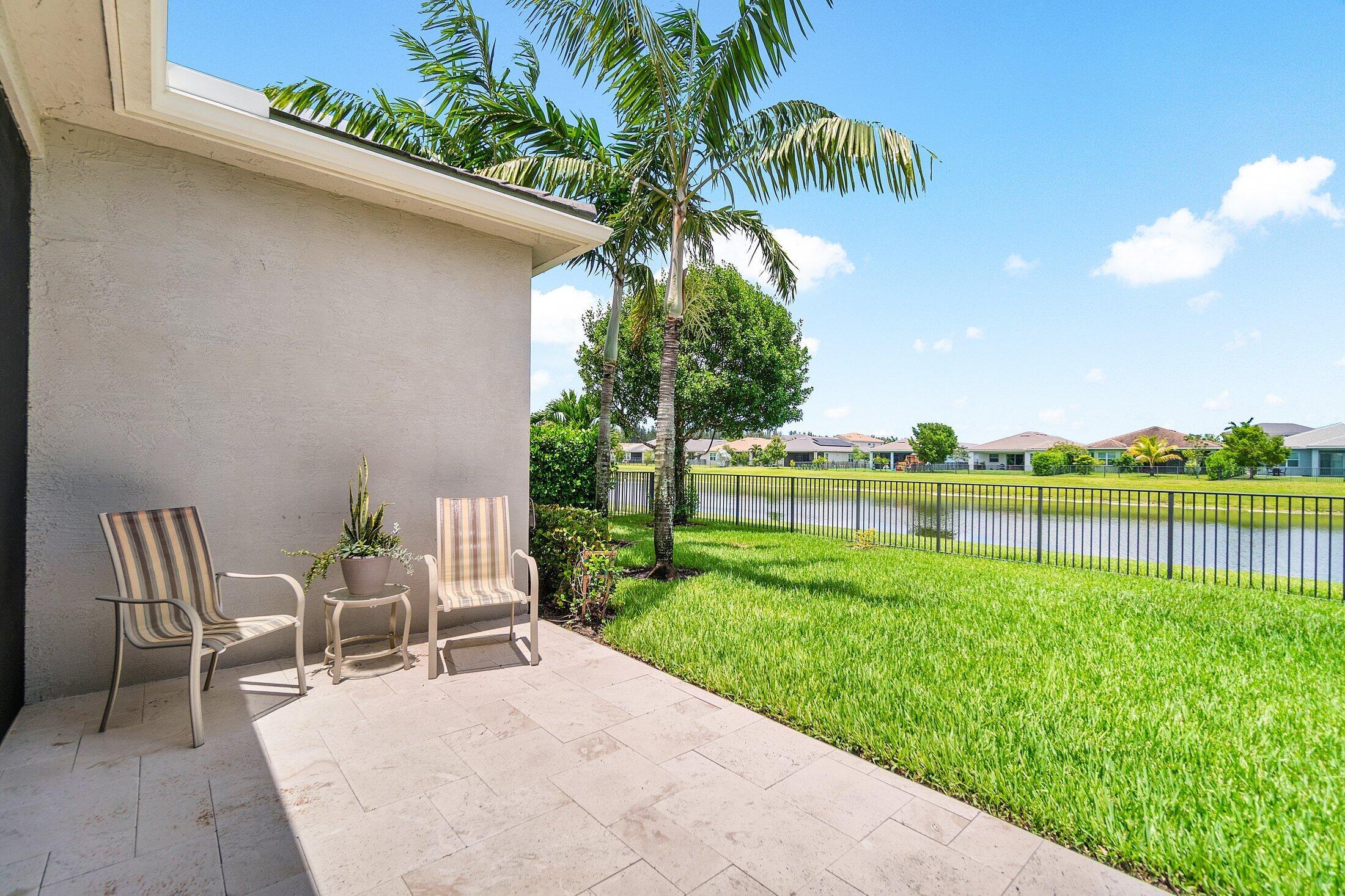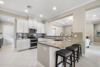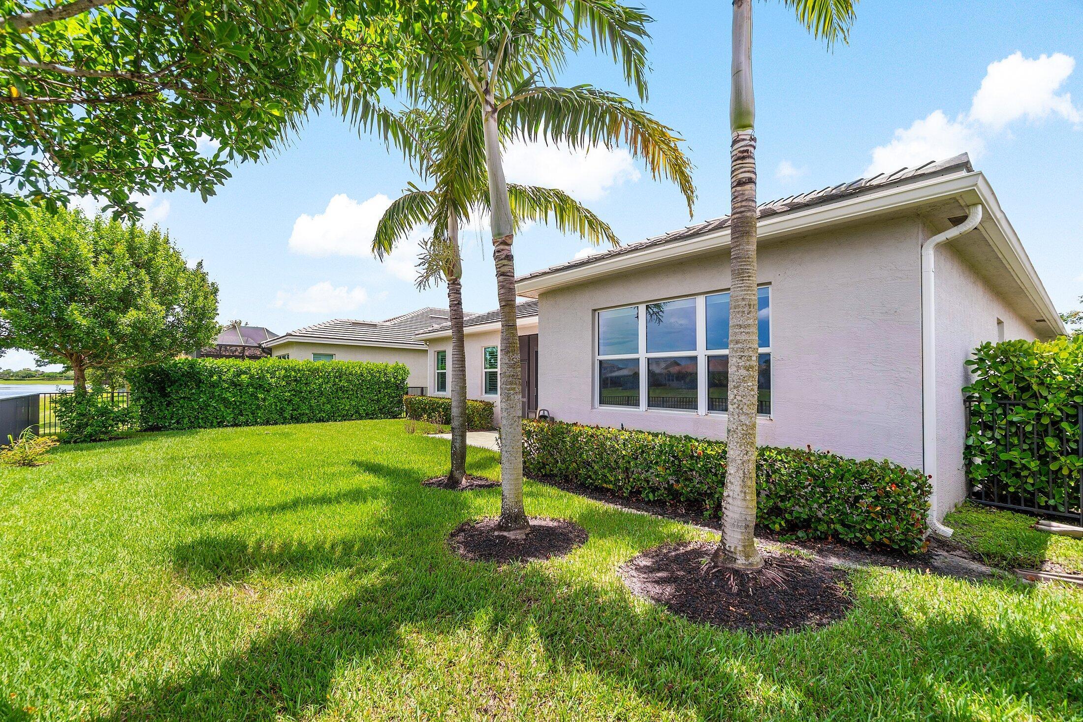 Save time and money with a move-in ready home boasting over $30,000 in valuable upgrades including an oversized driveway, epoxy garage floors, plantation shutters and motorized blinds, custom built-in cabinets and closets, plus a screened travertine porch. Furniture negotiable! Beautifully designed CBS construction featuring 4 bedrooms, 3 bathrooms, 4th bed currently a den that can be converted back to bedroom, and a 3-car garage. An impressive foyer opens to the formal living room and adjacent dining room with a custom built-in buffet, conveniently located next to the chef's kitchen that showcases white cabinetry, stainless steel appliances, and granite countertops. The Kitchen flows into the casual dining area and family room....with stunning views of the lush landscaped yard and lake. The secluded master suite offers serene water vistas, two custom walk-in closets, and a large, well-appointed bathroom. Additional bedrooms are located off a private hallway with a den featuring a custom built-in cabinet with fridge and microwave, previously set up with a barn door for use as an in-law suite. This side of the home also includes a utility room and a dedicated one-car garage. Additional features include impact windows, custom closets throughout, extra-wide driveway, and an open patio perfect for enjoying the lakefront setting. Across the road from The Hammocks is Westlake Adventure Park, offering extensive amenities including a splash pad, lagoon pool, tower slide, lodge pool, concert pavilion, pump park, playground, basketball courts, bocce and lawn games, food truck court, snack shack, and morea true resort-style lifestyle at your doorstep!