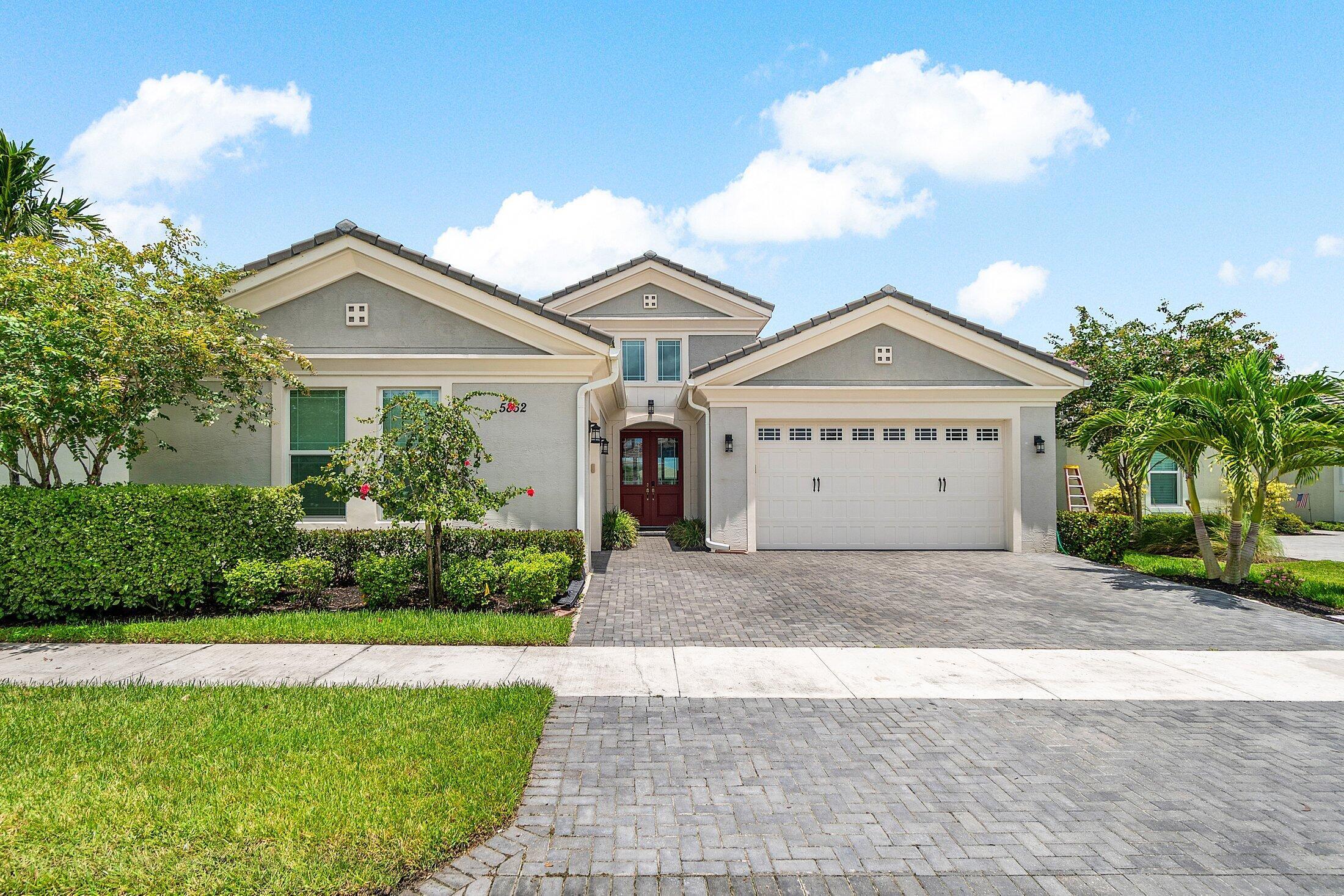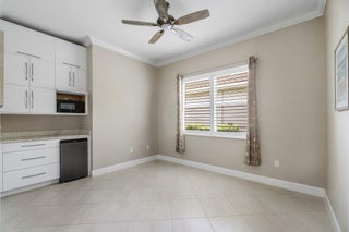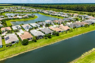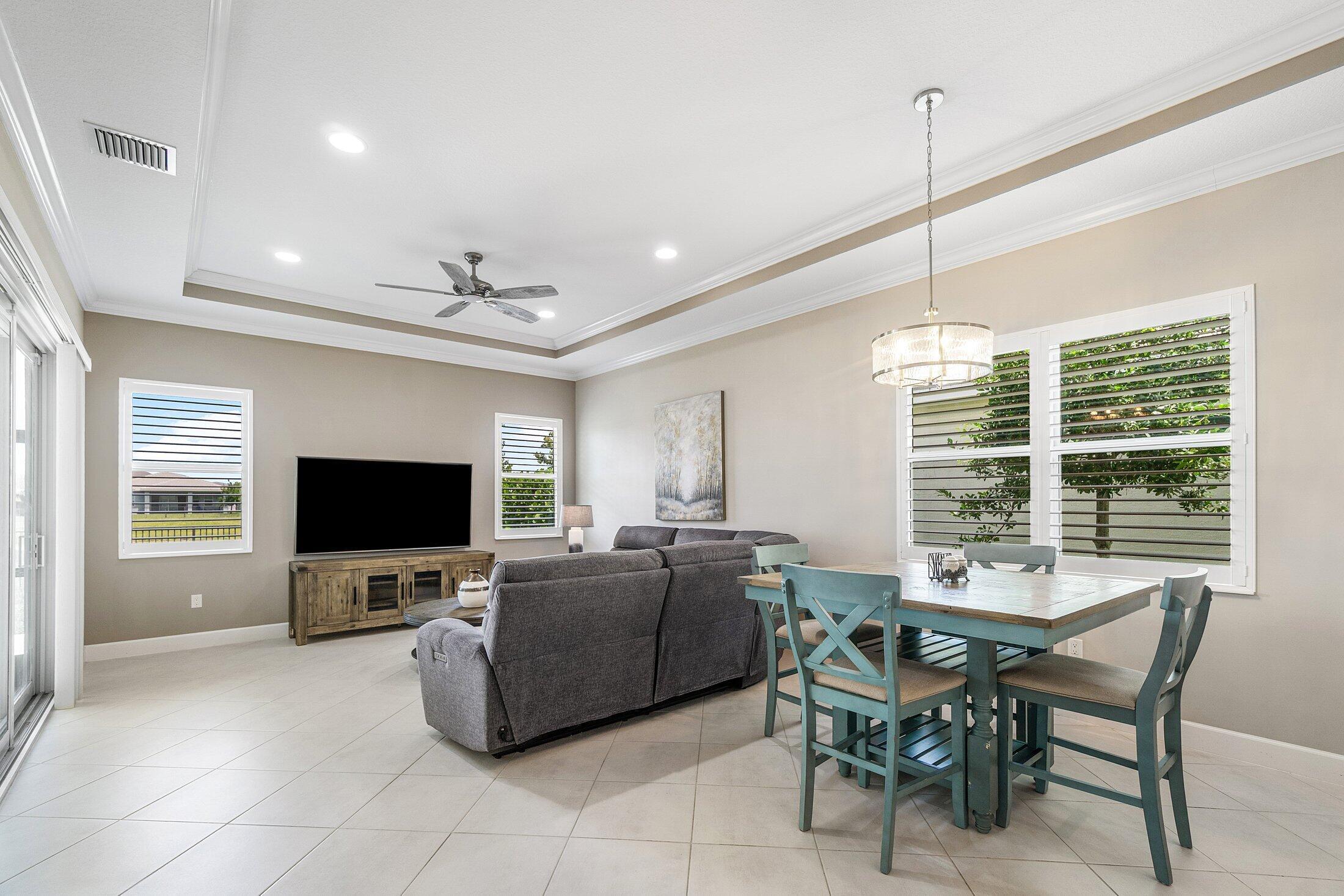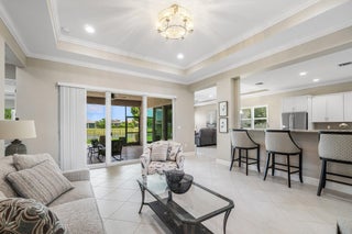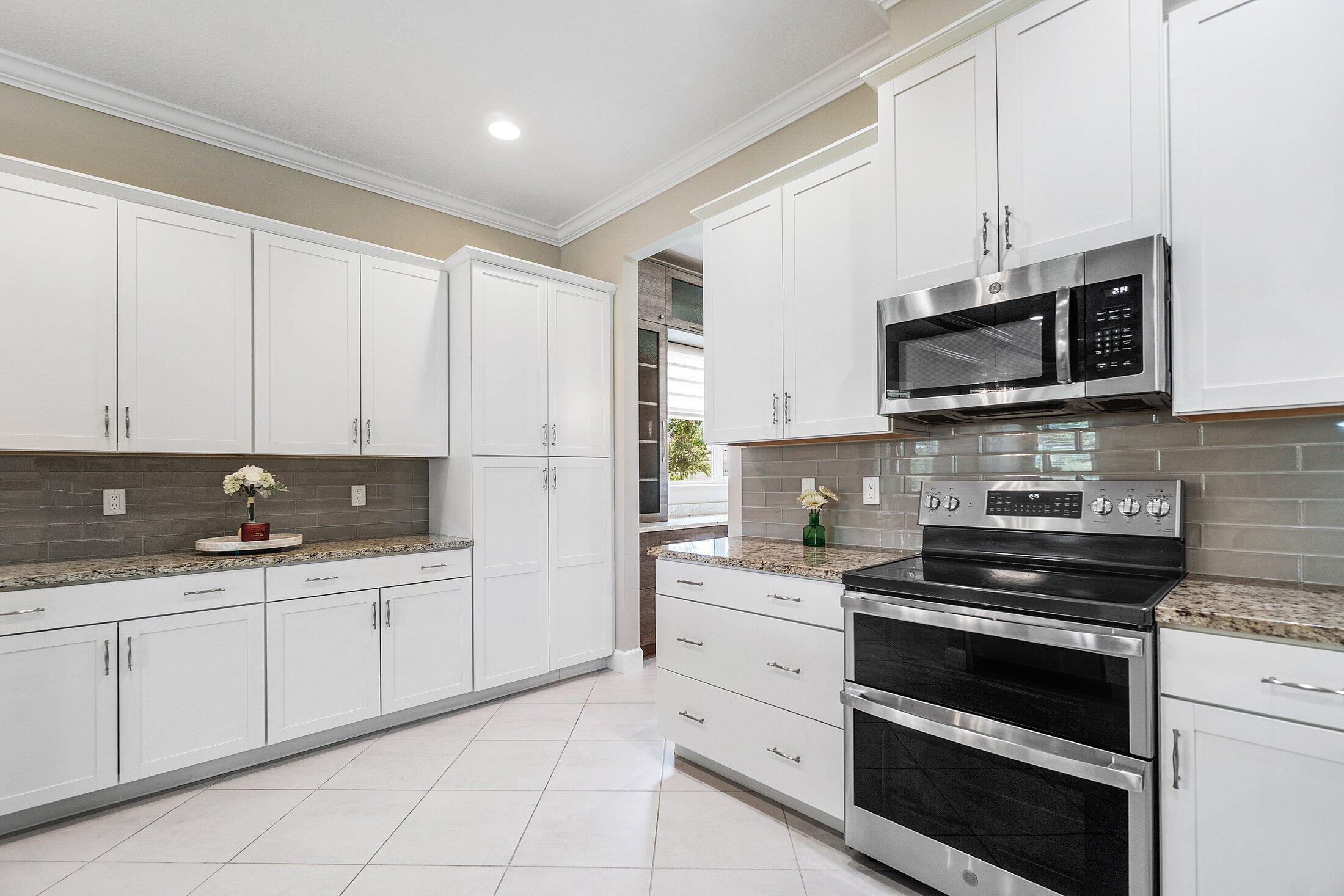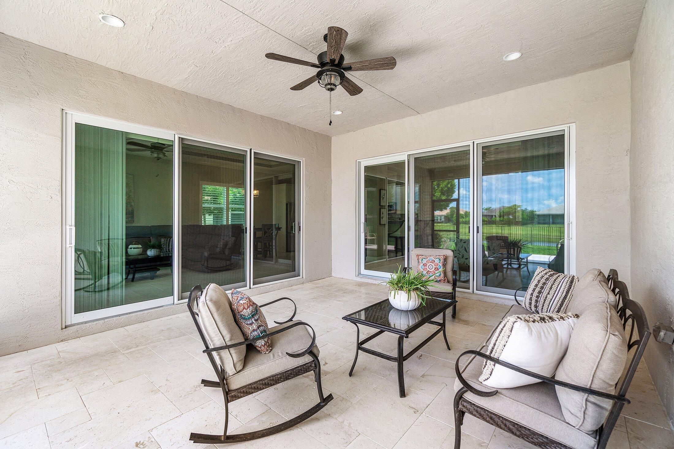Save time and money with a move-in ready home boasting over $30,000 in valuable upgrades including an oversized driveway, epoxy garage floors, plantation shutters and motorized blinds, custom built-in cabinets and closets, plus a screened travertine porch. Furniture negotiable! Beautifully designed CBS construction featuring 4 bedrooms, 3 bathrooms, 4th bed currently a den that can be converted back to bedroom, and a 3-car garage. An impressive foyer opens to the formal living room and adjacent dining room with a custom built-in buffet, conveniently located next to the chef's kitchen that showcases white cabinetry, stainless steel appliances, and granite countertops. The Kitchen flows into the casual dining area and family room....with stunning views of the lush landscaped yard and lake. The secluded master suite offers serene water vistas, two custom walk-in closets, and a large, well-appointed bathroom. Additional bedrooms are located off a private hallway with a den featuring a custom built-in cabinet with fridge and microwave, previously set up with a barn door for use as an in-law suite. This side of the home also includes a utility room and a dedicated one-car garage. Additional features include impact windows, custom closets throughout, extra-wide driveway, and an open patio perfect for enjoying the lakefront setting. Across the road from The Hammocks is Westlake Adventure Park, offering extensive amenities including a splash pad, lagoon pool, tower slide, lodge pool, concert pavilion, pump park, playground, basketball courts, bocce and lawn games, food truck court, snack shack, and morea true resort-style lifestyle at your doorstep!