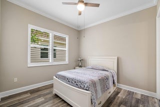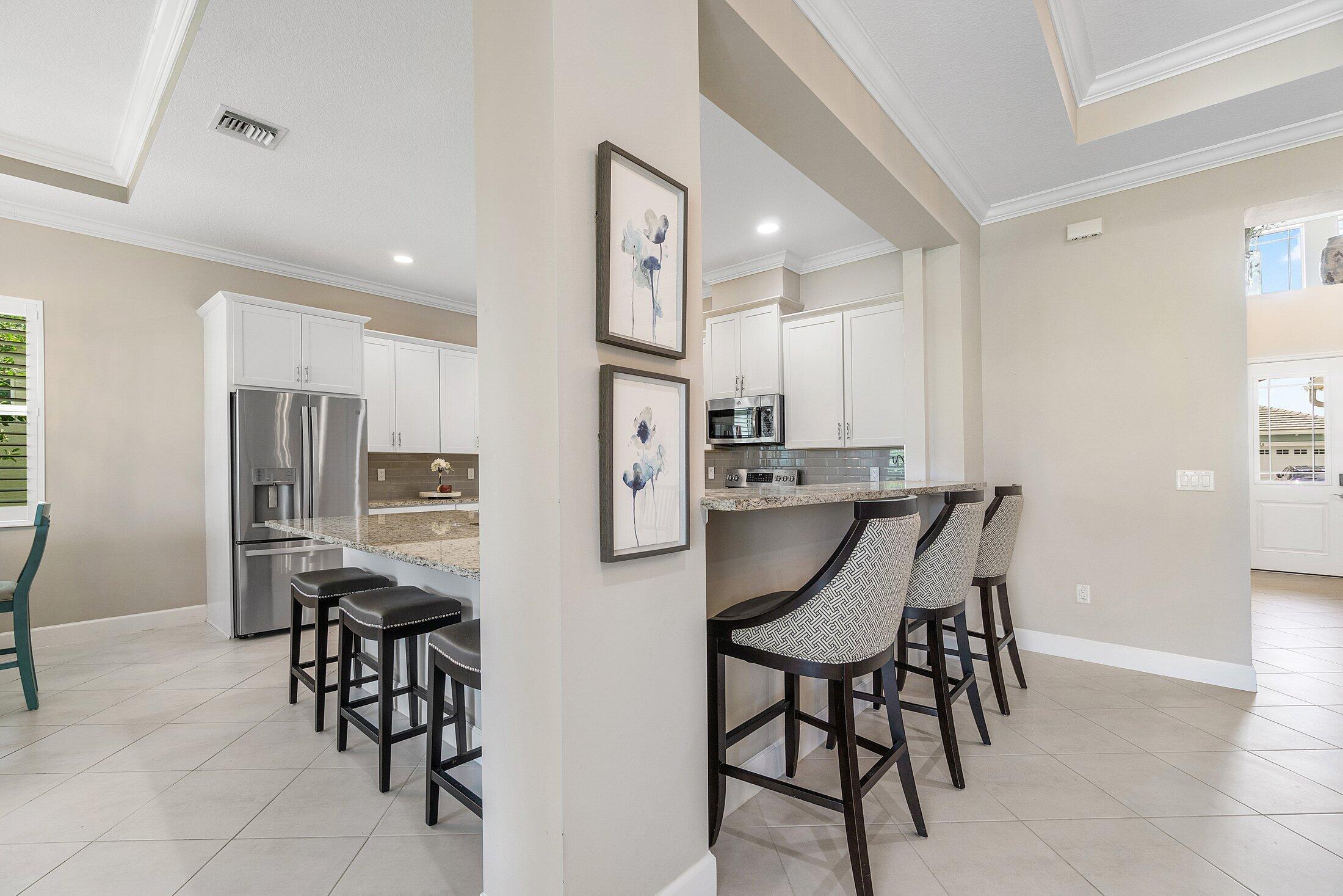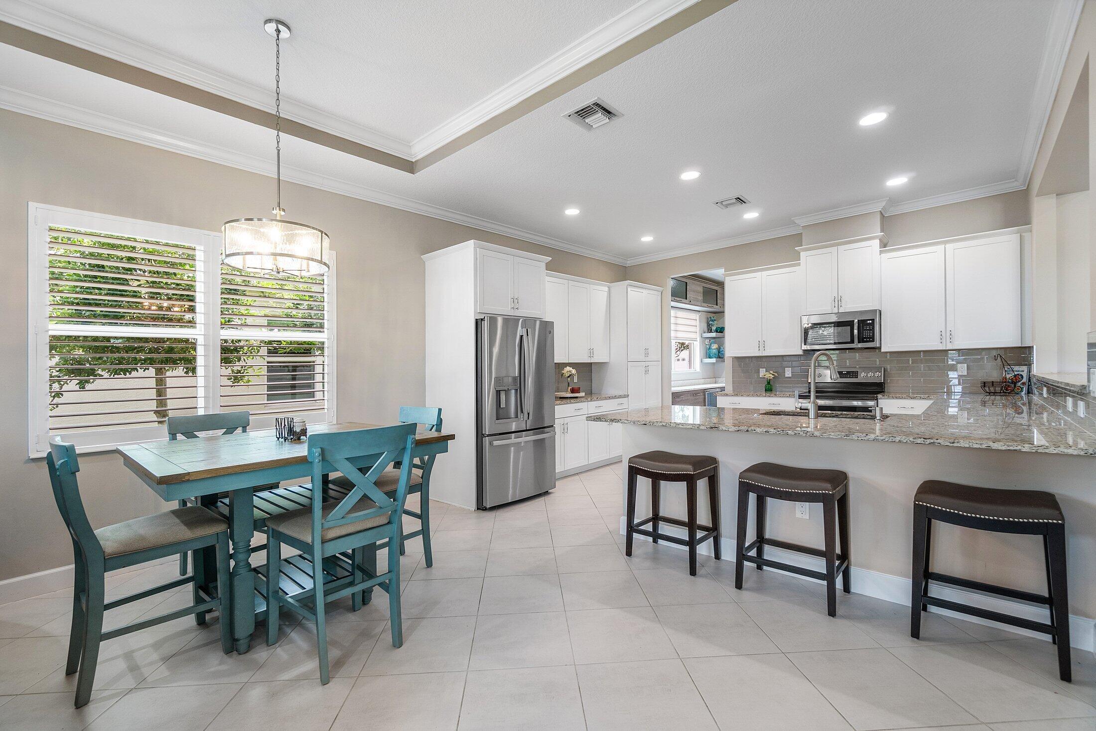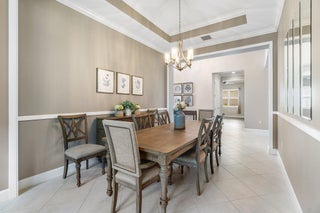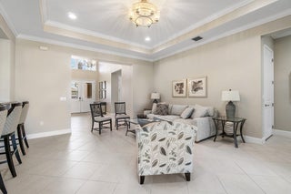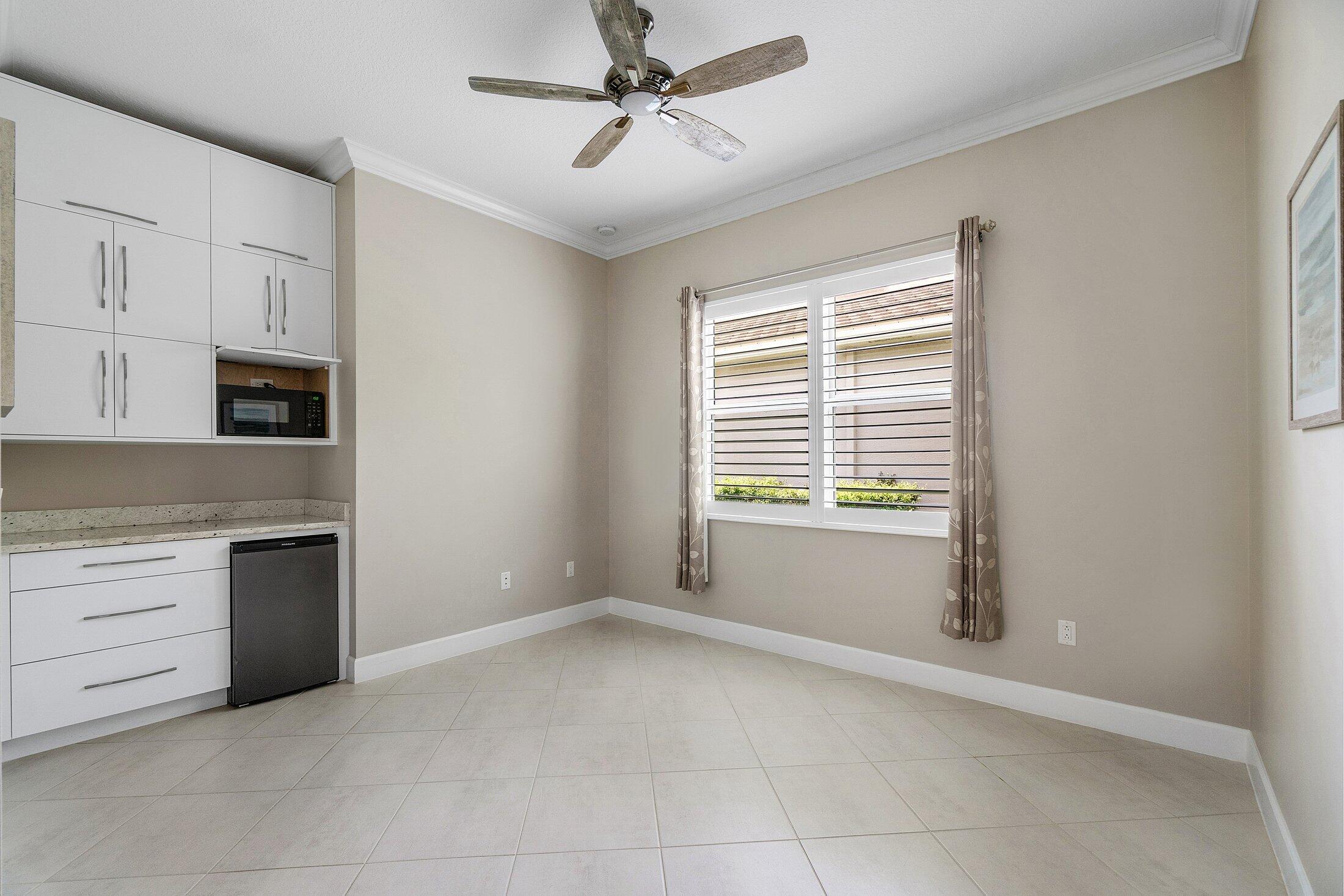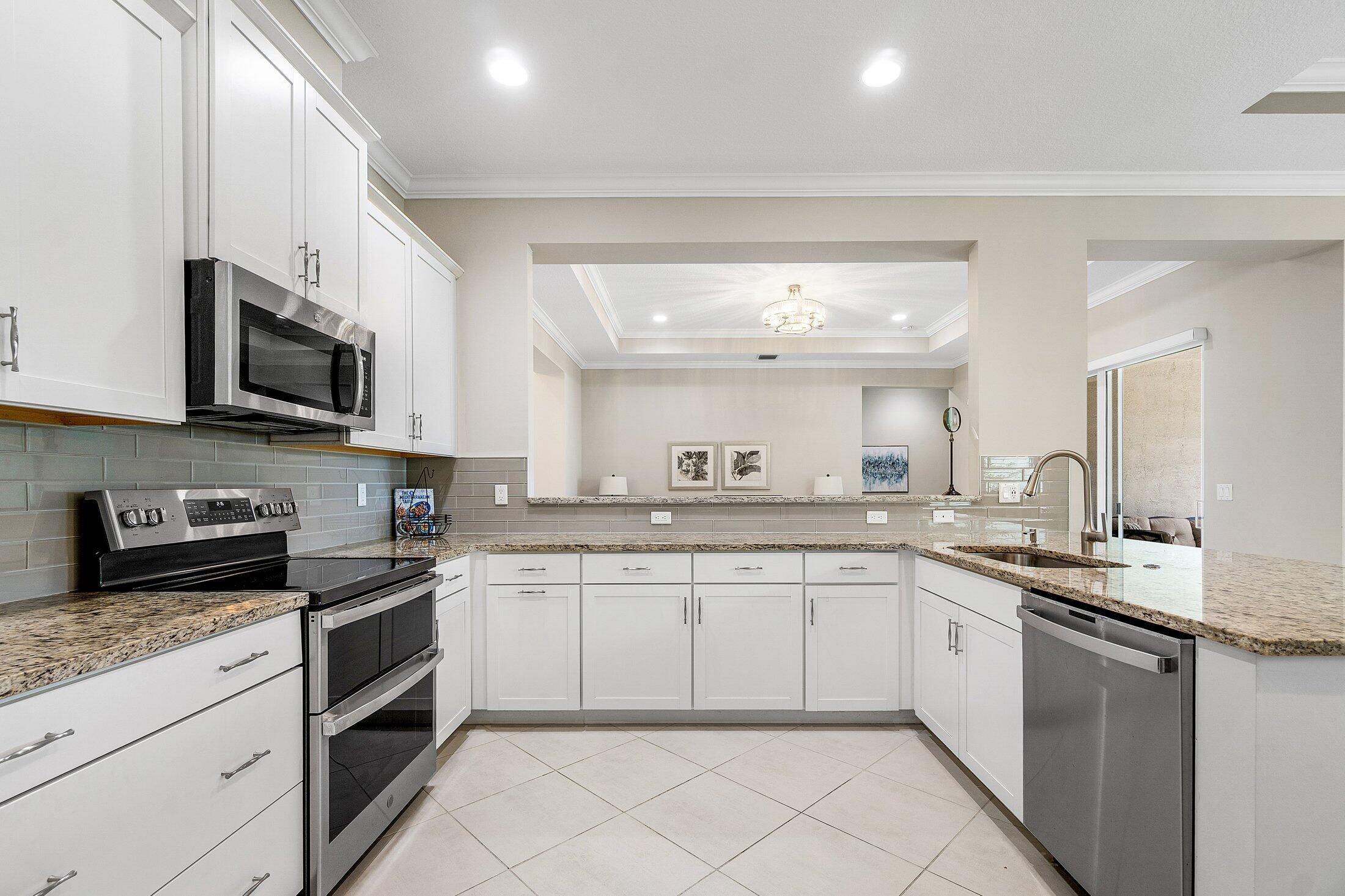 Save time and money with a move-in ready home boasting over $30,000 in valuable upgrades including an oversized driveway, epoxy garage floors, plantation shutters and motorized blinds, custom built-in cabinets and closets, plus a screened travertine porch. Furniture negotiable! Beautifully designed CBS construction featuring 4 bedrooms, 3 bathrooms, 4th bed currently a den that can be converted back to bedroom, and a 3-car garage. An impressive foyer opens to the formal living room and adjacent dining room with a custom built-in buffet, conveniently located next to the chef's kitchen that showcases white cabinetry, stainless steel appliances, and granite countertops. The Kitchen flows into the casual dining area and family room....with stunning views of the lush landscaped yard and lake. The secluded master suite offers serene water vistas, two custom walk-in closets, and a large, well-appointed bathroom. Additional bedrooms are located off a private hallway with a den featuring a custom built-in cabinet with fridge and microwave, previously set up with a barn door for use as an in-law suite. This side of the home also includes a utility room and a dedicated one-car garage. Additional features include impact windows, custom closets throughout, extra-wide driveway, and an open patio perfect for enjoying the lakefront setting. Across the road from The Hammocks is Westlake Adventure Park, offering extensive amenities including a splash pad, lagoon pool, tower slide, lodge pool, concert pavilion, pump park, playground, basketball courts, bocce and lawn games, food truck court, snack shack, and morea true resort-style lifestyle at your doorstep!