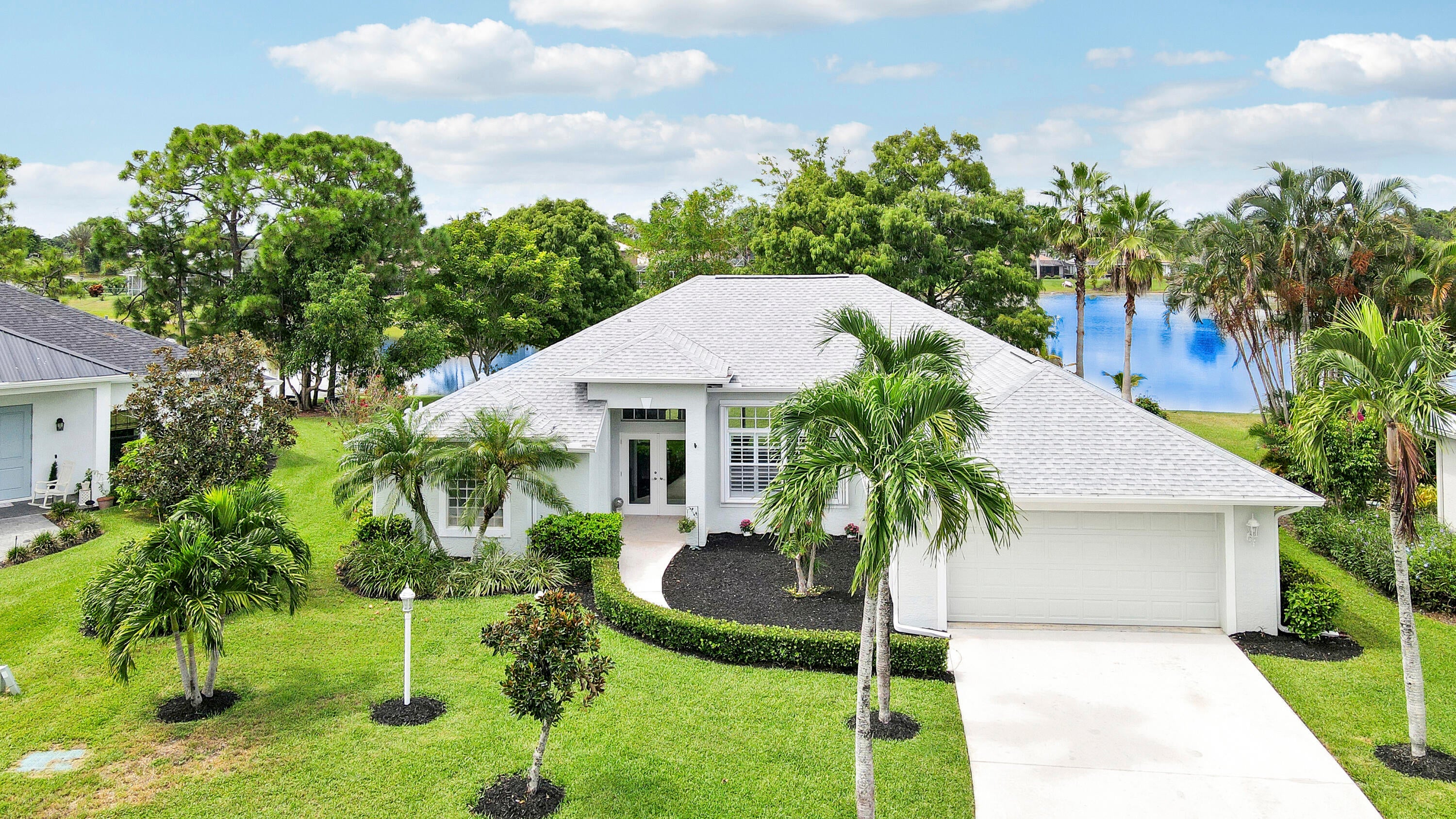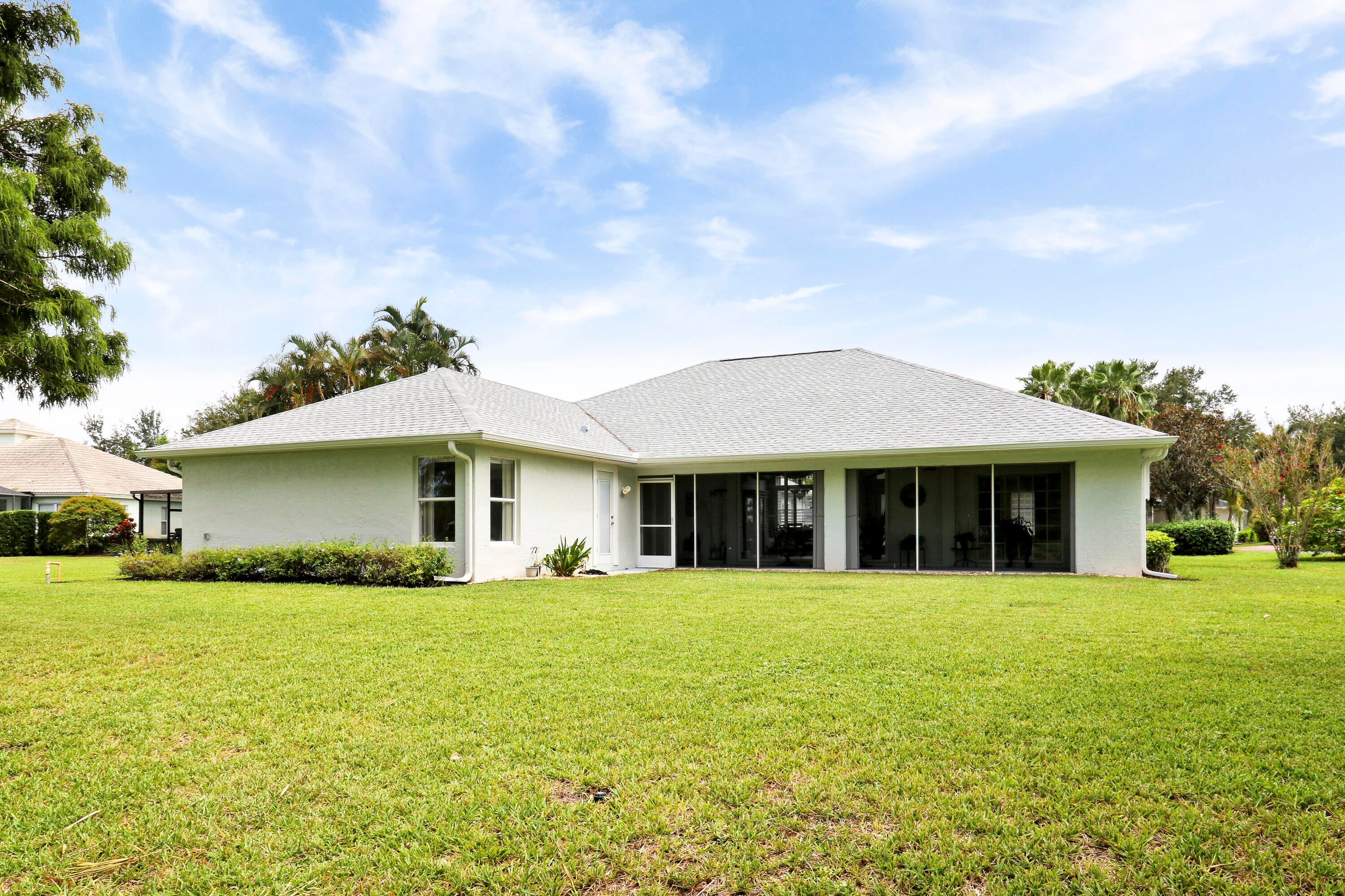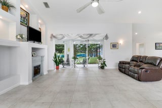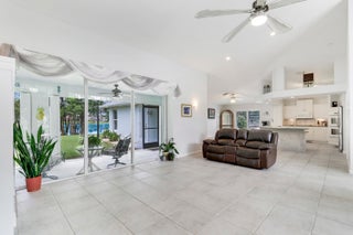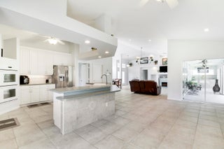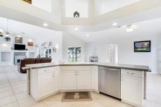 This gorgeous 4bdr/2bath cul-de-sac home with high vaulted ceilings, fantastic layout, and breathtaking 180 views of the private lakefront is nestled in the highly desirable secure and serene gated Crane Point community of Sawgrass Lakes! A spacious kitchen enjoys a double oven, tons of counter space, and center island opening into the family room. Ceramic tile throughout all living areas and new LVP flooring in all bedrooms. The master bdrm has two walk-in closets, glass enclosed shower, soaking tub and two separate cabinet/sink areas and guest bedroom with waterfront views has a large walk-in closet as well. New roof, A/C, refrigerator, water heater, dish washer, and washer and dryer in past 3 years! A spacious rear screened porch comes with a summer kitchen and sink. Save money onwatering you're landscaping as this home has a 4-zone sprinkler system fed by the lake. Don't forget to bring a small boat with electric motor to go fishing or to visit neighbors as the lakes throughout this community are connected. All this with hurricane shutters on front and rear, and newly installed hurricane proof front entry door. Come live the Good Life that is awaiting your arrival in this Sawgrass Lakes community!