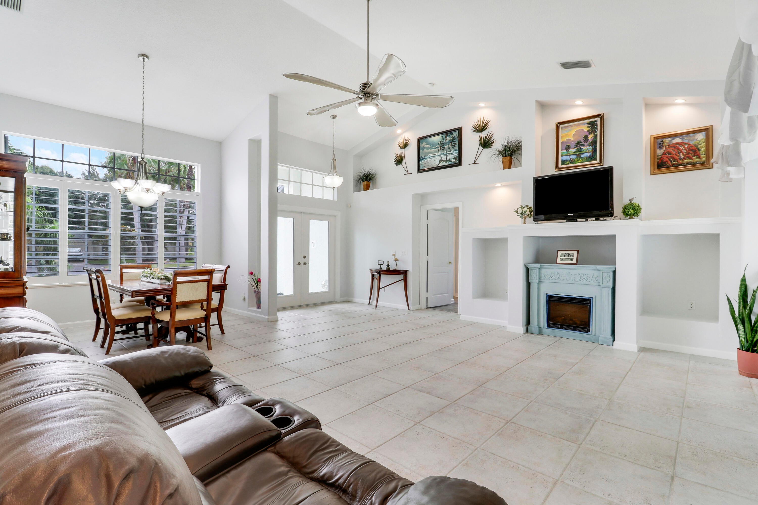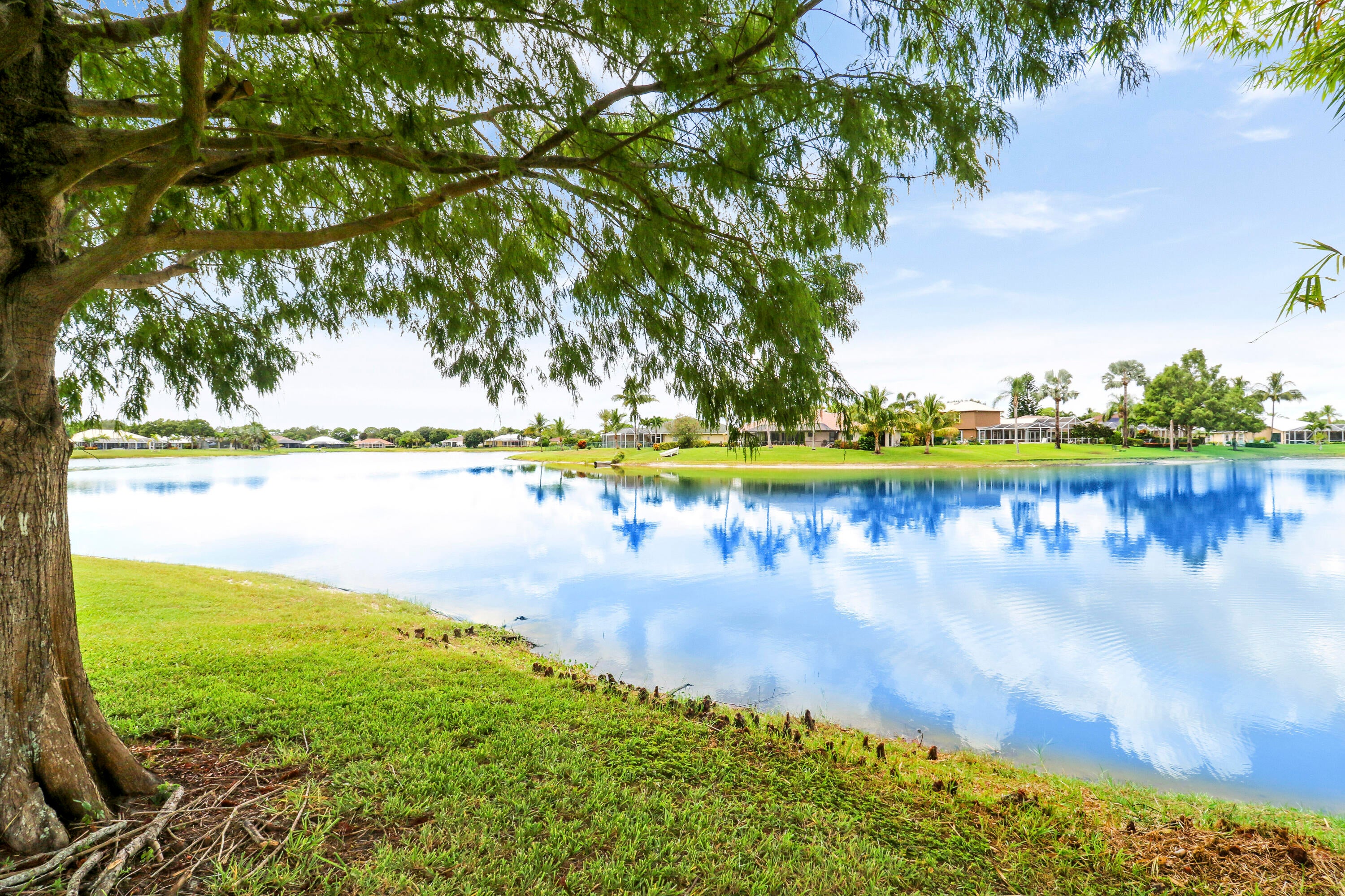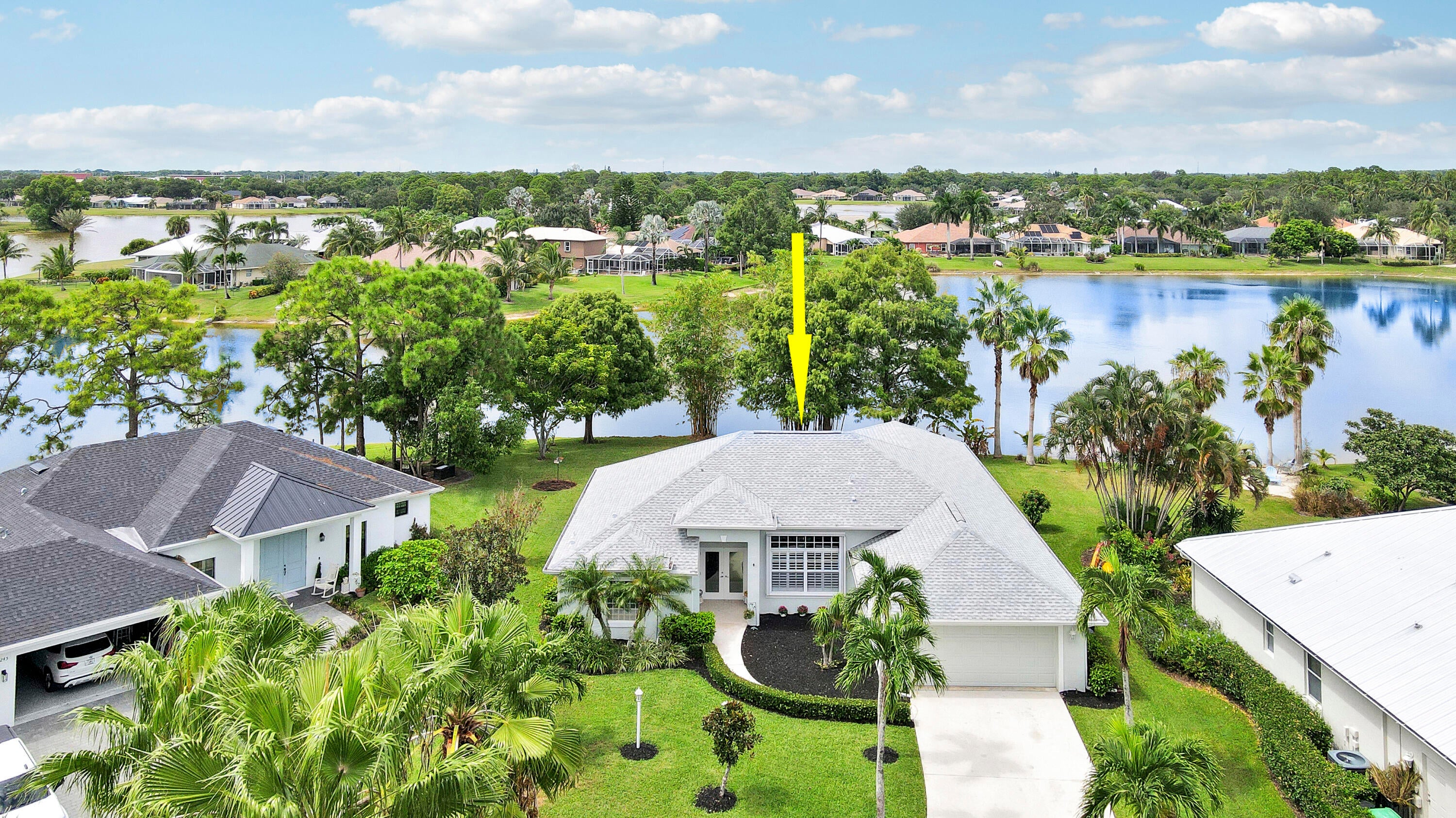 This gorgeous 4bdr/2bath cul-de-sac home with high vaulted ceilings, fantastic layout, and breathtaking 180 views of the private lakefront is nestled in the highly desirable secure and serene gated Crane Point community of Sawgrass Lakes! A spacious kitchen enjoys a double oven, tons of counter space, and center island opening into the family room. Ceramic tile throughout all living areas and new LVP flooring in all bedrooms. The master bdrm has two walk-in closets, glass enclosed shower, soaking tub and two separate cabinet/sink areas and guest bedroom with waterfront views has a large walk-in closet as well. New roof, A/C, refrigerator, water heater, dish washer, and washer and dryer in past 3 years! A spacious rear screened porch comes with a summer kitchen and sink. Save money onwatering you're landscaping as this home has a 4-zone sprinkler system fed by the lake. Don't forget to bring a small boat with electric motor to go fishing or to visit neighbors as the lakes throughout this community are connected. All this with hurricane shutters on front and rear, and newly installed hurricane proof front entry door. Come live the Good Life that is awaiting your arrival in this Sawgrass Lakes community!