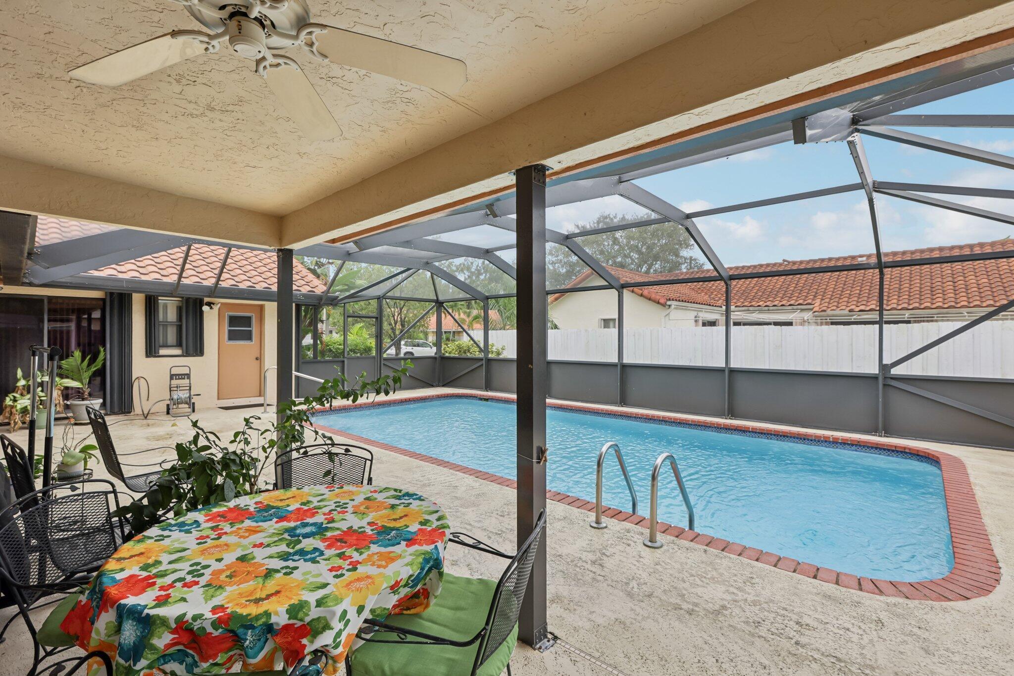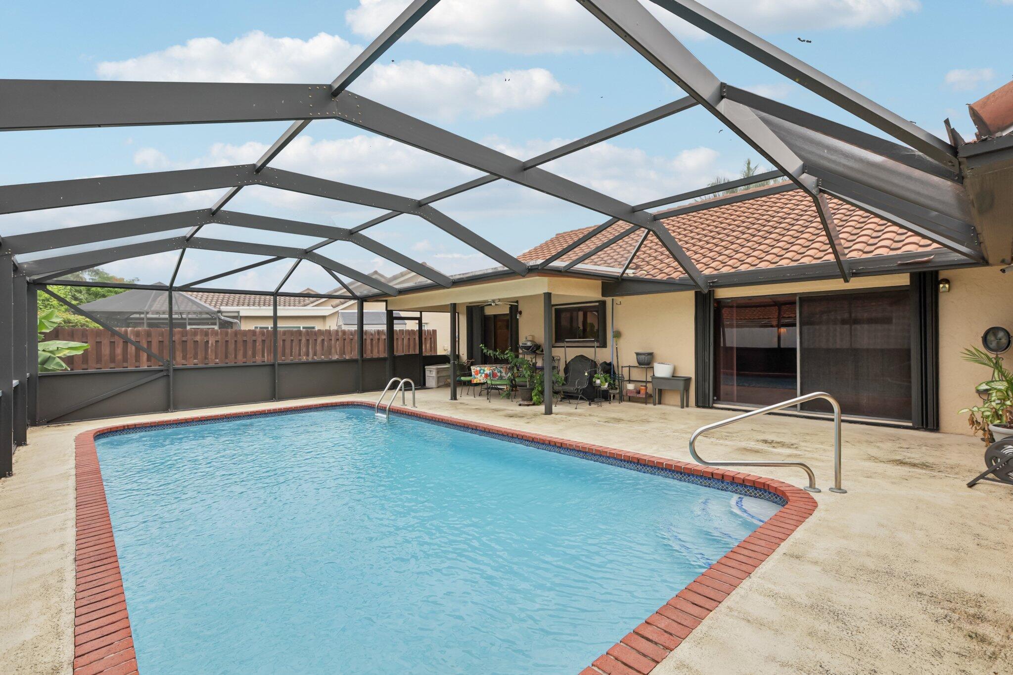 Spacious 3-Bedroom Pool Home on 1/4 AcreThis beautifully maintained 3-bedroom, 2-bath home features oversized bedrooms, double-sink bathrooms, and generous closet space. Recent upgrades include a newer roof (2021), AC (2021), and hot water heater (2021). The sparkling pool has been fully resurfaced and is enclosed by a newer screened cage, perfect for year-round enjoyment.Enjoy the bright, open floor plan, a 2-car garage, and an extended driveway that easily fits 6+ cars. Situated on a quarter-acre lot, this home offers both comfort and space--inside and out.'Great area for schools , religous institutions, close to the beach.HOA includes cable and internet, pickleball couts, rackertball courts and a lovely pool area.Owner says SELL!