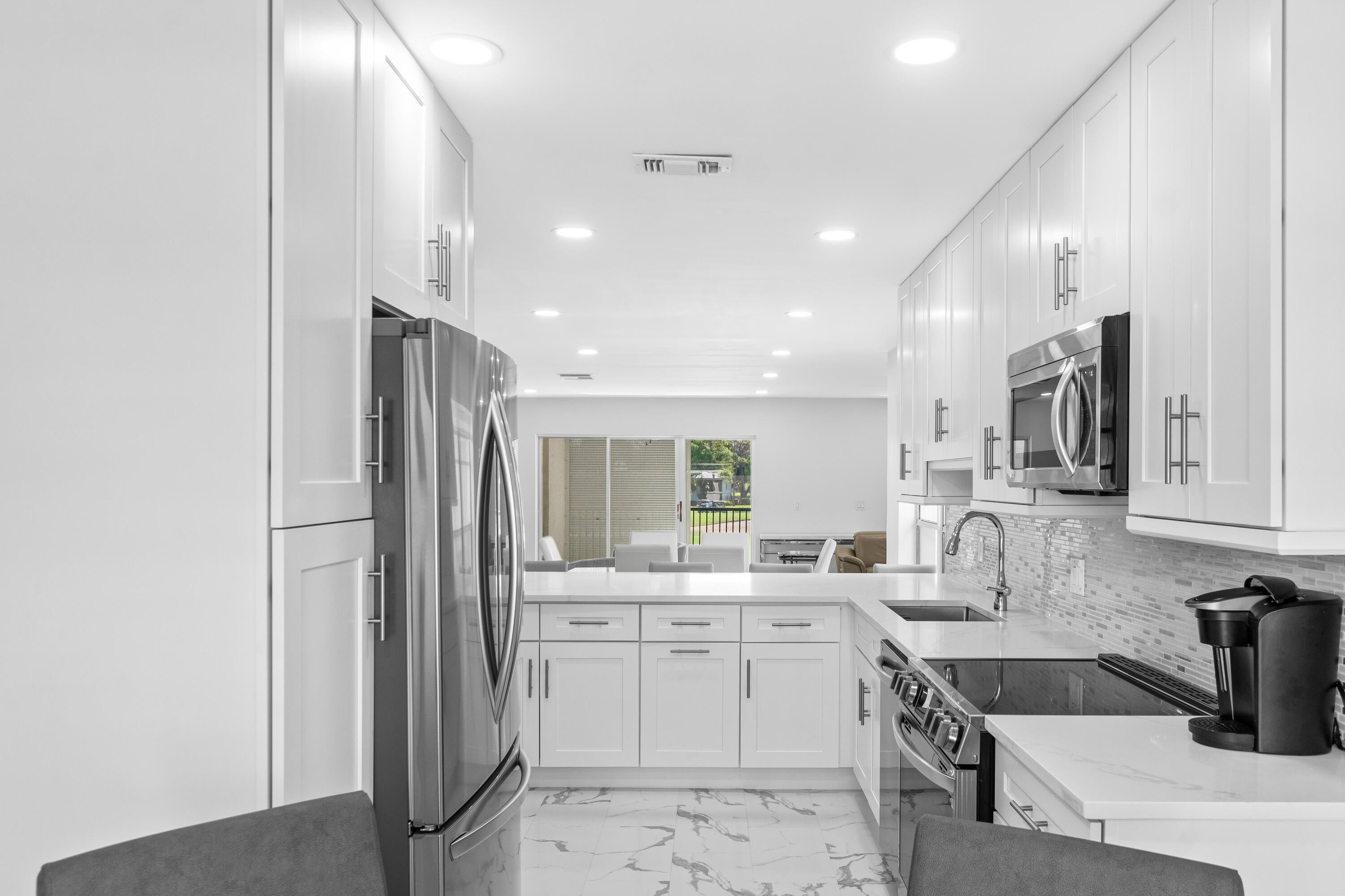 Welcome to effortless luxury with this beautifully upgraded condo offering peaceful golf course views and modern style. Step into a light-filled space with clean lines, sleek porcelain tile, and a crisp white kitchen finished with quartz counters and premium touches. Every inch has been thoughtfully updated from the bathrooms and doors to the A/C and hardware. Step outside to a screened lanai perfect for morning coffee or evening unwinding. Located in Hunters Run, an exclusive membership community packed with top-tier amenities: 3 championship golf courses, tennis, pickleball, multiple dining options, fitness, spa, and more -- all just minutes from the beach and downtown Delray.