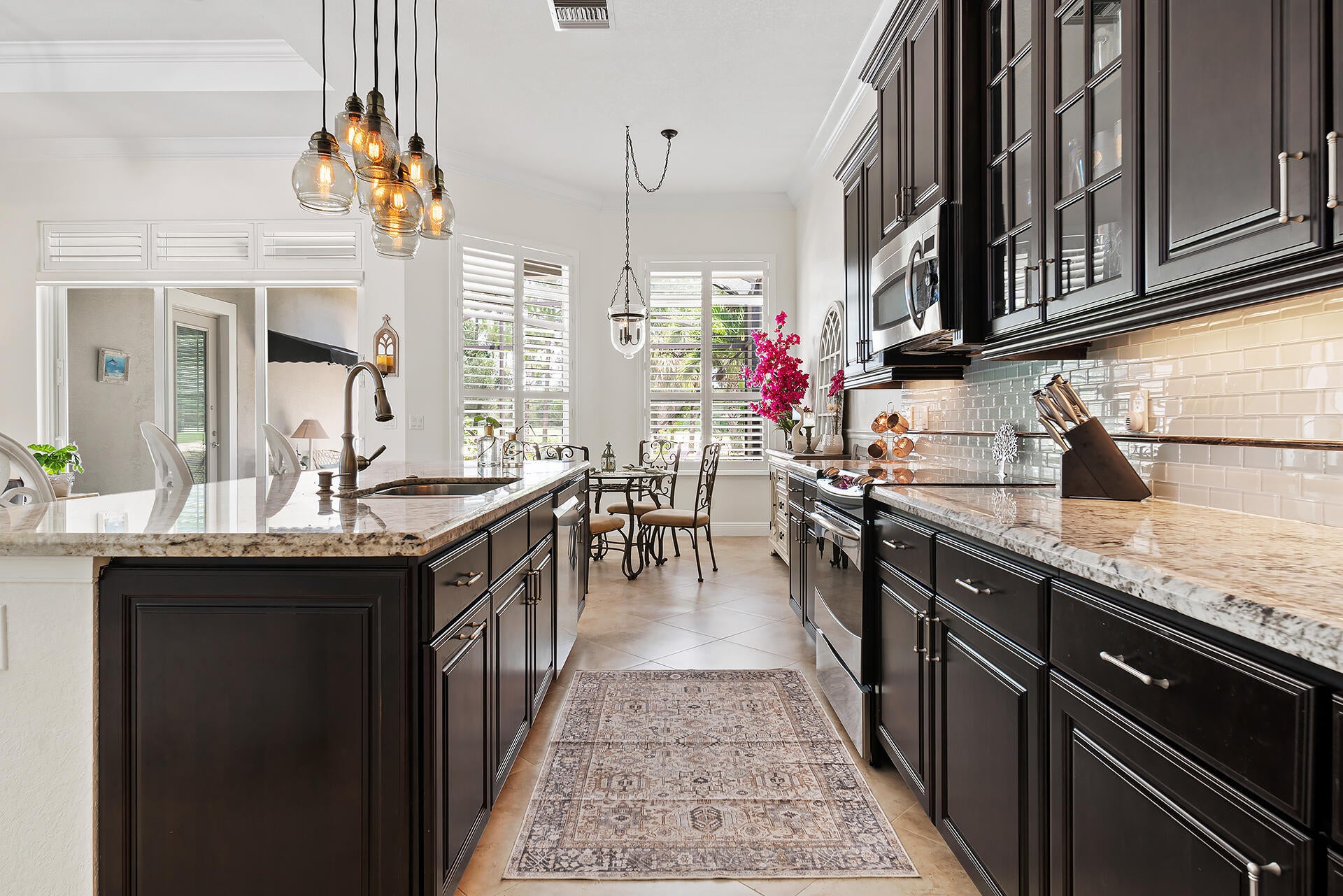 Stunning Golf Course Home - Over 2,000 Sq Ft of Luxury Living! Spacious 3BR/3BA home on a premium lot overlooking the 8th hole of the Wanamaker Golf Course in PGA Verano. Built in 2013 with impact windows/doors, plantation shutters, custom molding, and electric shade in the living room. Gourmet kitchen features premium cabinets and new or newer appliances. Freshly painted interior throughout, new washer/dryer, AC replaced in 2022, water heater in 2023. Master bedroom offers double walk-in closets and a large elegant bathtub. Relax and entertain on your outdoor patio or enjoy access to Verano's wonderful resort-style amenities: clubhouse, pools, fitness center, tennis, pickleball, gyms & more. Close to PGA Golf Club, shopping, dining, and highways. Move-in ready--schedule your showing today