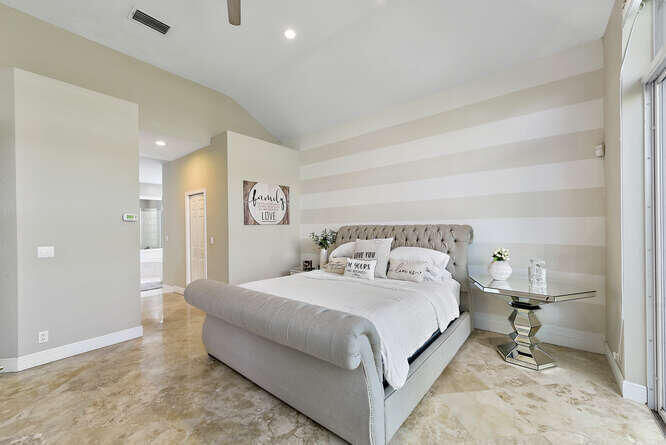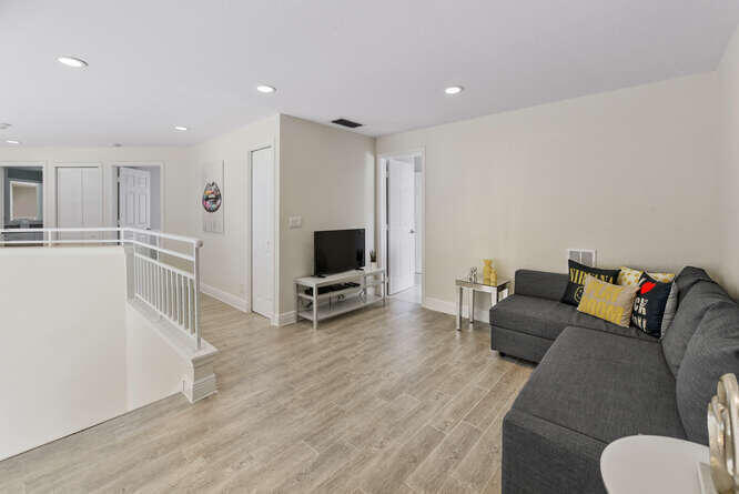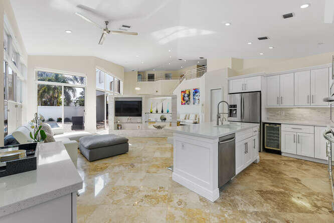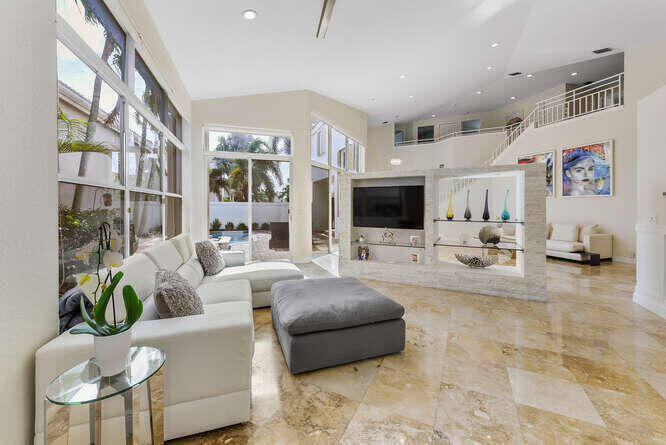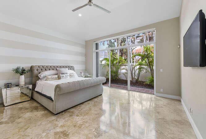 Open & filled with sunlight, this fabulous courtyard of contemporary design offers 3 bedrooms plus a loft & 3 1/2 baths. Features include volume ceilings with extra high-hat lighting; Saturnia marble & luxury vinyl floors; an accent stone wall with a fireplace in the Living Room; an open island kitchen with 42'' white shaker cabinetry, quartz countertops, tile backsplash & stainless steel appliances. The primary suite is on the ground floor featuring 2 custom-configured walk-in closets & a fabulous contemporary bathroom with gray cabinetry & quartz counters. The second floor offers a spacious loft, 2 large secondary bedrooms & 2 baths. The front courtyard is totally private with a pool south-facing for plenty of sun. Offered unfurnished for annual rent.