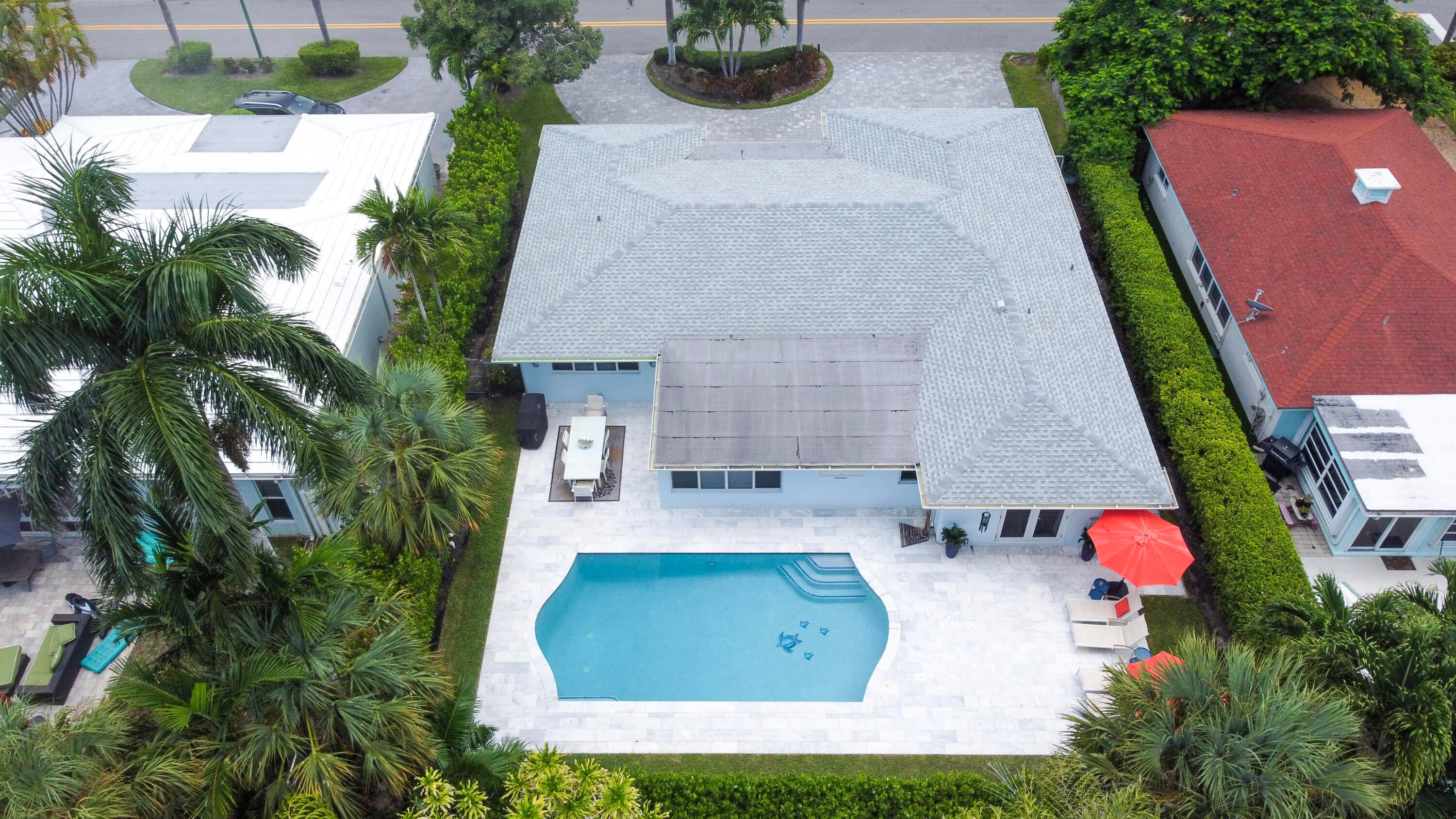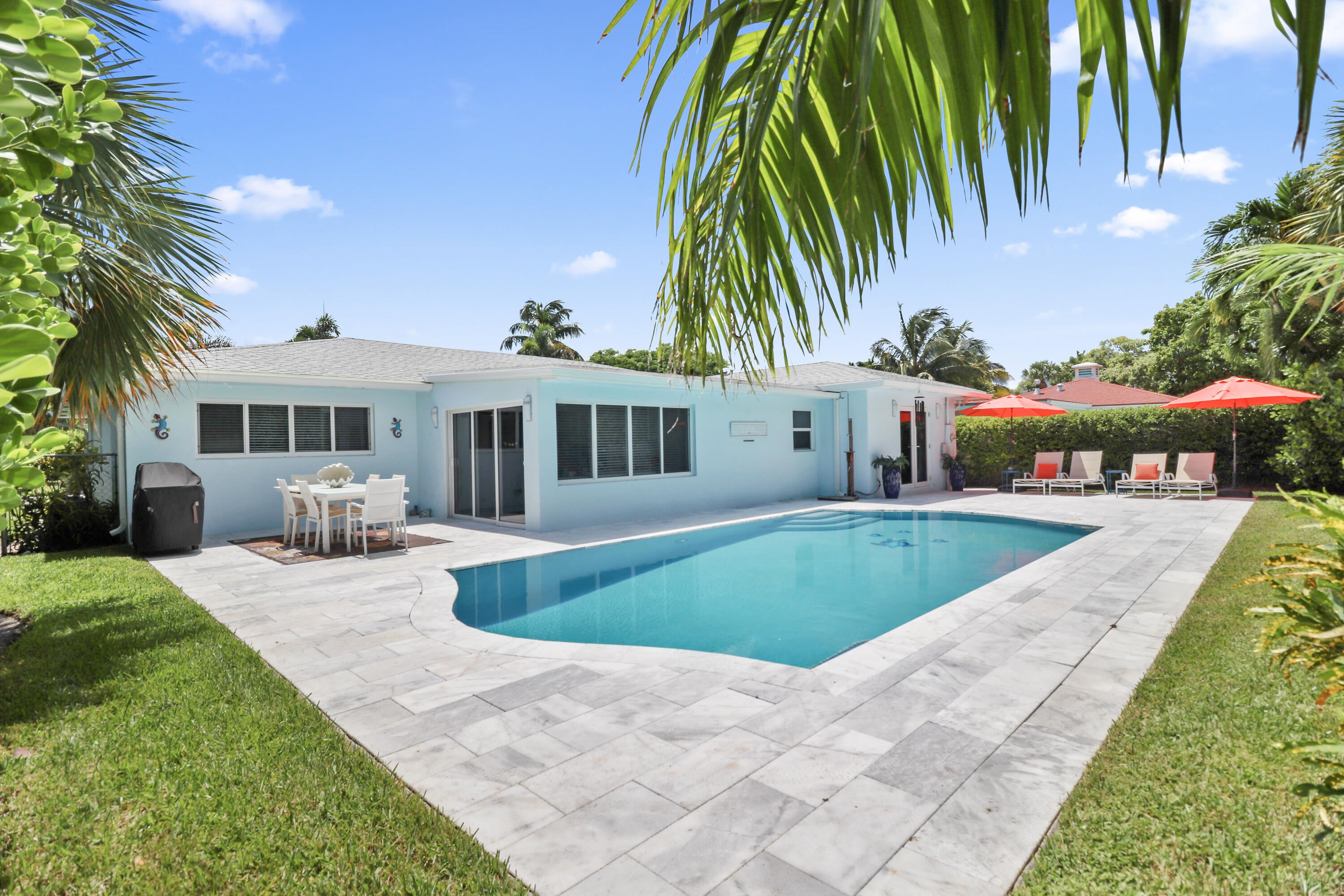 Welcome to your seaside retreat. Beautifully renovated 3BR 2BA 2 car garage pool home in highly sought-after Palm Beach Shores, FL. Renovations were completed in late 2020. Includes new impact windows throughout, new roof, new circular paver driveway, epoxy coated garage floor, new A/C, all new Samsung Smart appliances which include ''steam ''oven and induction cooktop, quartzite kitchen countertops, luxurious Cristallo quartzite kitchen island w/custom lighting and wine cooler, in-ceiling sound system, high hat lighting throughout all main living areas, ''liquid nickel'' ceiling fans, guest bathroom w/double sinks, master bedroom suite with French doors leading to private fenced backyard, outdoor shower.outdoor shower, new landscaping, landscape lighting and irrigation system, resurfaced pool w/custom decorative tiles, new pool equipment which includes new gas pool heater, internet automation, multi-colored LED lighting and new spacious pool deck. Located in "The Best Little Town", charming historic Palm Beach Shores known for its pristine beach with parking and warm island breezes. Just minutes away from the Sailfish Marina, great shopping, and restaurants...The town is a haven for water enthusiasts; boating, kayaking, parasailing, snorkeling, and sunset cruises are possibilities from Sailfish Marina or local ramps. Peanut Island, a lush nearby park is perfect for hiking, snorkeling, and fishing. Phil Foster Park and Ocean Reef Park offer excellent picnic-like settings, snorkeling/scuba diving spots beneath the Blue Heron Bridge, and calm lagoon swimming. Nearby John MacArthur State Park and all Singer Island has to offer. Just steps to Sailfish Marina, upscale shops, restaurants, hotels, and a short drive to Palm Beaches ultra- luxury lifestyle. Close proximity to world-class golf and country clubs, cities with loads of amenities, and PBI international airport for quick travel.