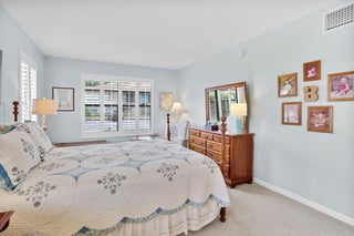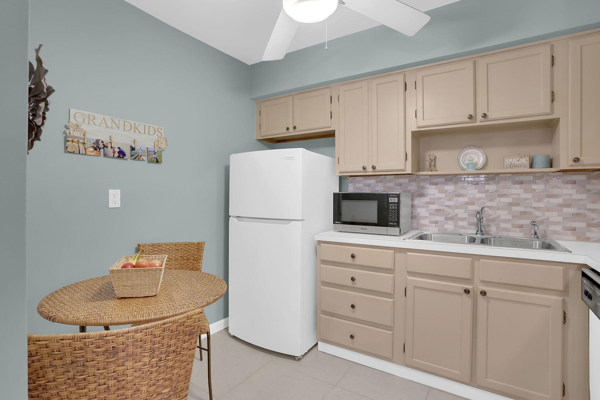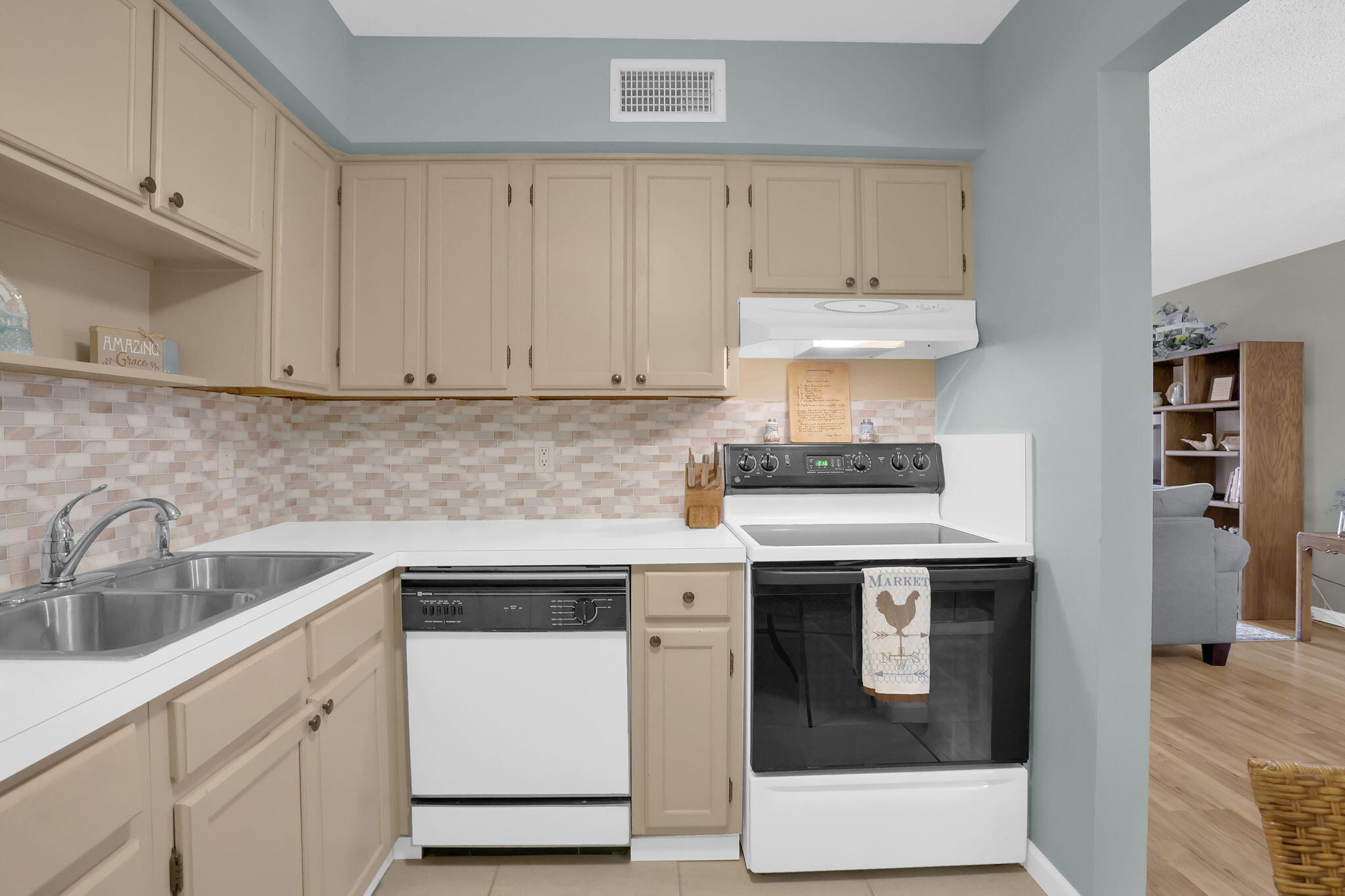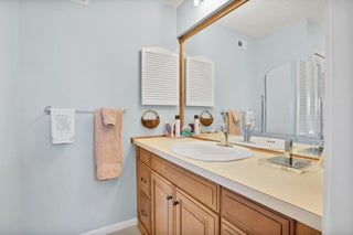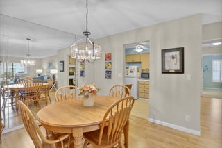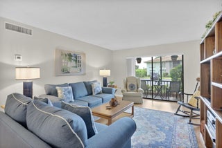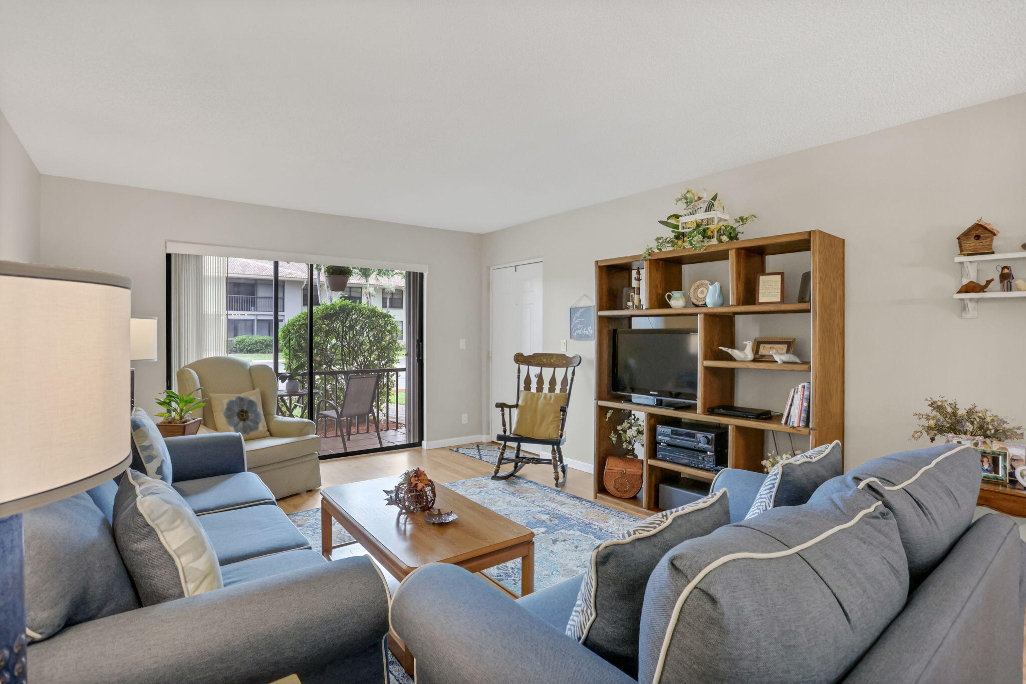 Nestled in the tranquil, tree-filled neighborhood of Bent Tree Gardens, discover the perfect blend of comfort and style in this beautifully maintained 2 bedroom, 2 bath condo. As you step inside this first-floor unit, you're welcomed by an open concept living and dining area bathed in natural light, complemented by wood flooring that adds warmth and elegance. The kitchen features an updated backsplash and warm cabinetry with room for a bistro table and chairs to enjoy your morning paper. The spacious master bedroom offers a serene retreat and features elegant plantation shutters that invite natural light while ensuring privacy.This space includes an en-suite bathroom, a generous walk-in closet and an additional secondary closet with custom built-ins to maximize storage and organization. The second bedroom and additional full bath provide flexibility for guests or a home office. Step outside and enjoy the screened-in porch that adds both convenience and comfort to your living space, perfect for morning coffee or evening relaxation. Convenience is key with in-unit full size washer and dryer and access to community amenities, including a large pool, clubhouse, and fitness center. This condo is move-in ready and perfect for those seeking a blend of luxury, comfort, and convenience. One of the prettiest communities to drive through, don't miss the opportunity to own this exceptional home in Bent Tree Gardens!