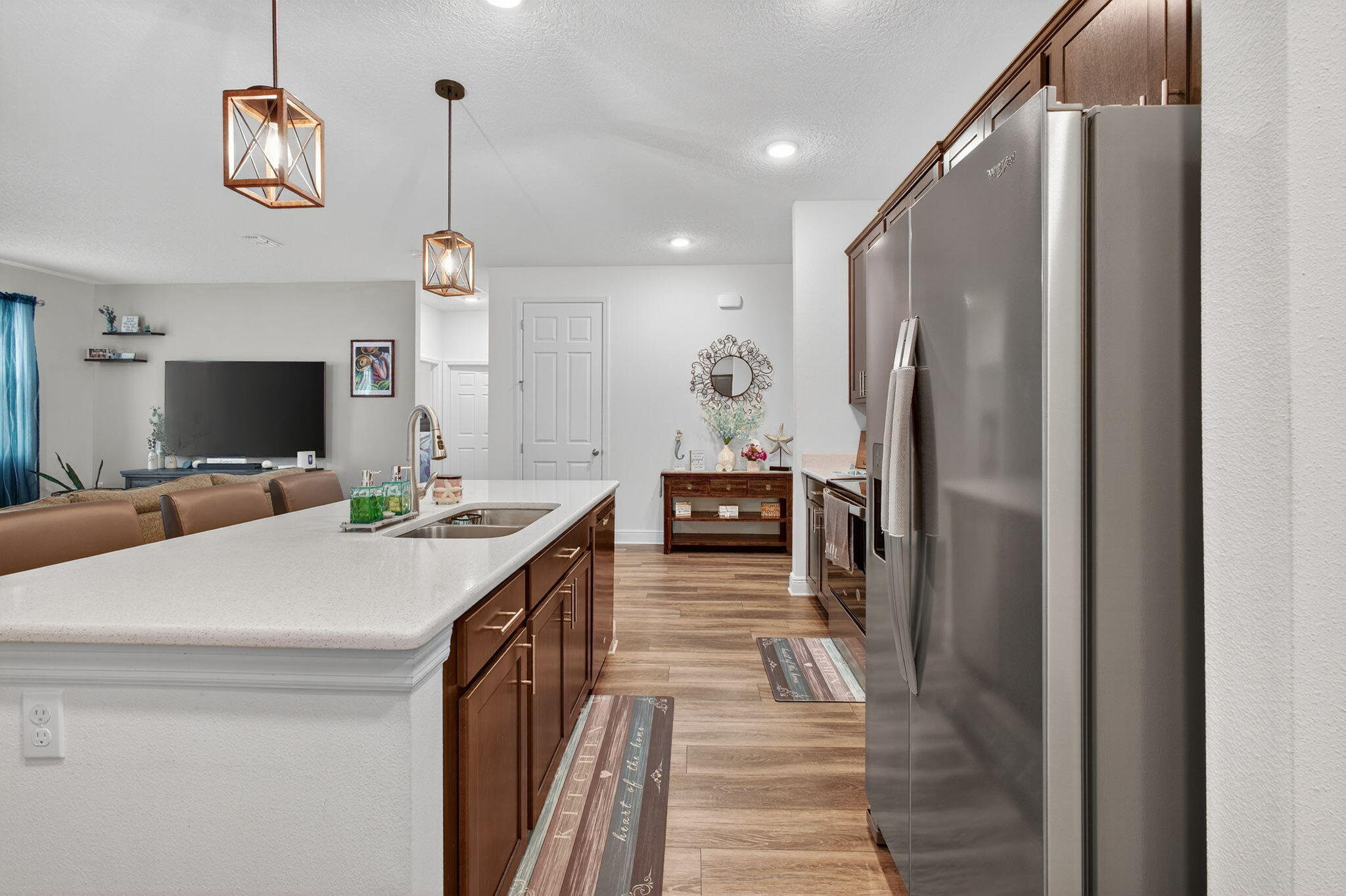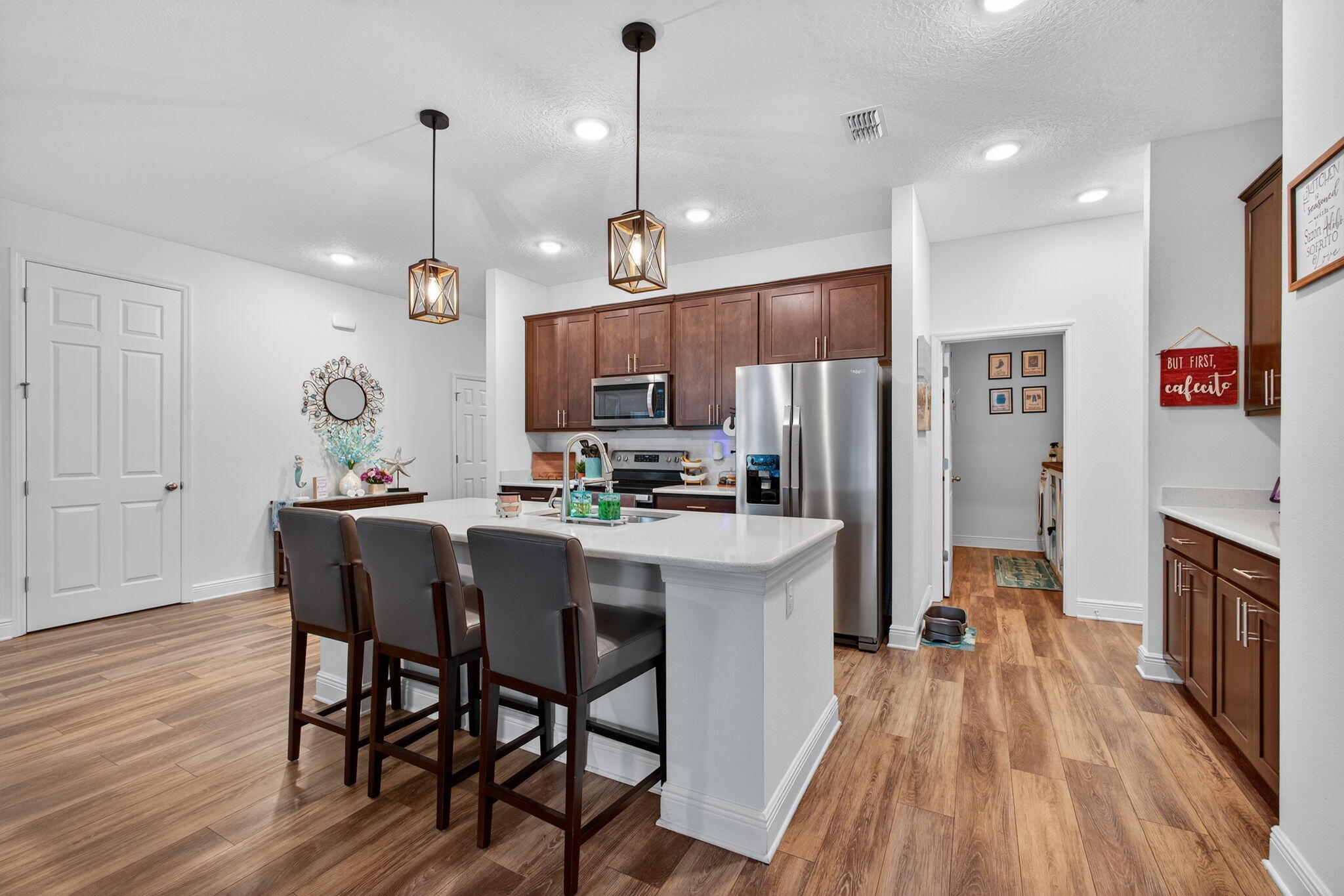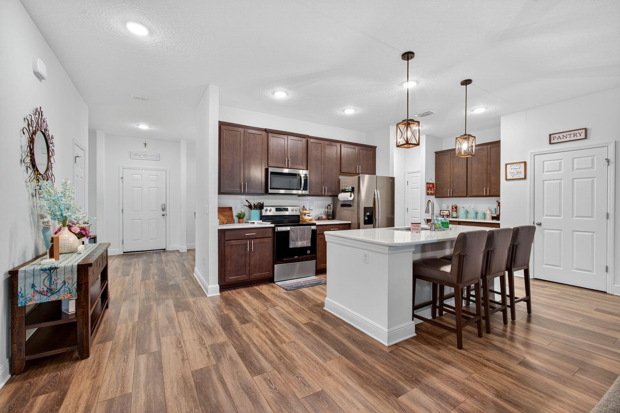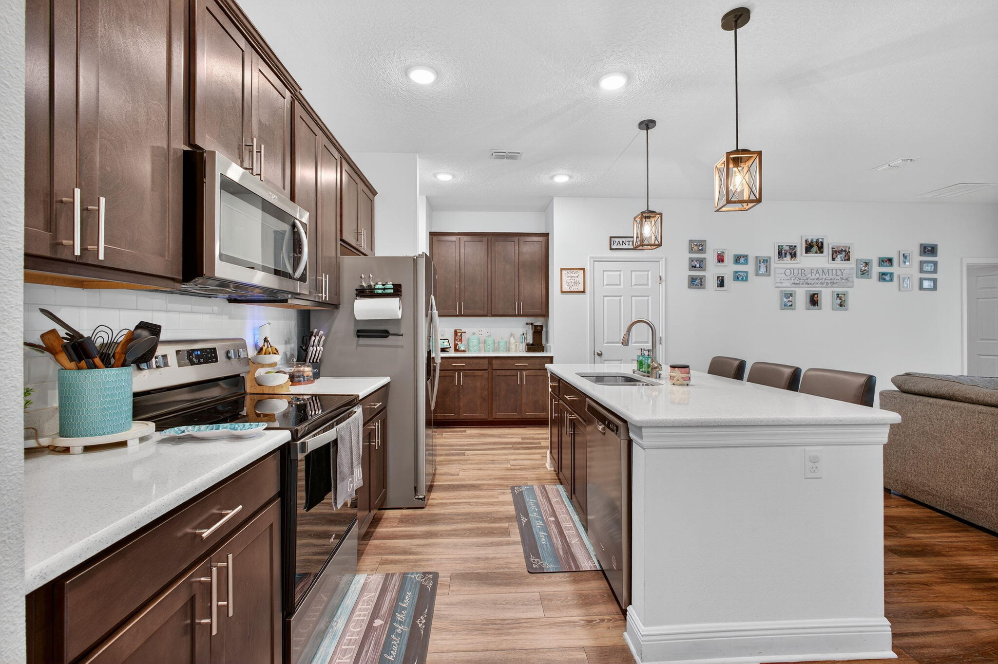 Step into this better-than-new 2021 Holiday Builders home packed with upgrades! The kitchen shines with quartz countertops, subway tile backsplash, and smart pull-out cabinetry. Luxury vinyl plank flooring flows seamlessly throughout--no carpet in sight! Outside, unwind on your screened-in patio overlooking an oversized, vinyl-fenced corner lot--perfect for peaceful evenings or weekend gatherings. Move-in ready and loaded with style, this home is one you won't want to miss!