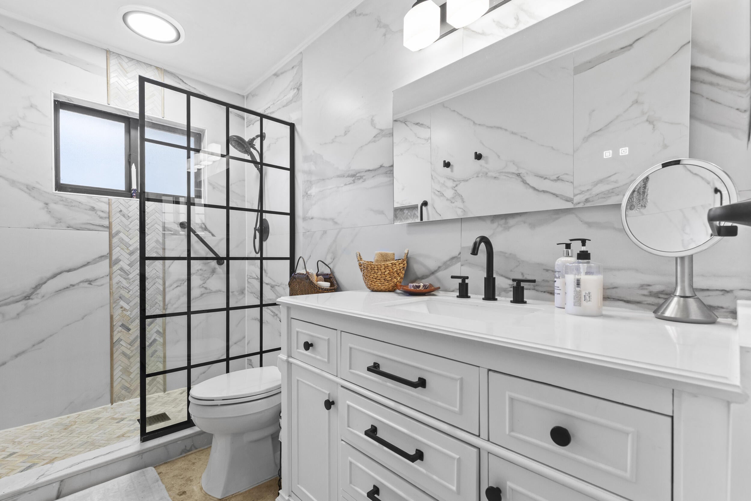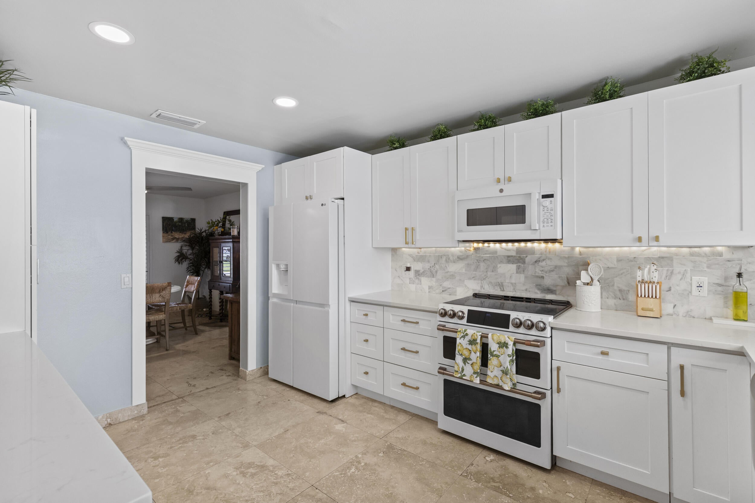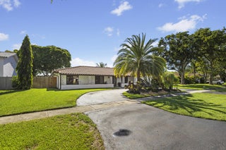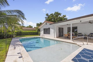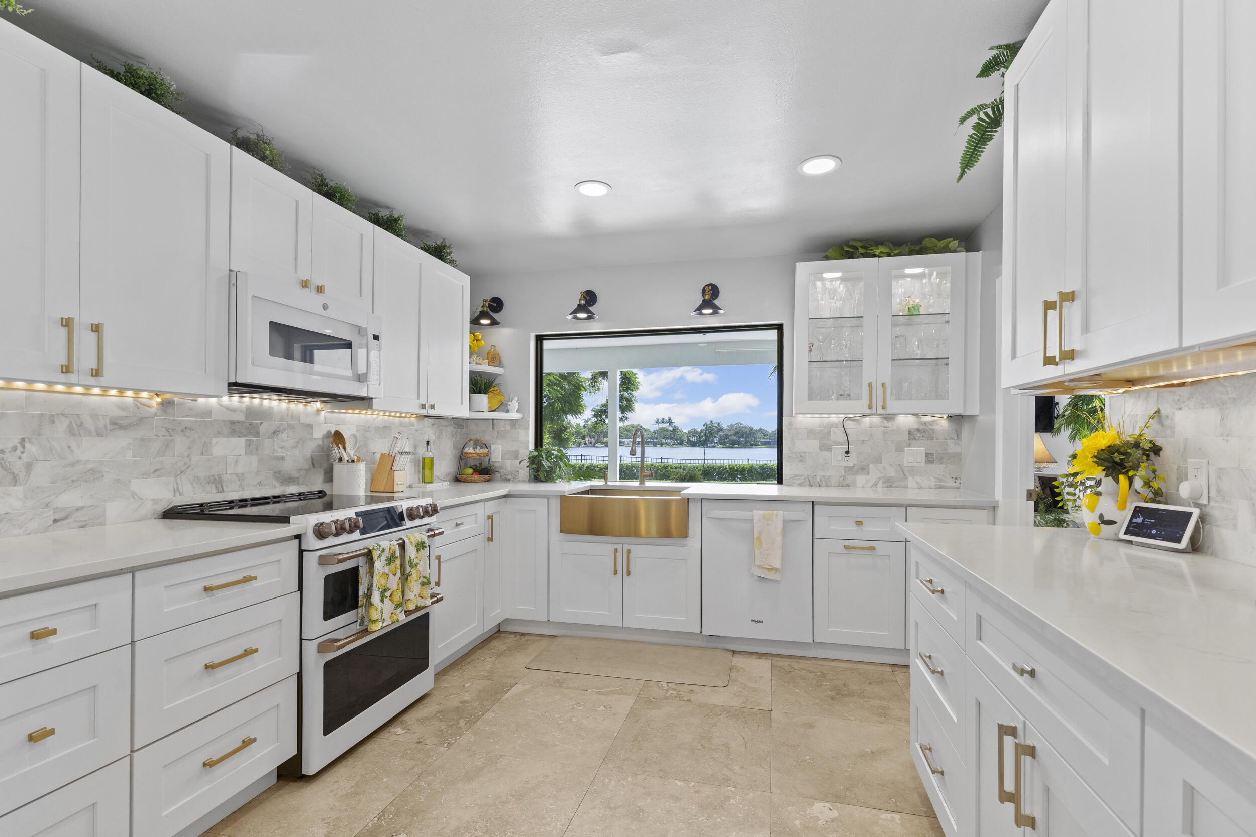 Welcome to Royal Palm living--with a serious upgrade. This home isn't just remodeled, it's been reimagined. From the moment you step in, 24'' honed marble travertine floors pull you through an open, bright space framed by plantation shutters on every window.The kitchen? It's built for someone who actually uses it. Quartz counters, upgraded cabinets, more counter and storage space than you'll know what to do with, plus a built-in bar that begs for cocktails. A double oven range, under-cabinet lighting, and lake-and-pool views from the sink seal the deal.The primary suite hits like a private getaway--spa-inspired bath, oversized custom closet, the works. On the other side of the house, a private fifth bedroom with its own full bath doubles as an in-law suite or guest hideout.Even the second bath got the luxe treatment with marble-look porcelain tile. Step outside and you've got the resort life dialed in: travertine pool deck, electrically heated pool with a sun shelf and underwater lights to set the mood, long lake views, and an outdoor shower with its own on-demand hot water heater (no cold rinse here). Impact windows and doors keep everything secure. Behind the scenes, the details are covered: new pool pump, generator that can power part of the home during power outages, fully fenced backyard, hurricane-grade storage, built-in garage cabinets and workbench, and fresh insulation throughout. Special note, primary bathroom and third bathroom are both wheelchair accessible. Oh, and location? Walk to schools, grab a coffee, hit the shopsit's all right here in one of Royal Palm's favorite neighborhoods.