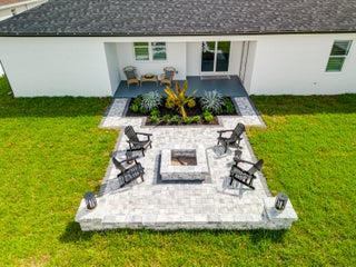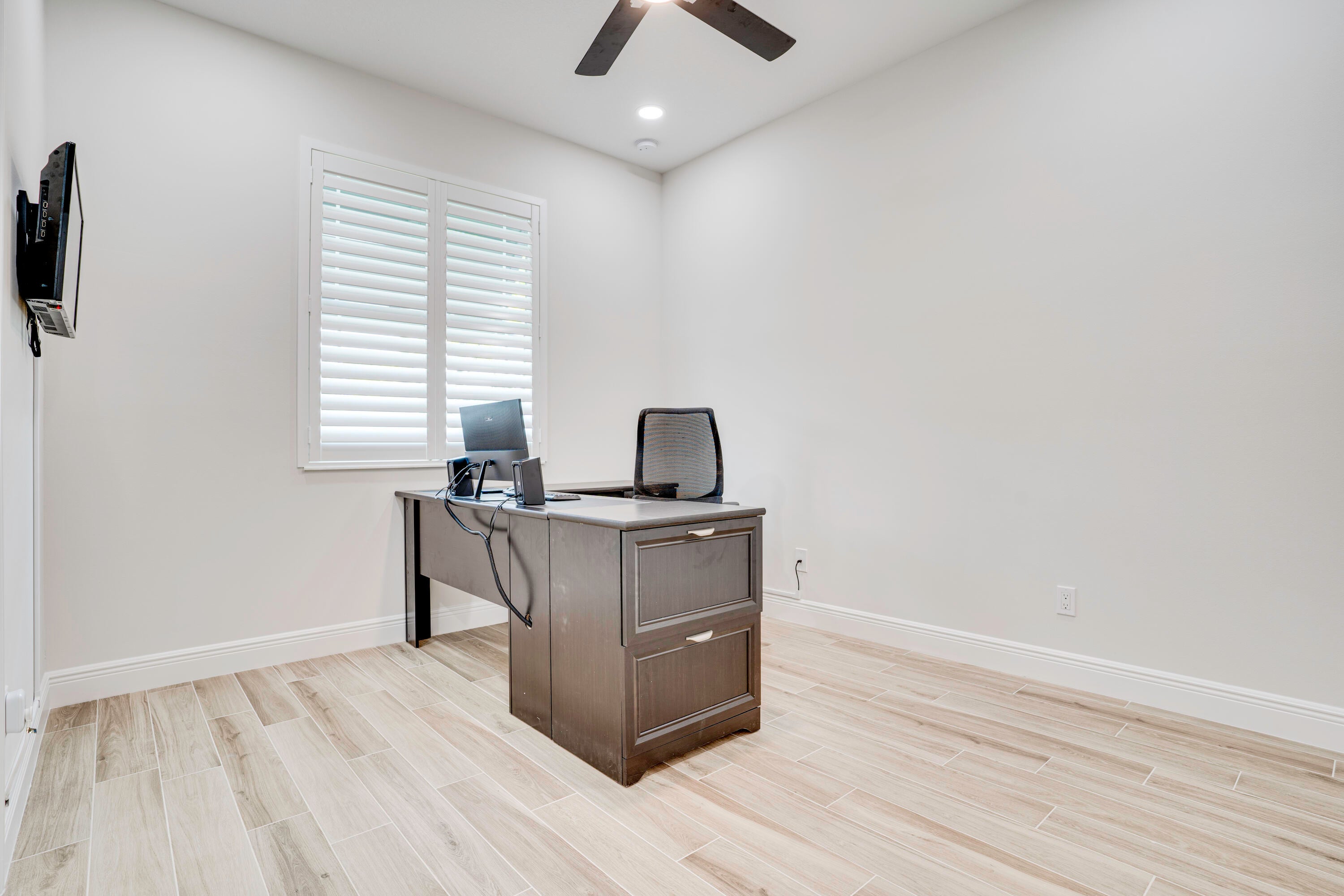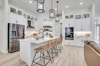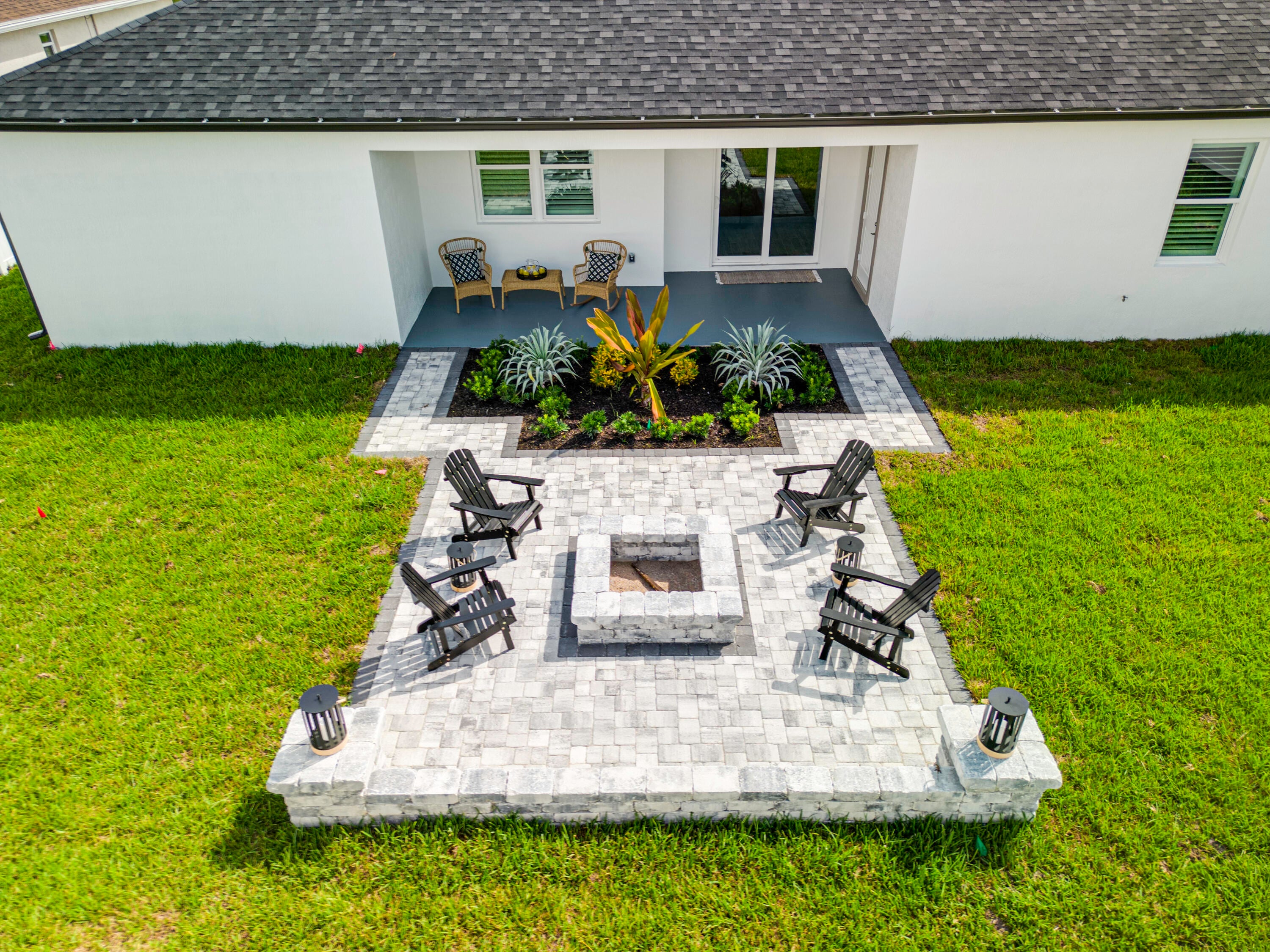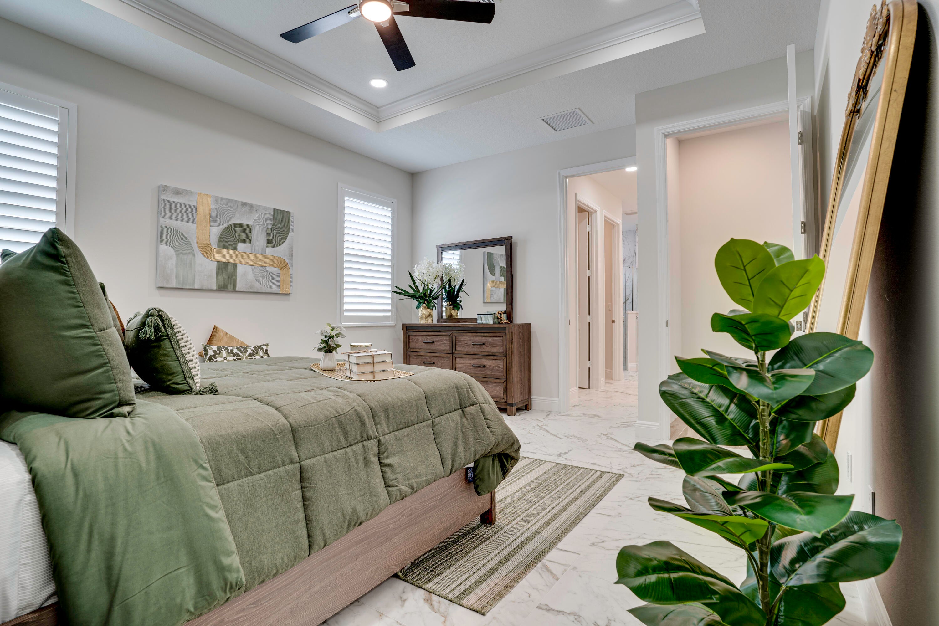 This Builder Model is sold fully furnished with designer-selected furniture & decor, plus $100K+ in luxury upgrades; move in and live the dream from day one! Featuring 4BR/3BA + den, 11'4'' ceilings with tall doors, and a show-stopping wood-stained octagon coffer. The chef's kitchen wows with Cambria quartz, black stainless appliances, wall oven + hood, reverse osmosis, and a spacious walk-in pantry. Elegant details include wood plank tile, impact windows with plantation shutters, barn doors, shiplap fireplace with mantle, dry bar, cabana bath, and epoxy-finished garage. Outdoors, enjoy a fire pit, covered patio, lush fenced 1/4 acre lot, and a circular driveway for curb appeal that stuns. A rare, one-of-a-kind opportunity!