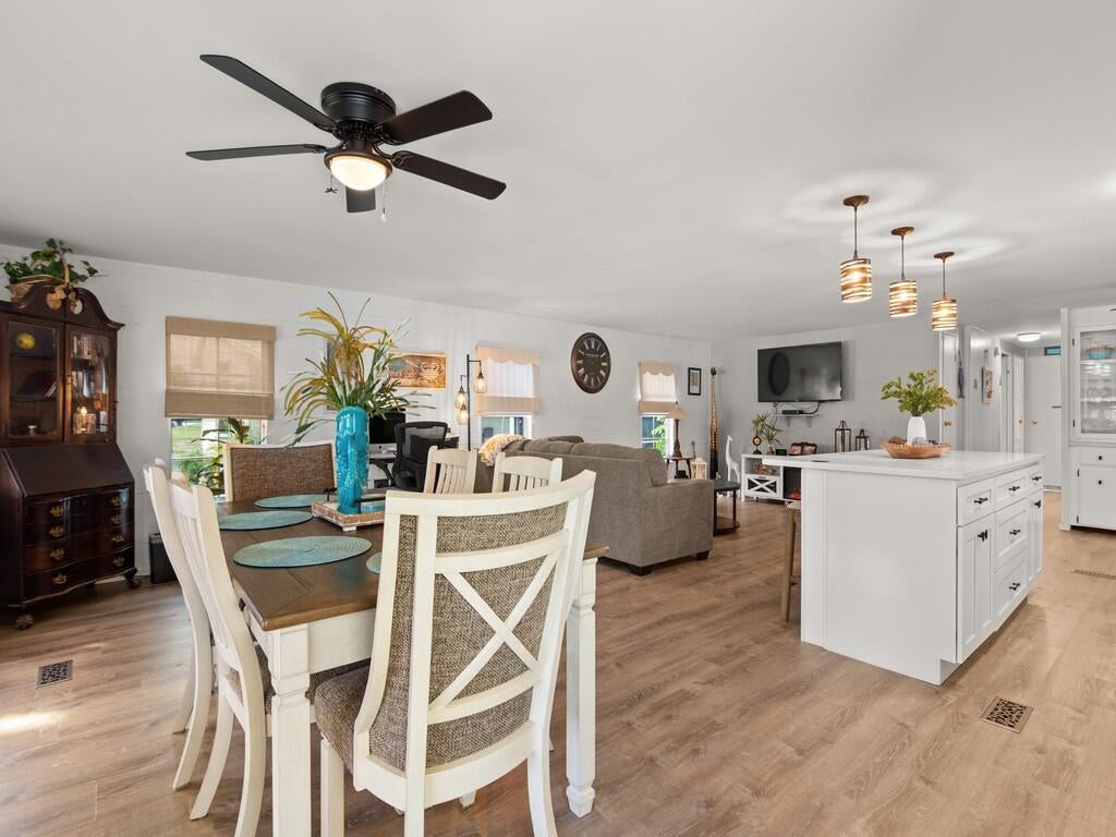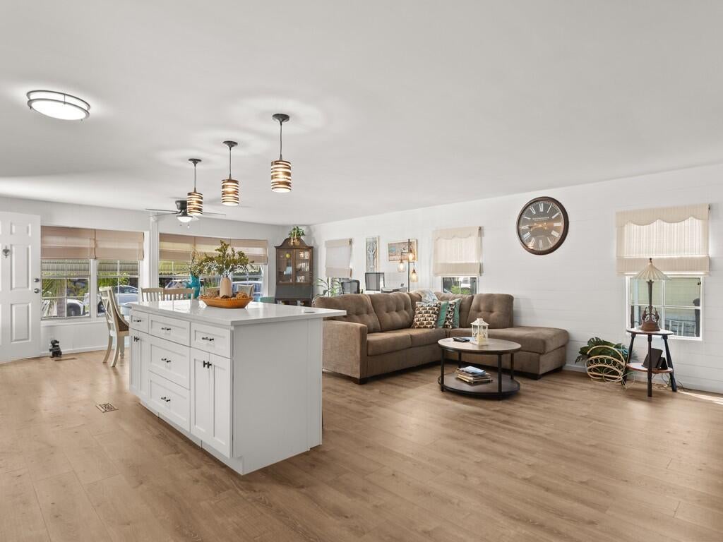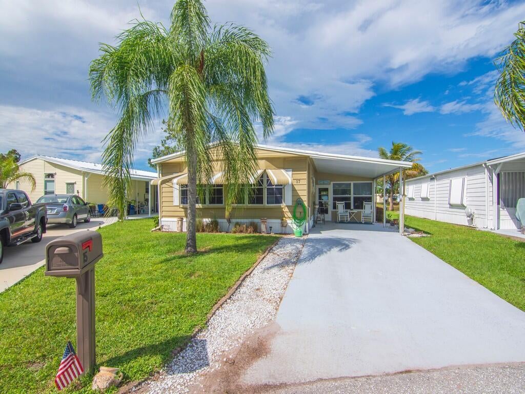 Welcome to 17 El Morrow, a stunning manufactured home that redefines Florida living with style, comfort, and undeniable charm. Nestled in the sought-after 55+ community of Spanish Lakes Golf Village, this residence delivers the ''WOW'' factor from the moment you arrive with the open-concept living and dining areas perfect for entertaining and a gourmet kitchen featuring modern appliances, ample cabinetry, and sleek countertops. Home has a brand new metal roof and new tiedowns. The large Florida Room is ideal for morning coffee or evening cocktails. Updated bathrooms have elegant finishes and walk-in showers. The large primary bedroom overlooks the lake with plenty of closet space and natural light. The private outdoor space is a great place to relax and watch the wildlife.Lot rent will be $1008 which includes lawn care, trash removal, recycling and all the amenities of the clubhouse. Free golf, swimming, exercise room and so much more! Whether you're downsizing, retiring, or simply craving a vibrant community with resort-style amenities, this home is your golden ticket. Stylish, move-in ready, and priced to impress. 17 El Morrow is more than a home, it's a lifestyle. Don't wait. Homes with this level of appeal don't last long!